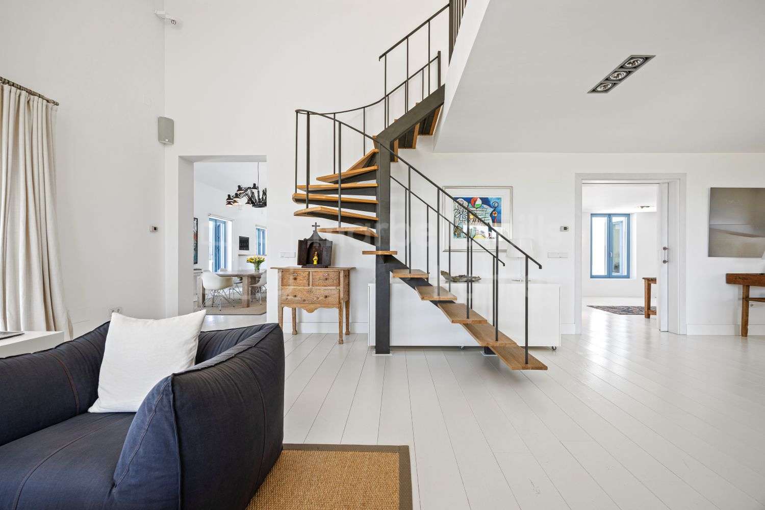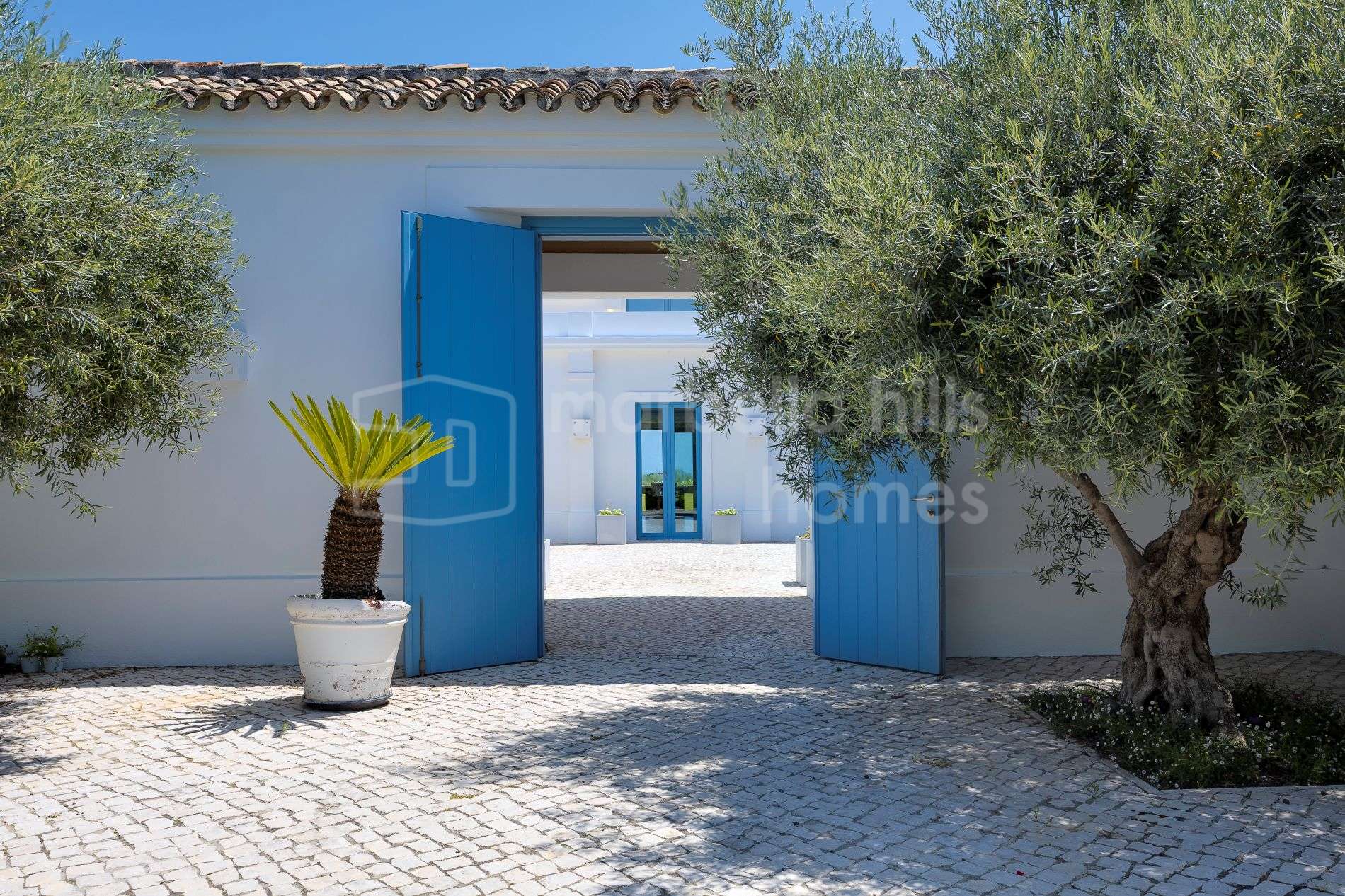 Das Anwesen bietet eine schöne Kombination von Stilen, modern und nordisch im Inneren-und andalusischen Stil außerhalb. Herrliche Zufahrt zum Grundstück, Eingang mit Terrasse.