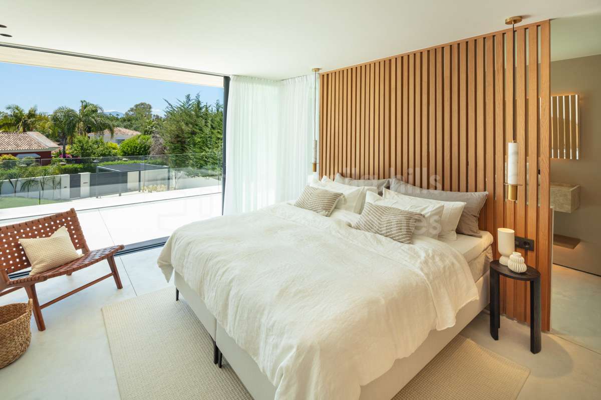 Moderne Luxusvilla in Nueva Andalucía mit 5 Schlafzimmern, Blick auf La Concha, Infinity-Pool, Dachterrasse mit Jacuzzi, eleganten Innenräumen und großzügigen Terrassen....