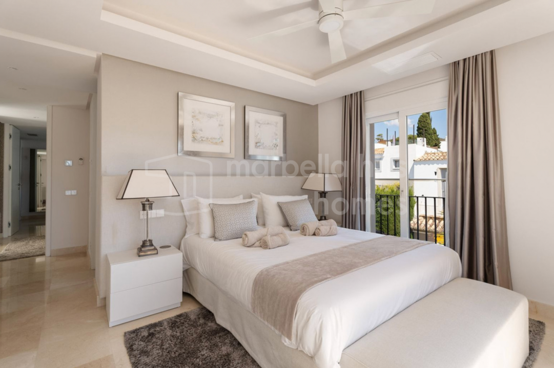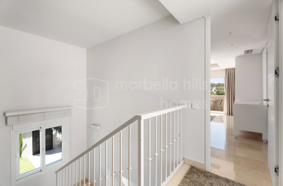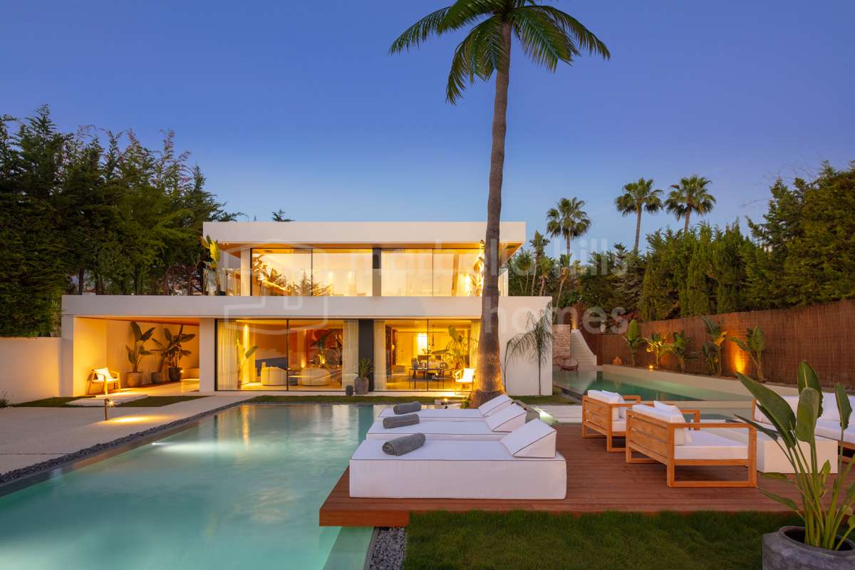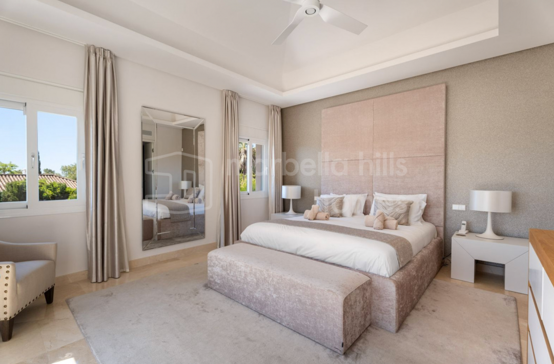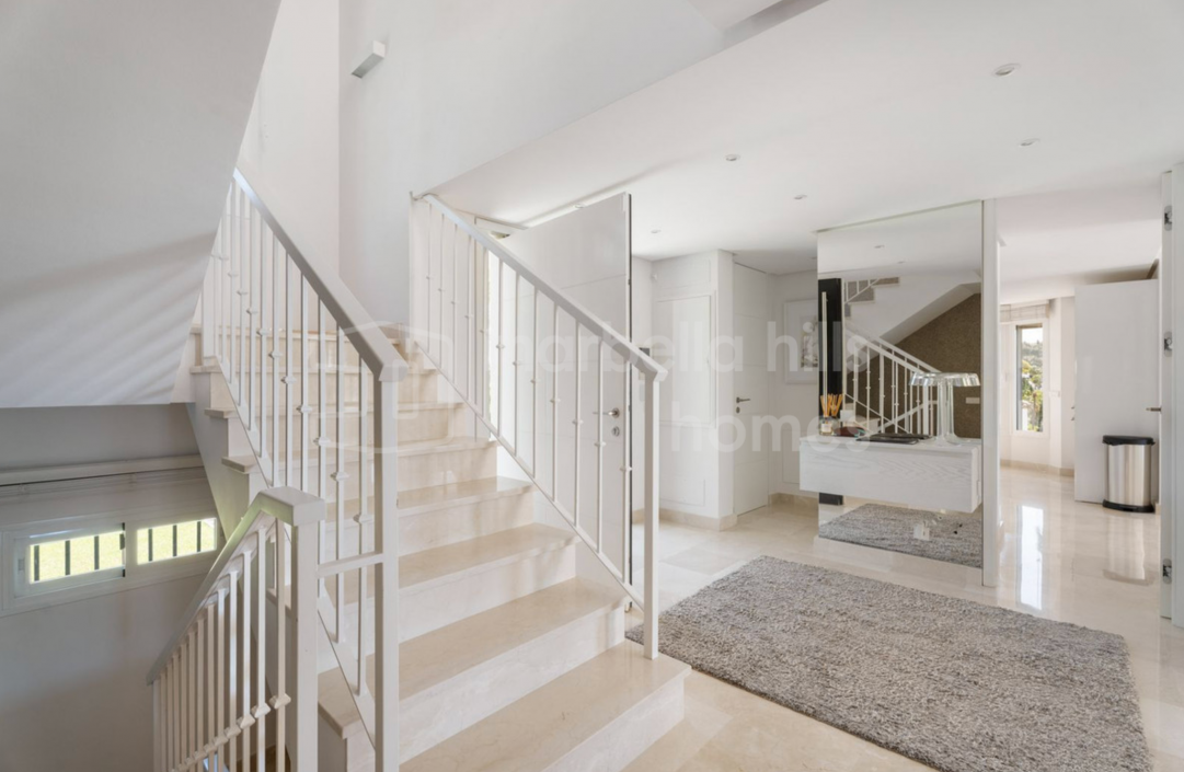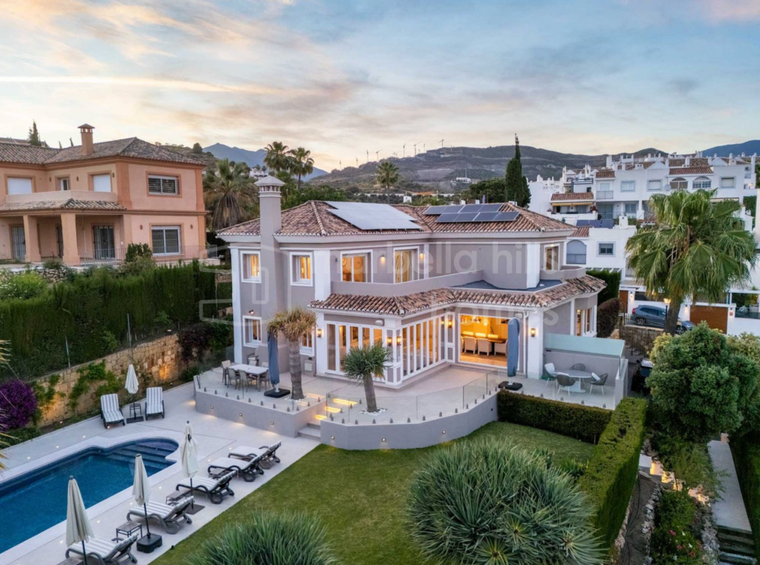 Elegante, vollständig renovierte Luxusvilla im Herzen von Nueva Andalucía – einer der exklusivsten Wohngegenden Marbellas. Umgeben von renommierten Golfplätzen und nur wenige Minuten von Stränden, internationalen Schulen und Puerto Banús entfernt, bietet diese Immobilie die perfekte Kombination aus Komfort, Stil und erstklassiger Lage.