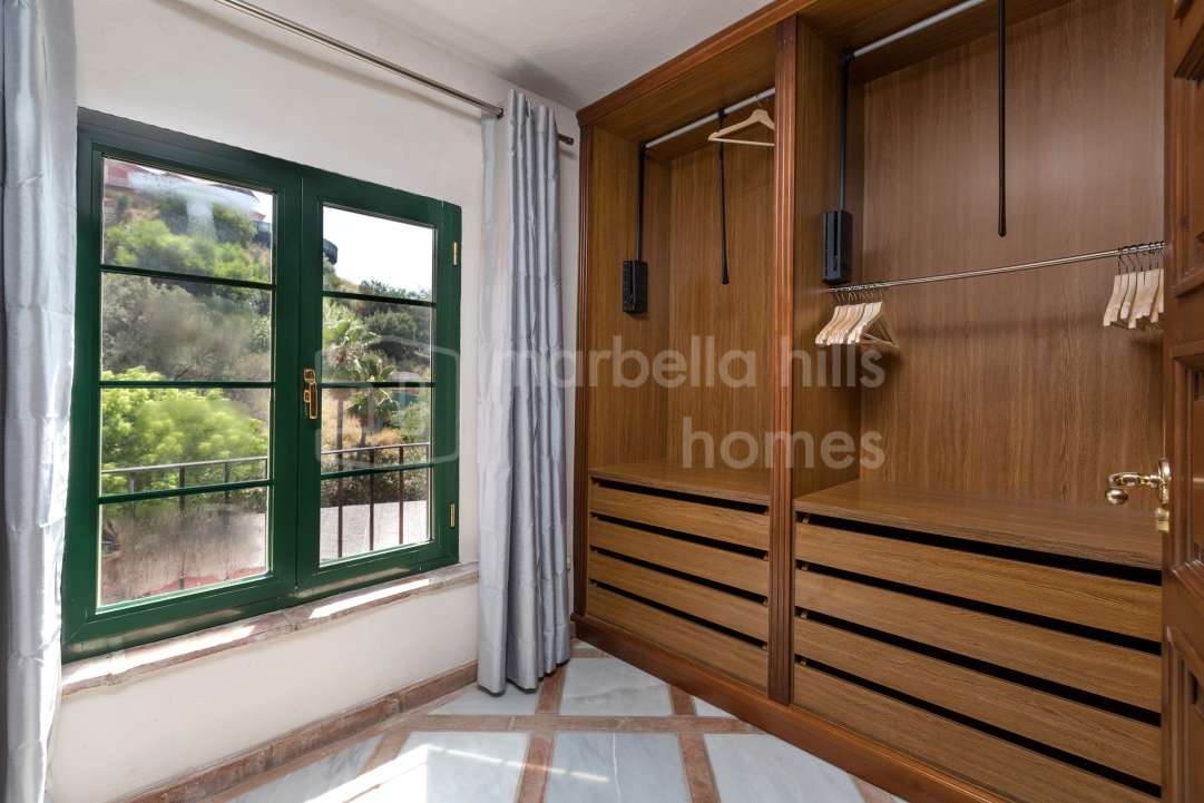 Die erste Etage umfasst zwei Schlafzimmer mit zwei Badezimmern, einen Abstellraum und ein weiteres Schlafzimmer mit Ankleidezimmer und eigenem Bad, alle mit Zugang zu einer großen Terrasse.