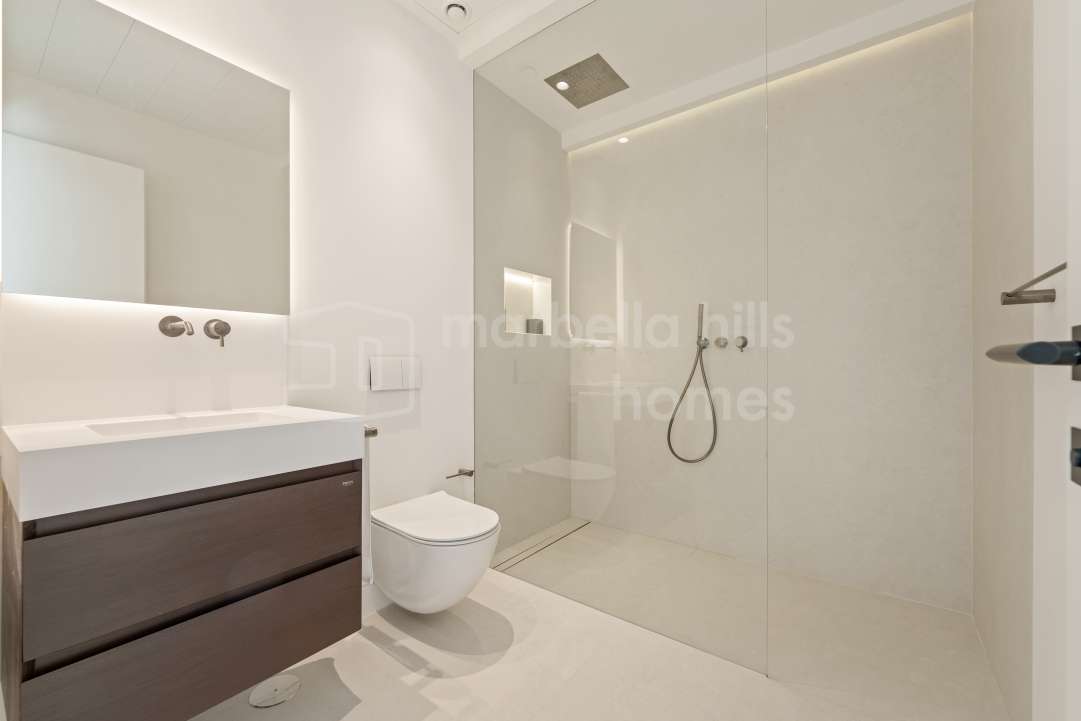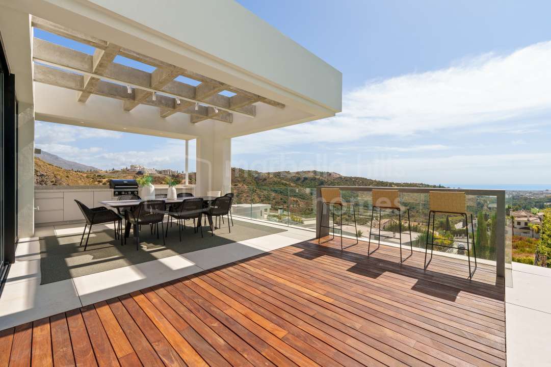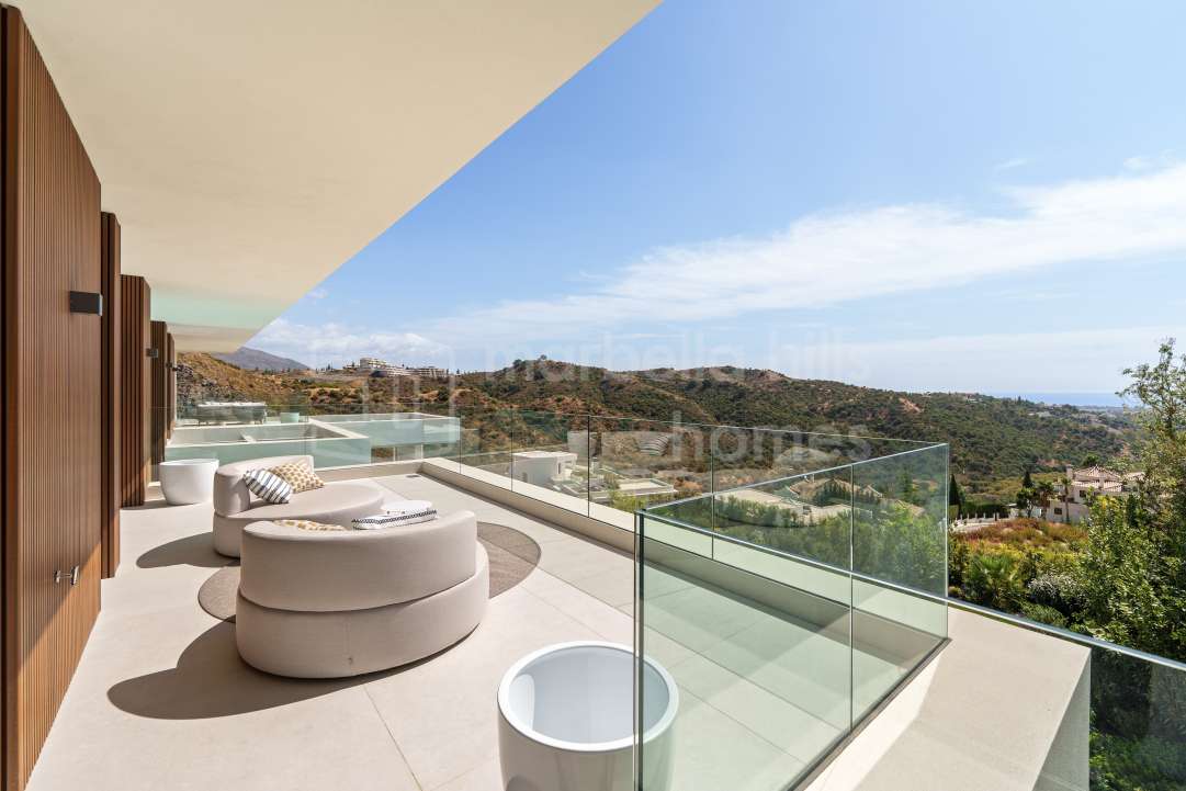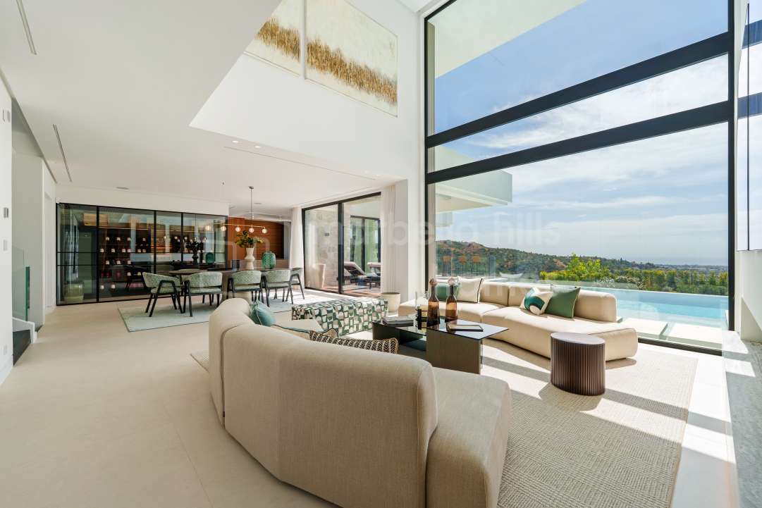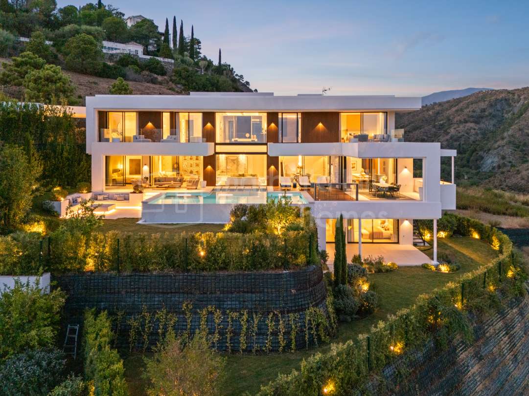 Moderne 5-Schlafzimmer-Villa in La Quinta, Benahavís mit Panoramablick auf Meer und Tal. 606 m² Wohnfläche, 307 m² Terrassen, Infinity-Pool, Kino, Fitnessraum, Weinkeller und...