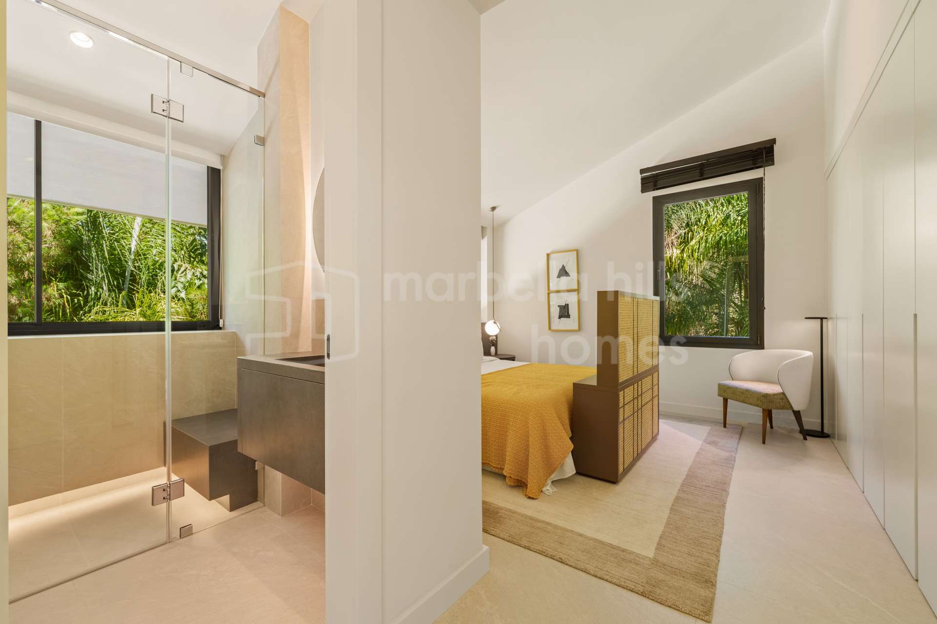 Hacienda Las Chapas bietet 24-Stunden-Sicherheit und eine erstklassige Lage, nur wenige Minuten von Marbellas Sandstränden, Fünf-Sterne-Hotels, exklusiven Beach Clubs und erstklassigen Restaurants entfernt. Einkaufsmöglichkeiten sind in nur drei Gehminuten erreichbar, und renommierte Tennisclubs sowie der Yachthafen von Cabopino liegen in unmittelbarer Nähe.