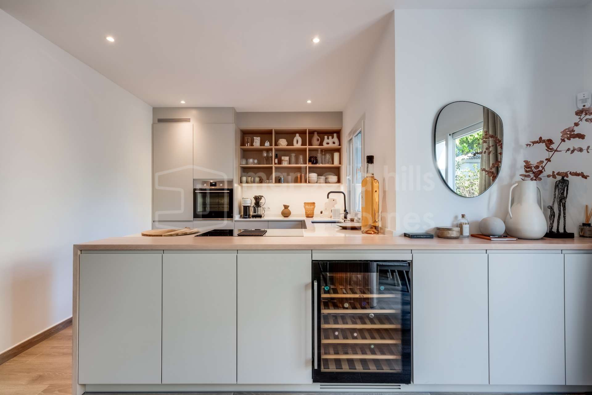 Die Immobilie verfügt über 180 m² Wohnfläche auf zwei Etagen und überzeugt mit einer durchdachten Raumaufteilung – ideal für ein komfortables Familienleben oder als stilvolles Feriendomizil. Das Erdgeschoss bietet einen hellen, offenen Wohn- und Essbereich sowie eine moderne, voll ausgestattete Küche. Große Glasschiebetüren führen auf eine private Terrasse von 30 m², perfekt zum Entspannen, Essen im Freien oder Gästeempfang.