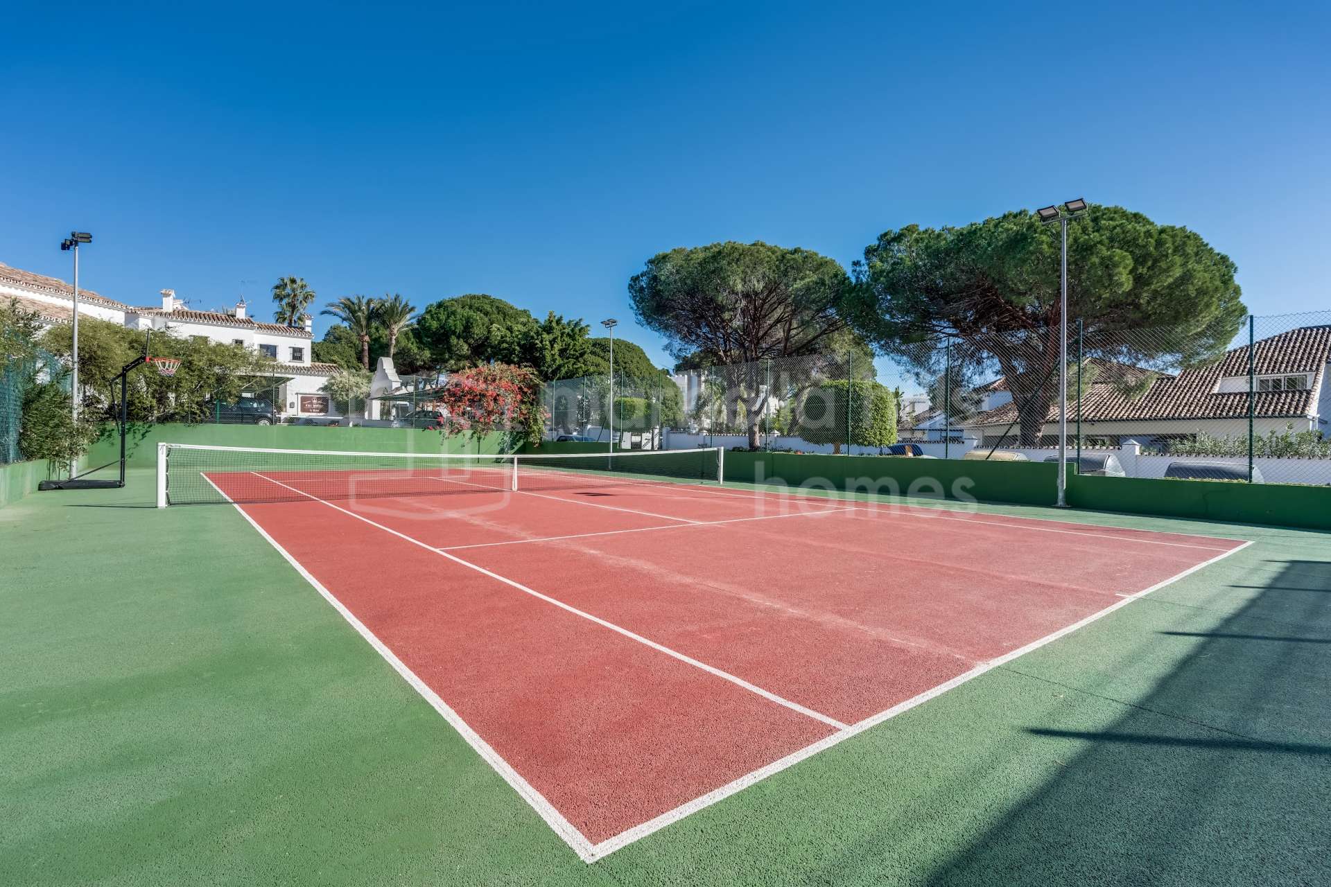 Dieses geschmackvoll renovierte Reihenhaus befindet sich im begehrten Los Naranjos Country Club, einer der beliebtesten und etabliertesten Wohnanlagen in Nueva Andalucía. Die gesicherte Anlage mit 24-Stunden-Sicherheitsdienst bietet eine ruhige und zugleich zentrale Lage, nur wenige Minuten von Marbellas besten Golfplätzen, Restaurants und Einkaufsmöglichkeiten entfernt.