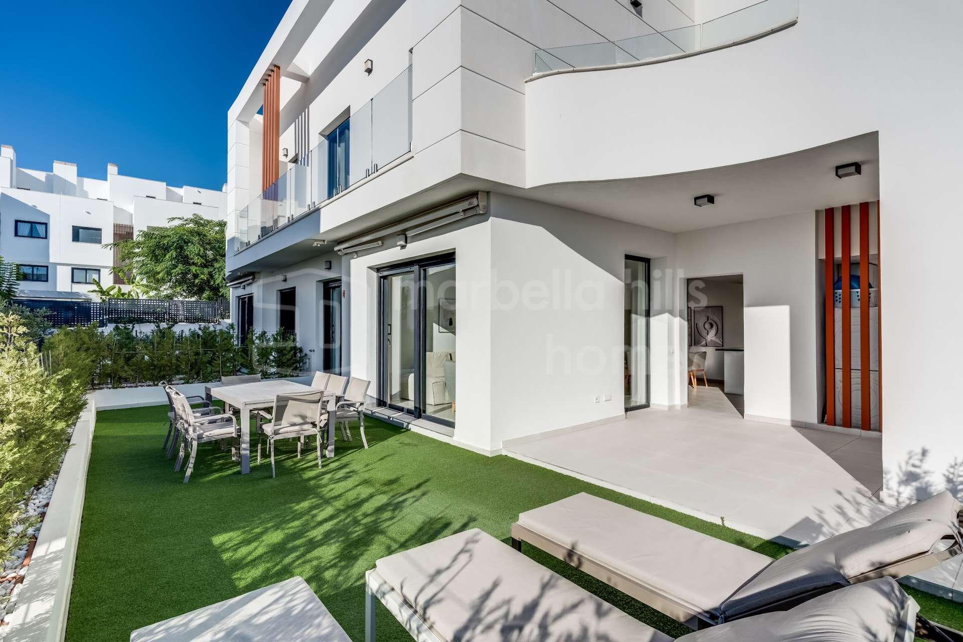Dieses stilvoll renovierte Reihenhaus befindet sich im Herzen der Neuen Goldenen Meile, in der exklusiven Wohnanlage Los Miradores del Sol in Bel Air (Estepona Ost). Die Immobilie vereint modernes Design, hohen Wohnkomfort und mediterranen Lebensstil – mit herrlich offenen Ausblicken, großzügigen Wohnflächen und exzellenten Gemeinschaftseinrichtungen.