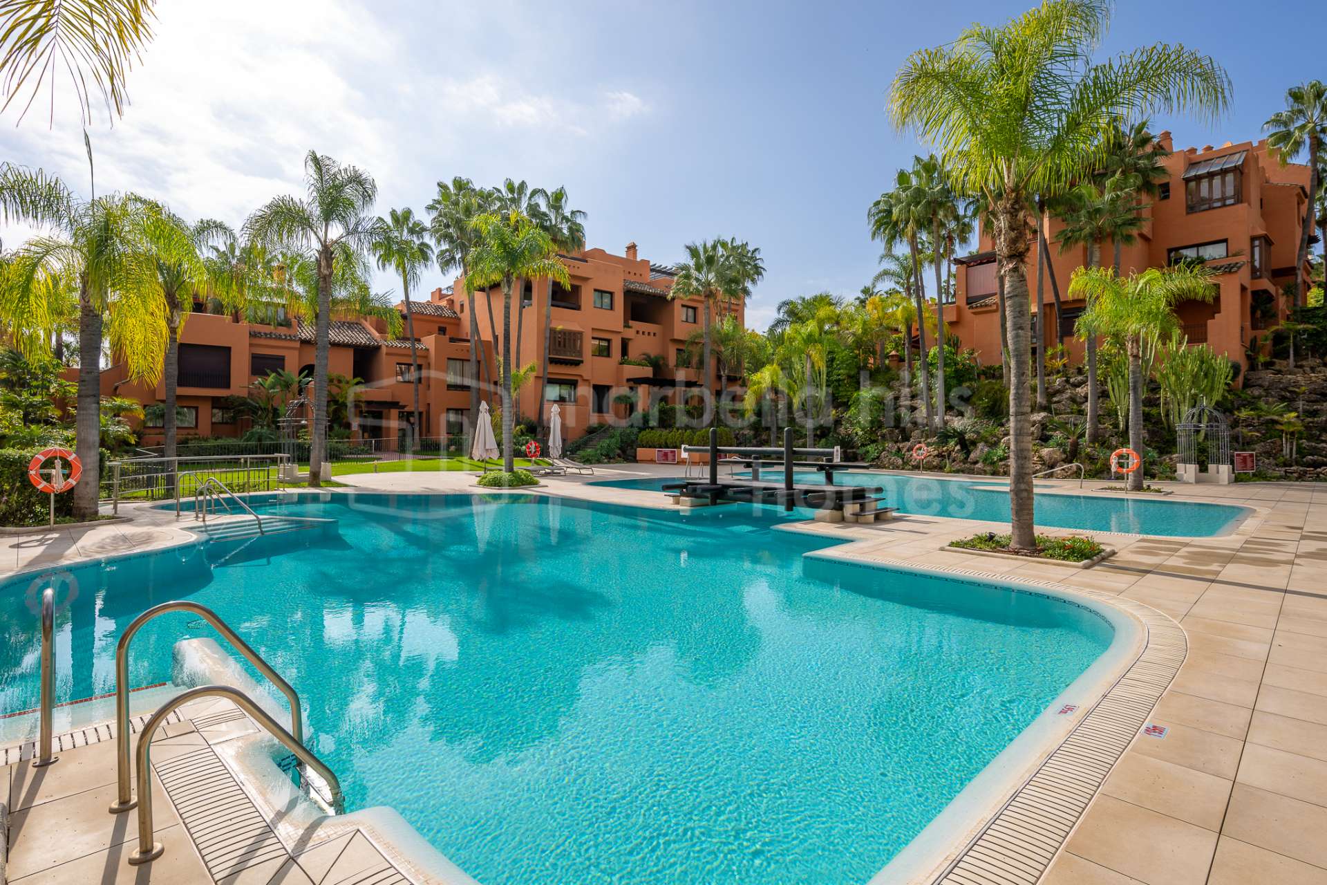La Alzambra Phase II ist eine ruhige und gepflegte Anlage mit tropischen Gärten, einem im Jahr 2024 modernisierten Pool, Fitnessstudio und Sauna (Investition von 500.000 Euro). Die Anlage ist seit über 20 Jahren einbruchsicher und verfügt über aktualisierte Sicherheitskameras und elektronische Türschlösser.