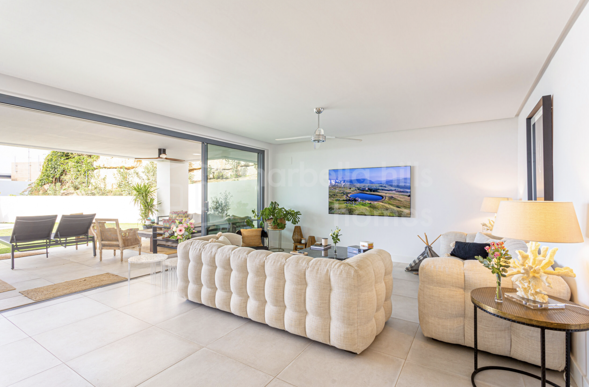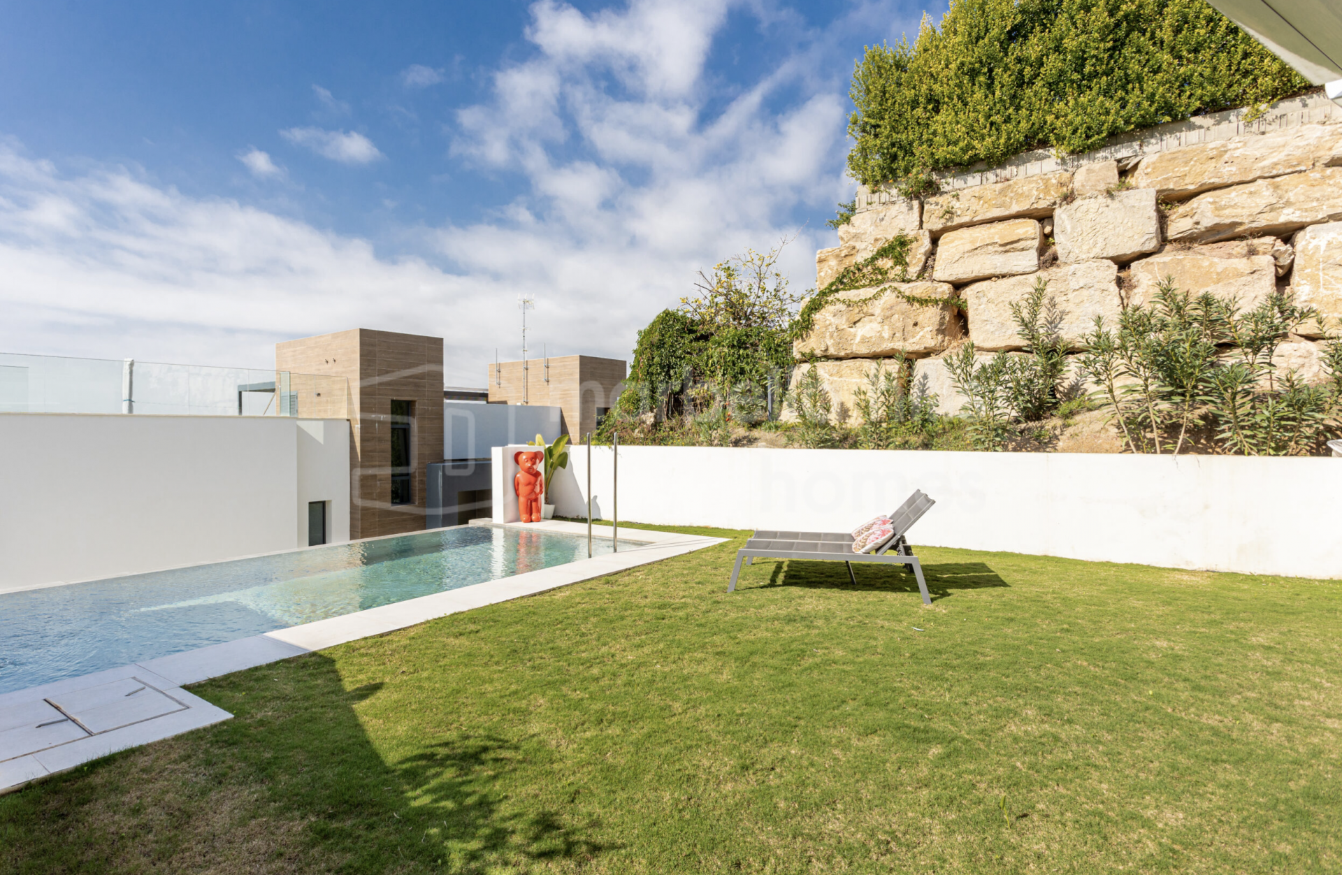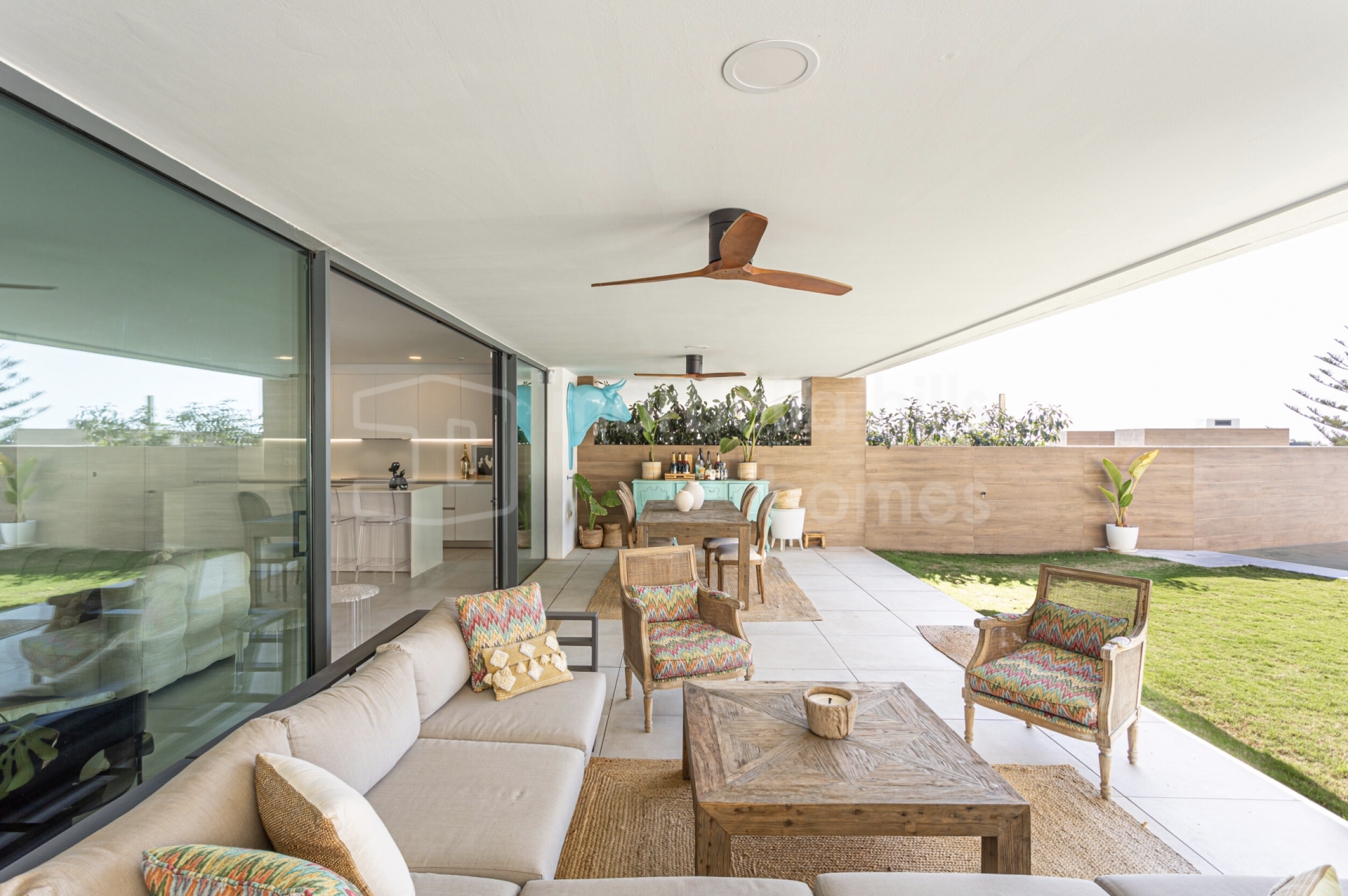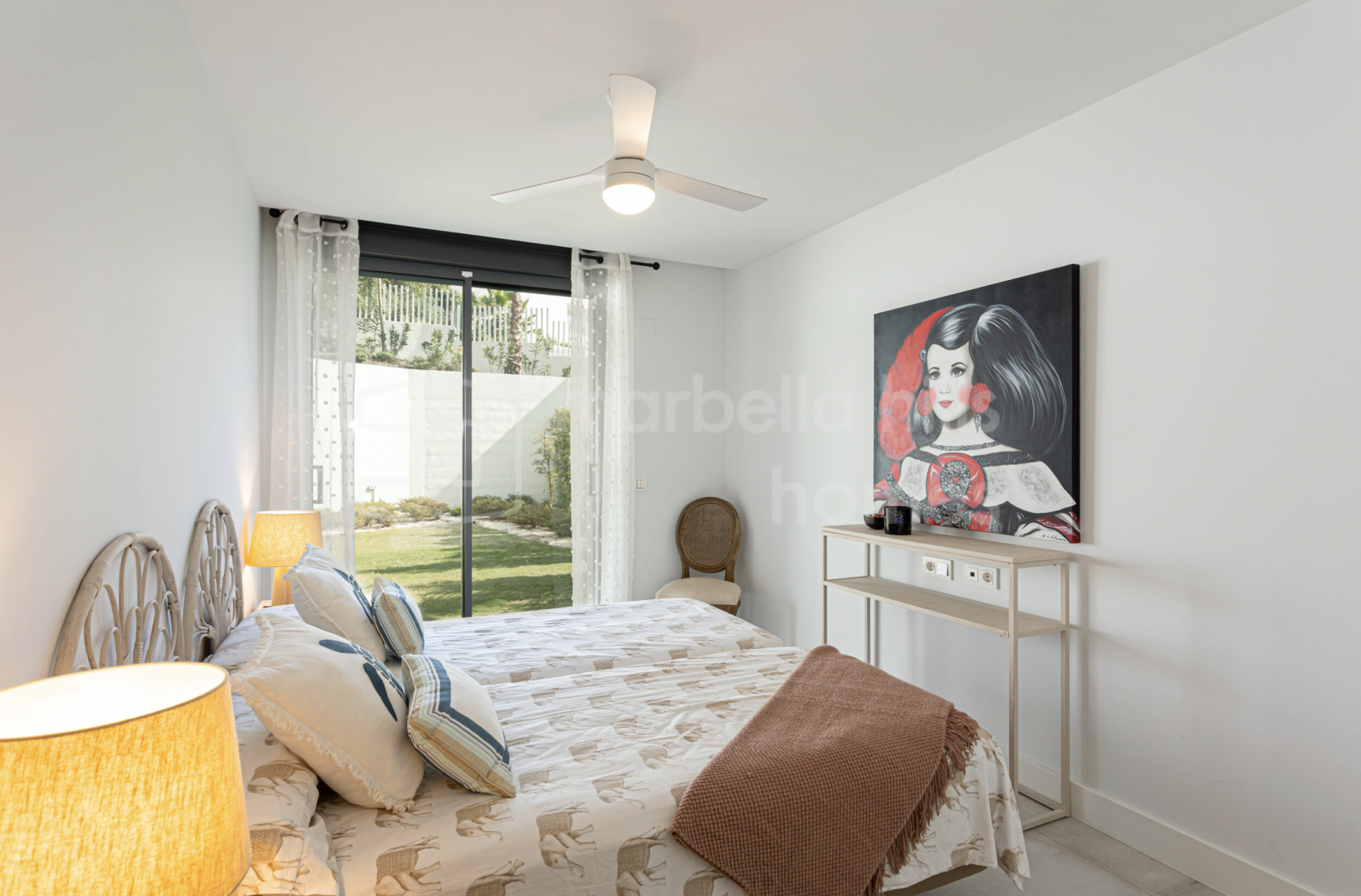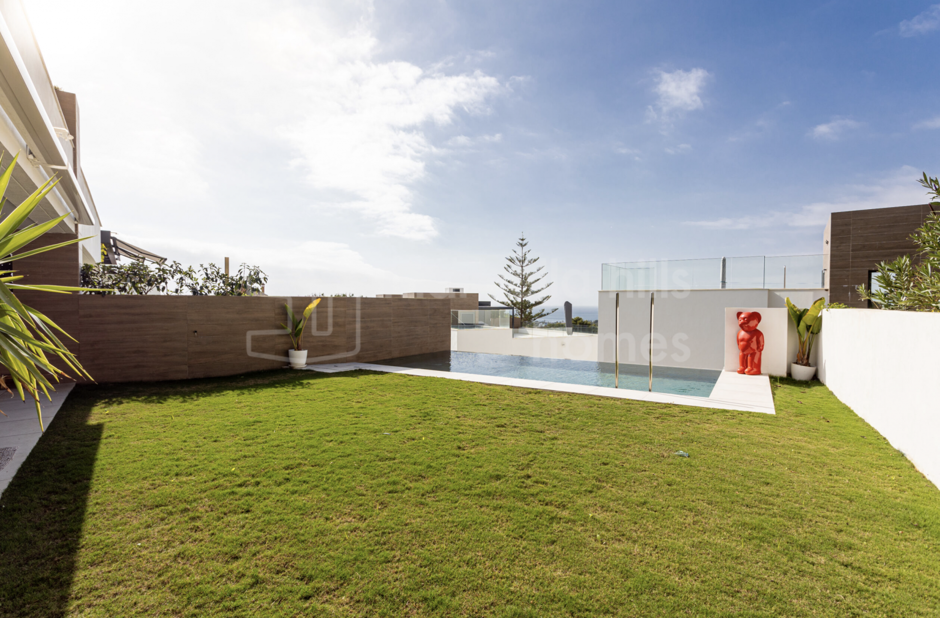Alle Schlafzimmer verfügen über direkten Zugang zum privaten Garten und schaffen so eine nahtlose Verbindung zwischen Innen- und Außenbereich. Der helle Wohnbereich mit offener Küche und bodentiefen Fenstern vermittelt ein einladendes, zeitgemäßes Ambiente. Die voll ausgestattete Küche kombiniert Funktionalität und Design mit Quarz-Arbeitsplatten, hochwertigen Einbaugeräten und LED-Beleuchtung. Die Bäder überzeugen mit edler Optik und erstklassigen Materialien, die Langlebigkeit und Eleganz garantieren.