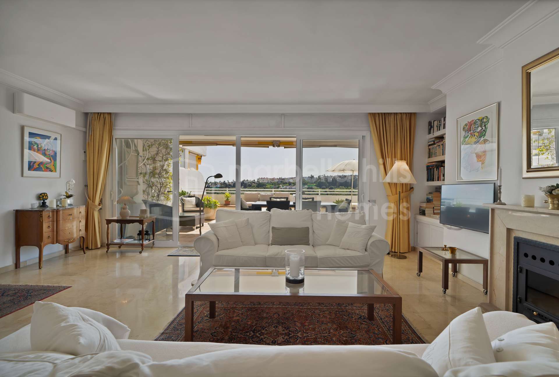 Küche komplett ausgestattet, Nähe Einkaufsmöglichkeiten, Nähe Schulen, Haustiere erlaubt, Offener Kamin, Marmorböden, Gästezimmer, Abstellraum, Doppelverglasung, Esszimmer, Küche ausgestattet, Wohnzimmer, Annehmlichkeiten nahebei, Golfsicht, Internet - Wi-Fi, Überdachte Terrasse, Einbauschränke, Geschlossene Wohnanlage, Klimaanlage, Aufzug, Blick auf Garten, Nähe Golfplatz, Offene Terrasse, Möbel nach Wahl, Guter Zustand.