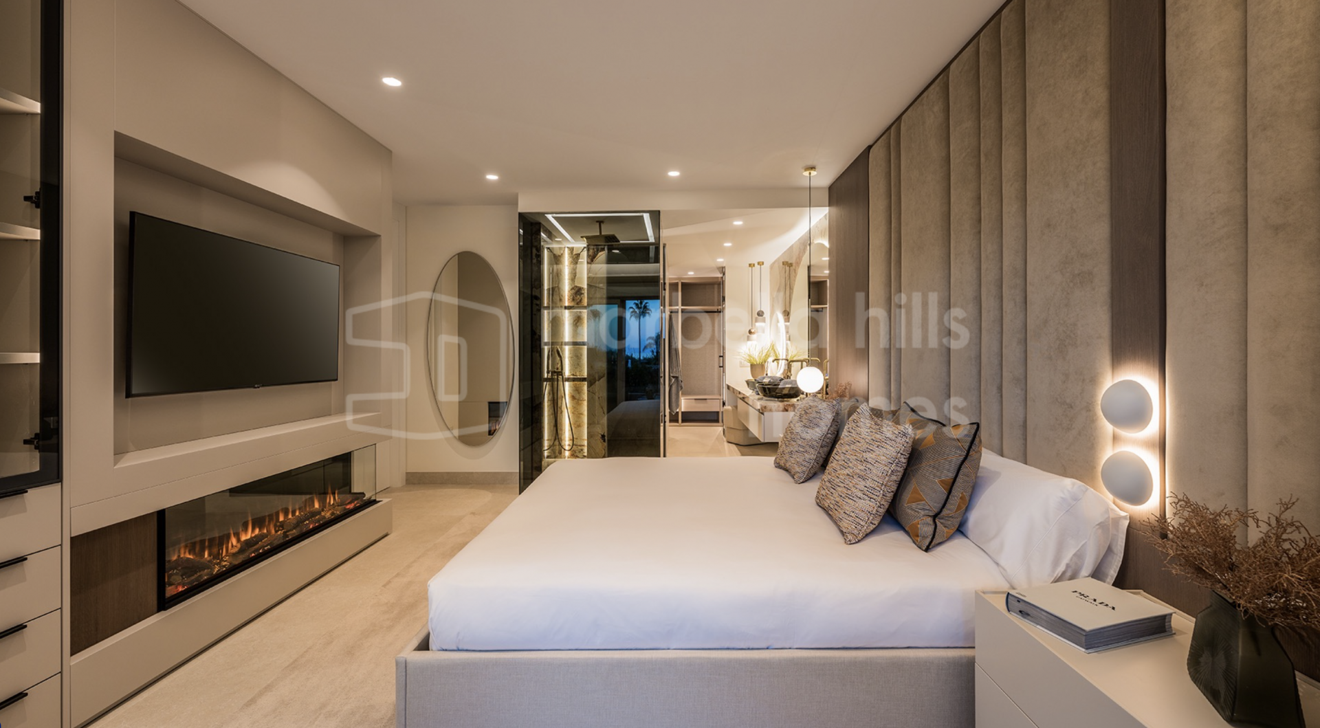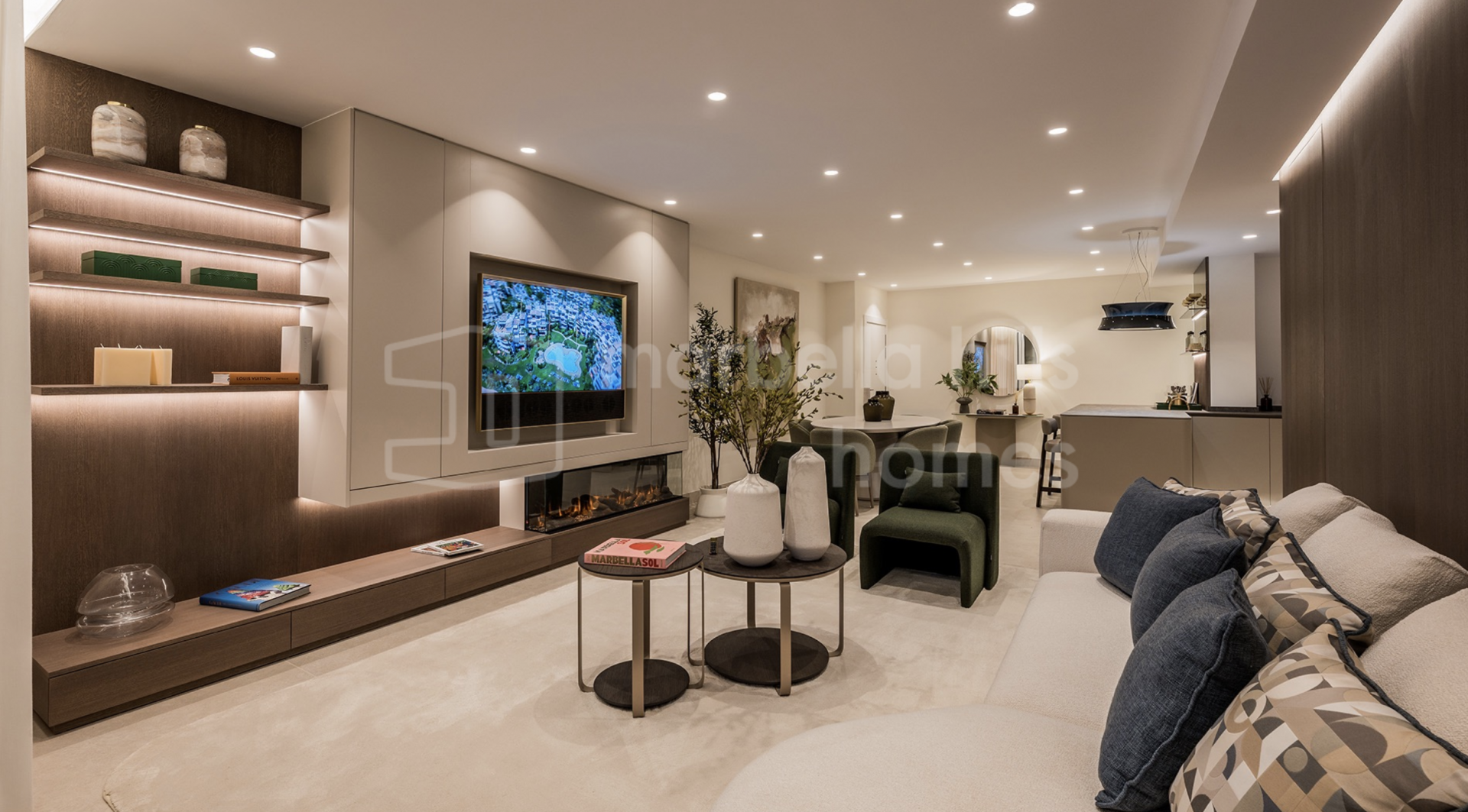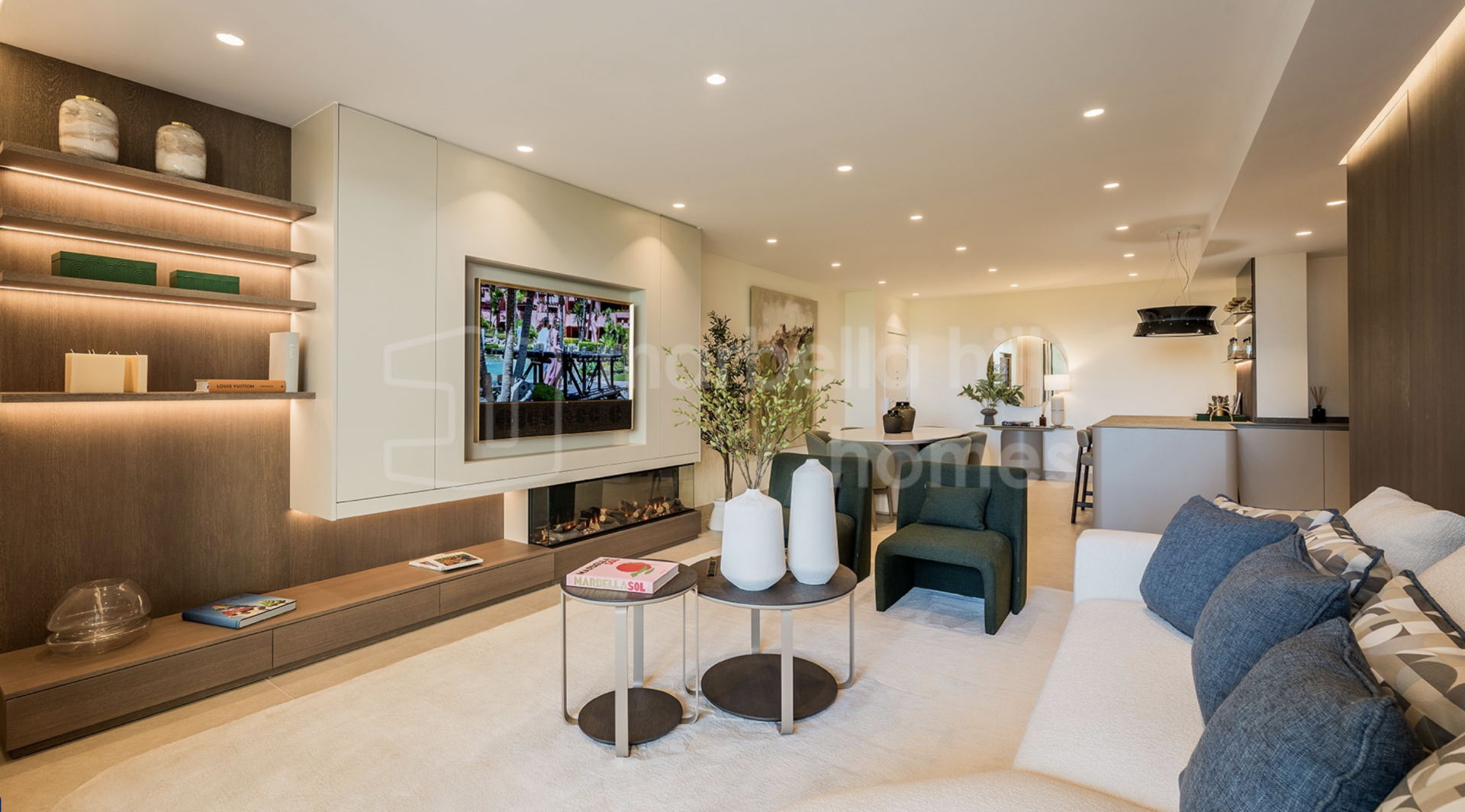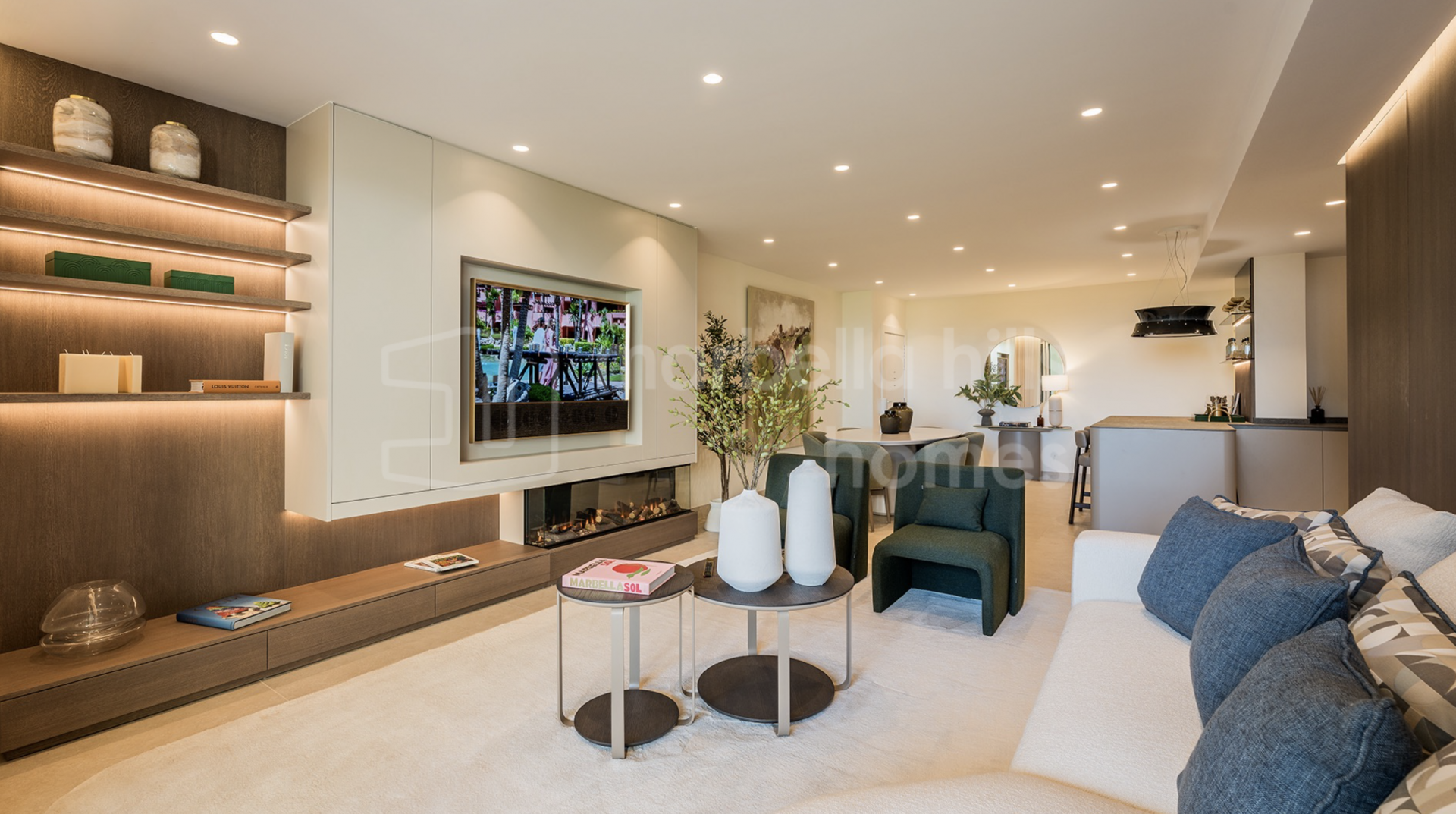 Die Immobilie bietet drei großzügige Schlafzimmer und zwei Badezimmer auf 126 m² Wohnfläche. Der offene Wohn- und Essbereich überzeugt durch stilvolle Ausstattung, hochwertige Böden, einen elektrischen Kamin und ein Bang & Olufsen Soundsystem. Die Designküche ist mit Premium-Geräten voll ausgestattet.