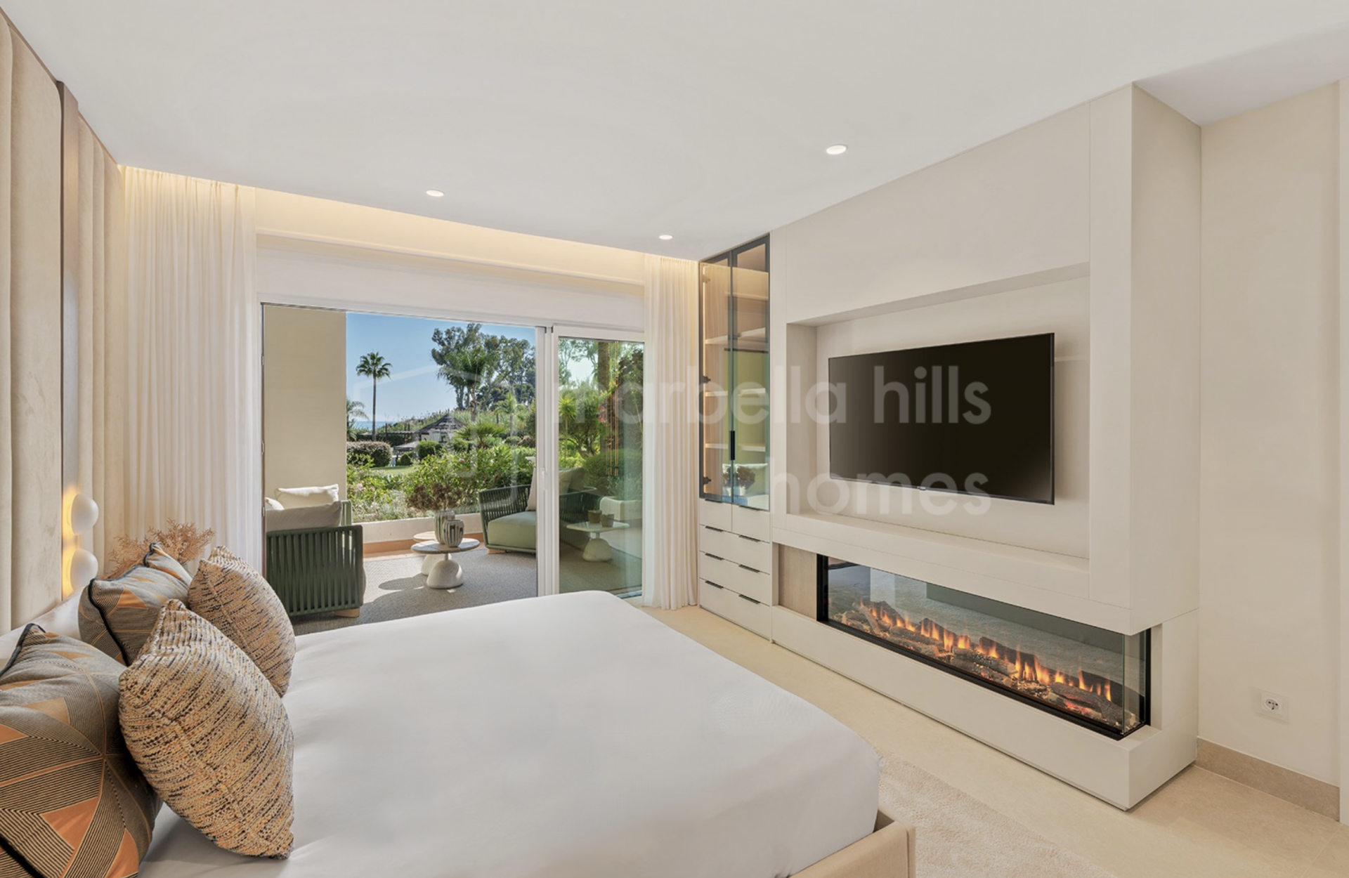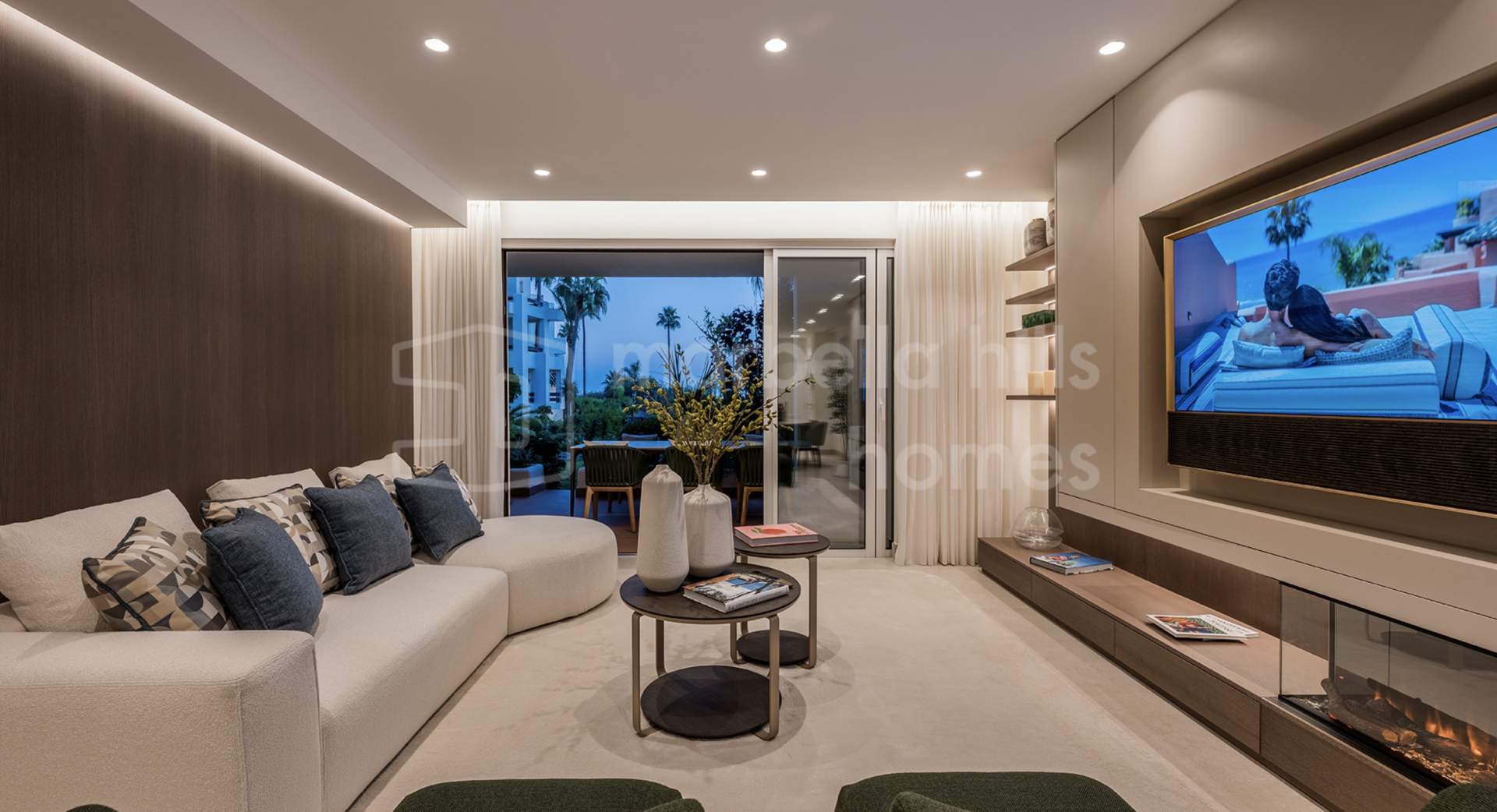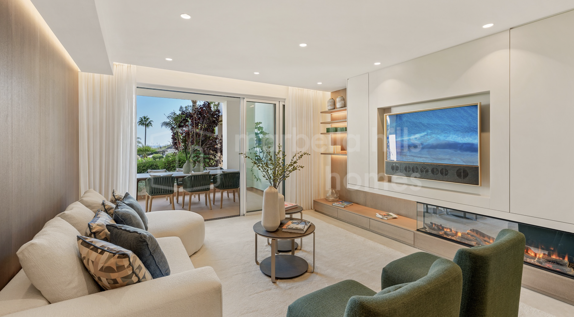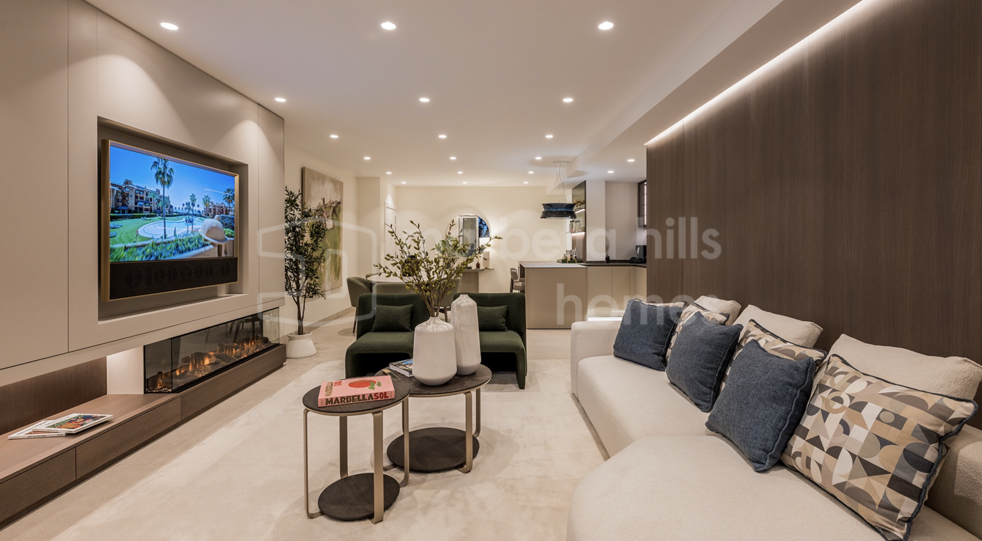 Die Immobilie bietet drei großzügige Schlafzimmer und zwei Badezimmer auf 126 m² Wohnfläche. Der offene Wohn- und Essbereich überzeugt durch stilvolle Ausstattung, hochwertige Böden, einen elektrischen Kamin und ein Bang & Olufsen Soundsystem. Die Designküche ist mit Premium-Geräten voll ausgestattet.