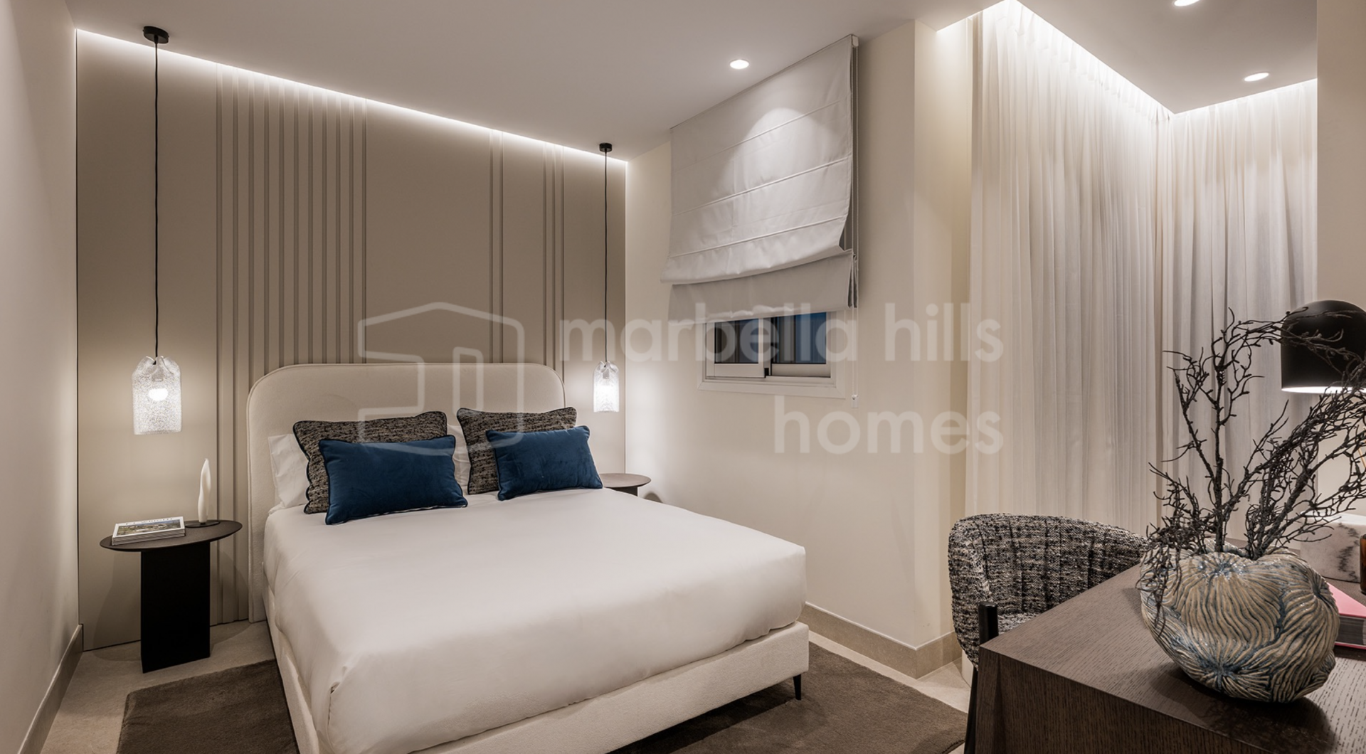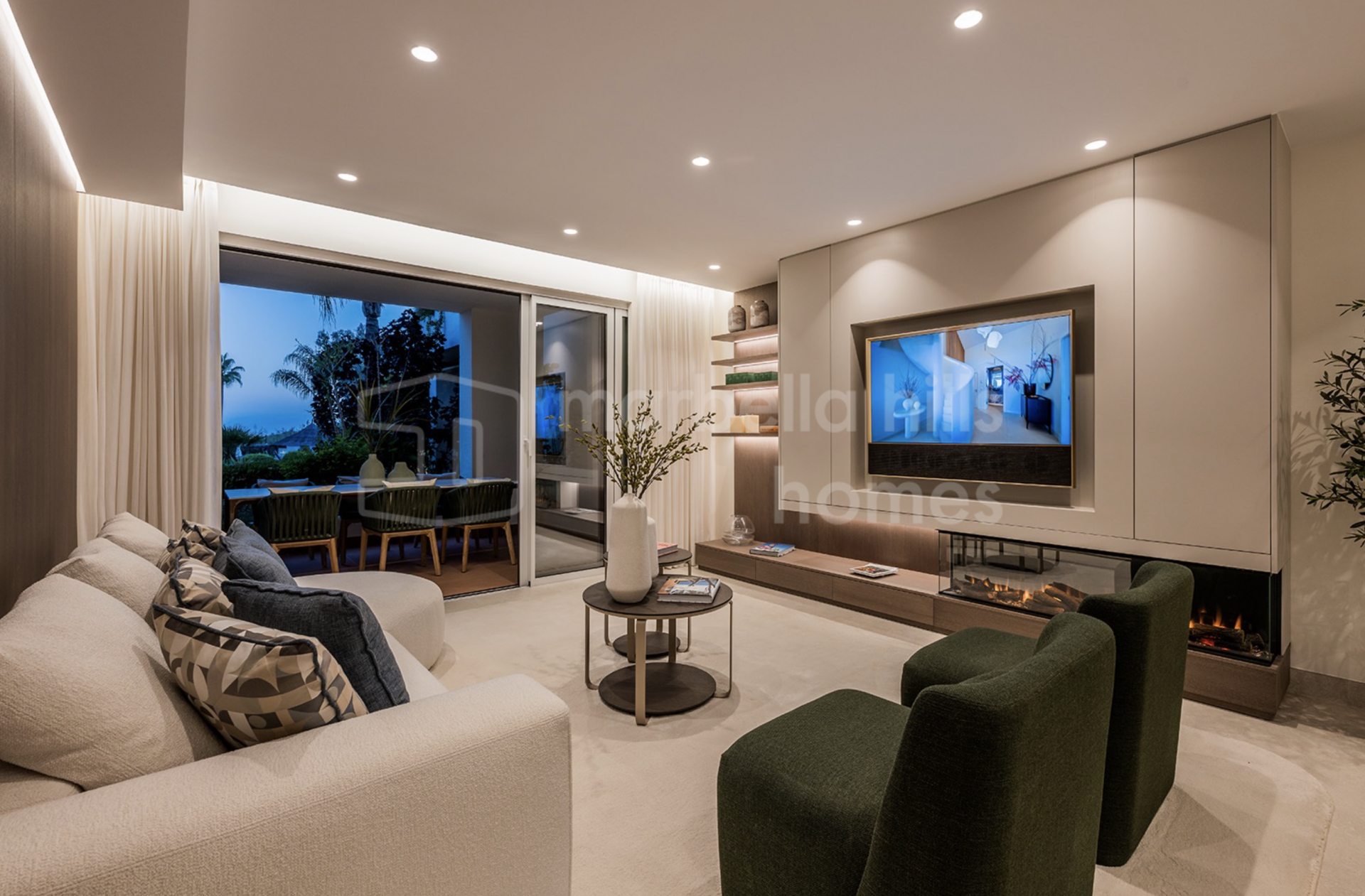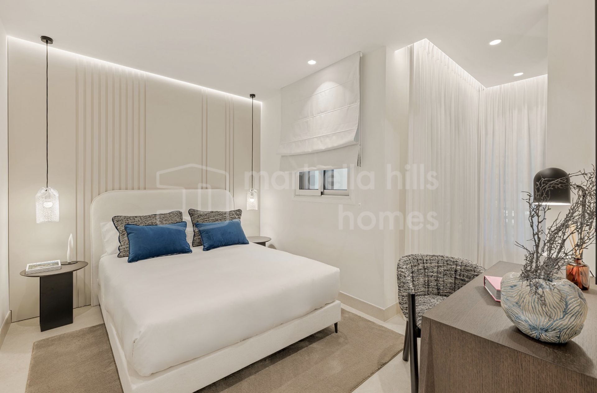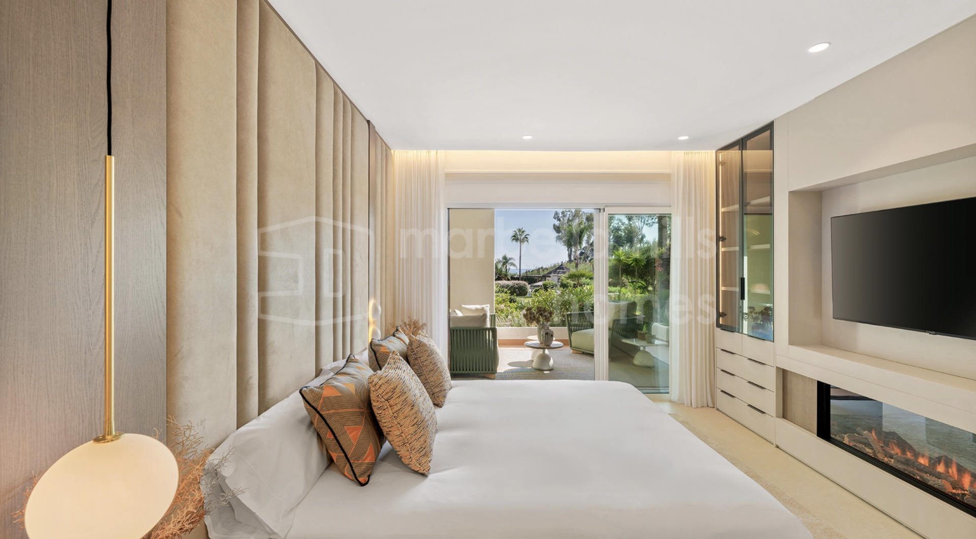 Die Immobilie bietet drei großzügige Schlafzimmer und zwei Badezimmer auf 126 m² Wohnfläche. Der offene Wohn- und Essbereich überzeugt durch stilvolle Ausstattung, hochwertige Böden, einen elektrischen Kamin und ein Bang & Olufsen Soundsystem. Die Designküche ist mit Premium-Geräten voll ausgestattet.