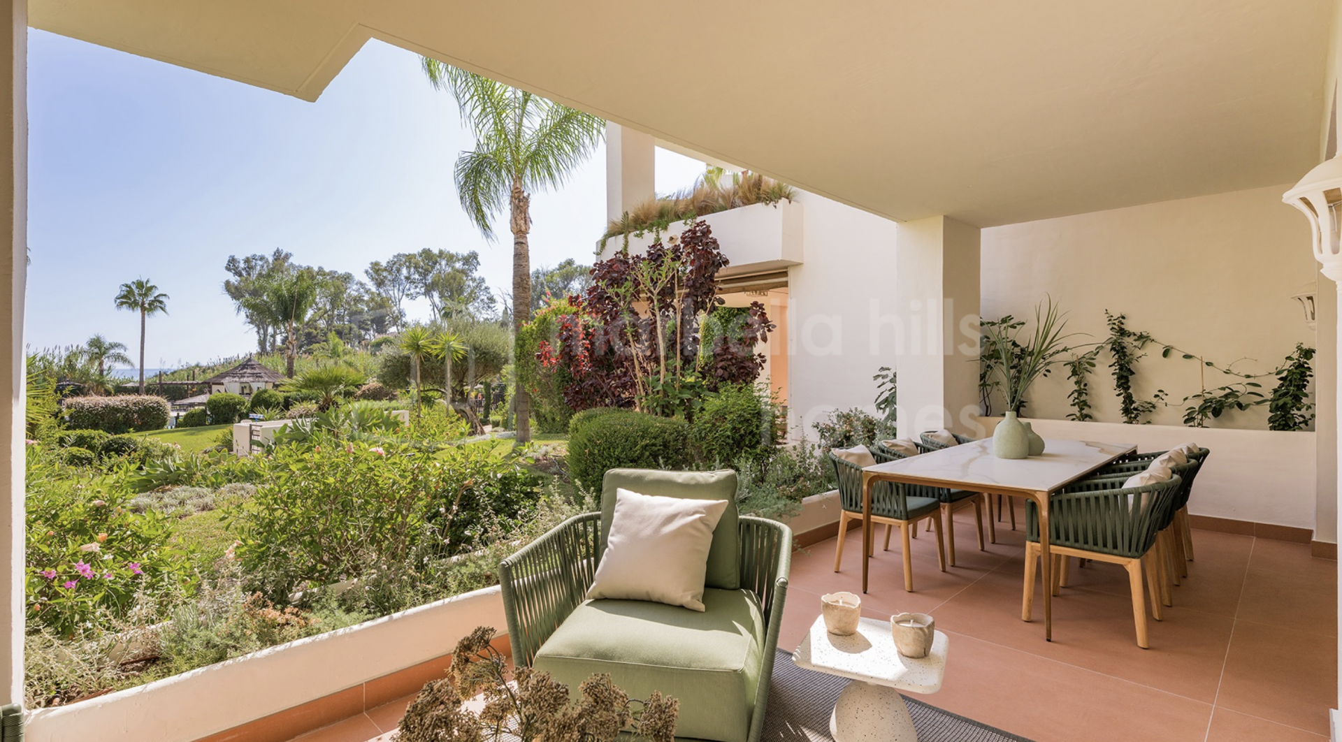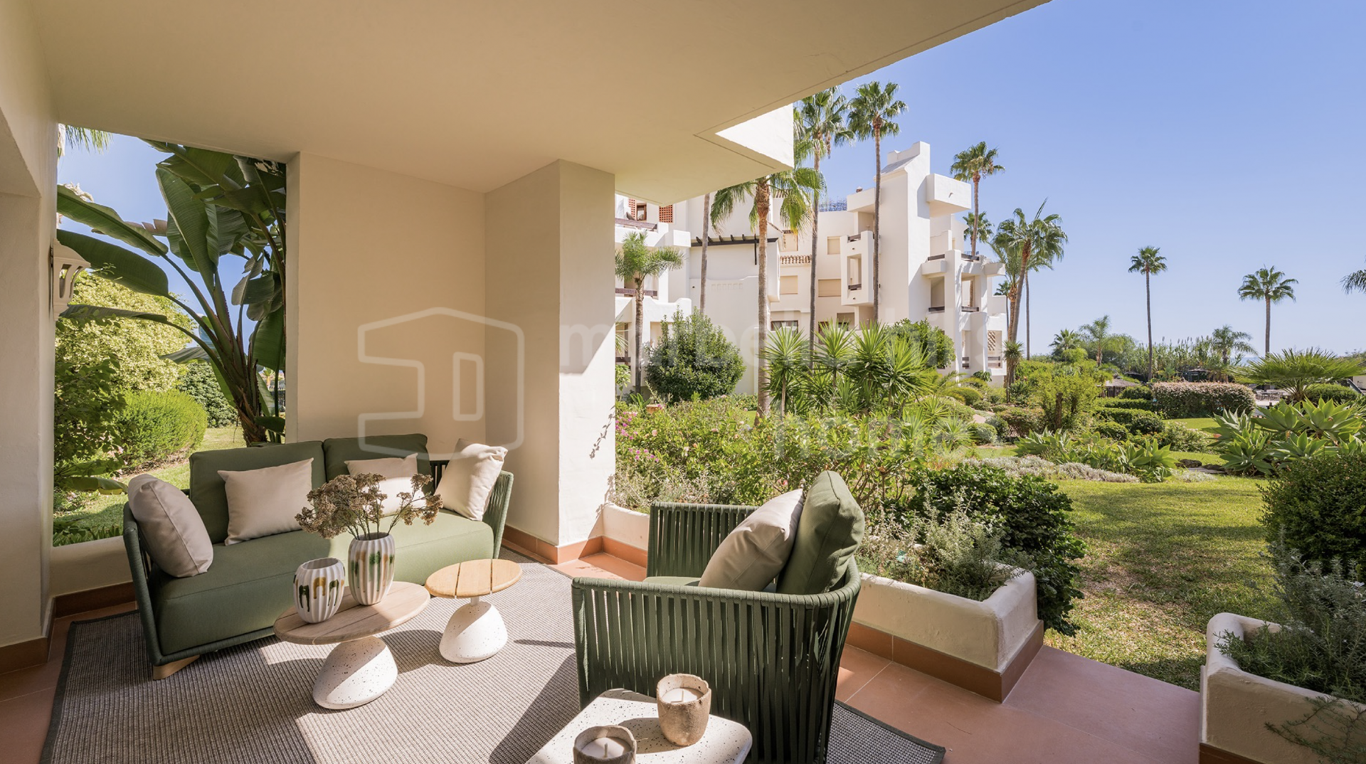 Eine private 27 m² große Terrasse öffnet sich zu tropischen Gärten und bietet teilweise Meerblick – perfekt für Mahlzeiten im Freien, gesellige Abende oder entspannte Momente. Das Apartment wird komplett möbliert verkauft und ist sofort bezugsfertig.