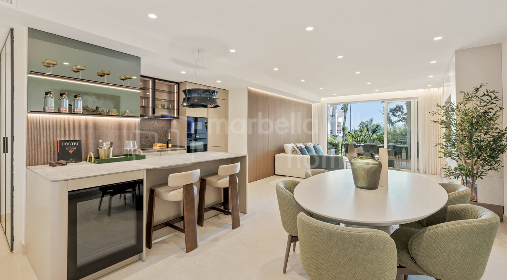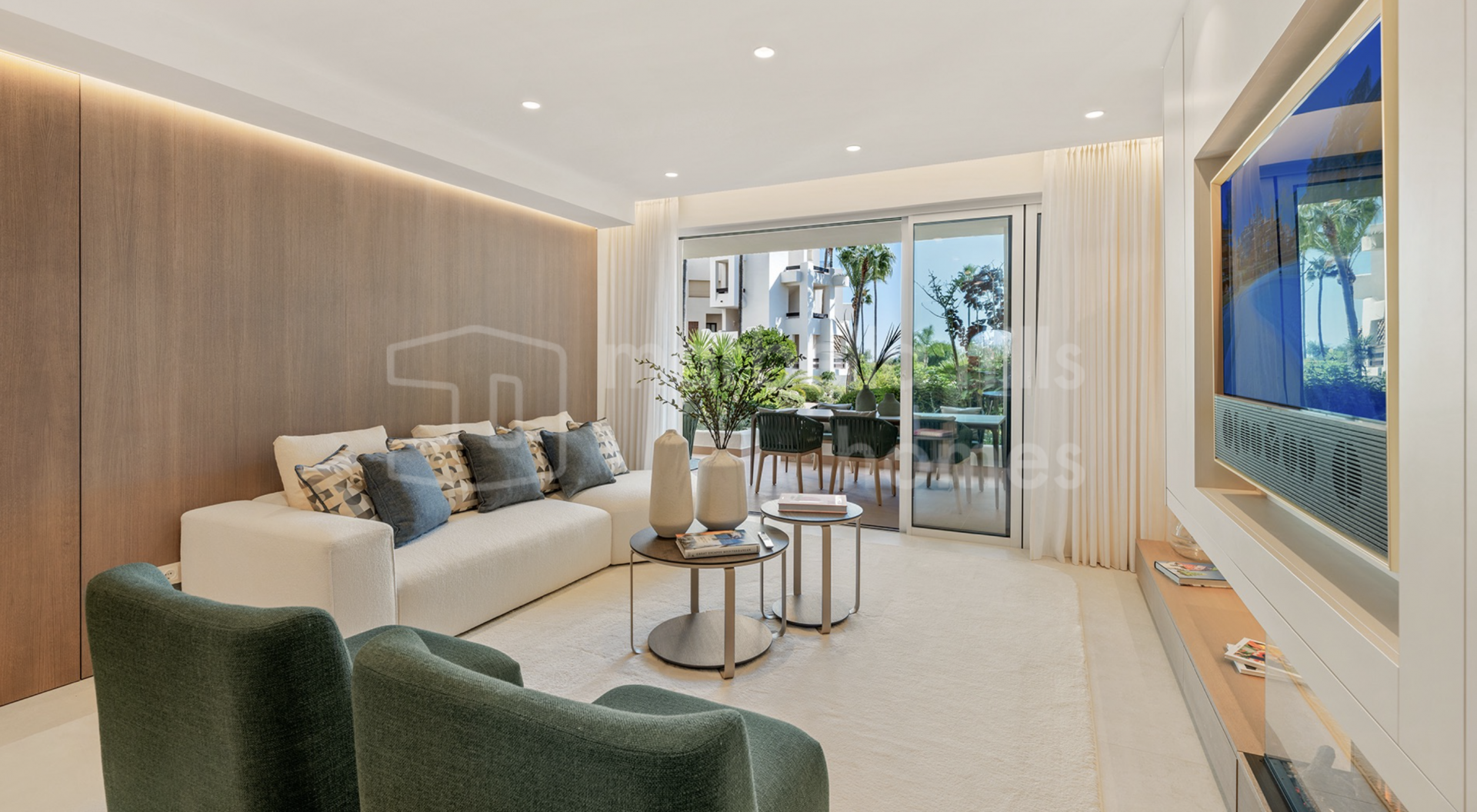 Dieses beeindruckende Erdgeschoss-Apartment befindet sich in der exklusiven Wohnanlage Bahía del Velerín an der New Golden Mile von Estepona. Es wurde kürzlich mit hochwertigen Materialien komplett renoviert und vereint modernes Design mit mediterranem Charme – ideal für ein Leben direkt am Meer.