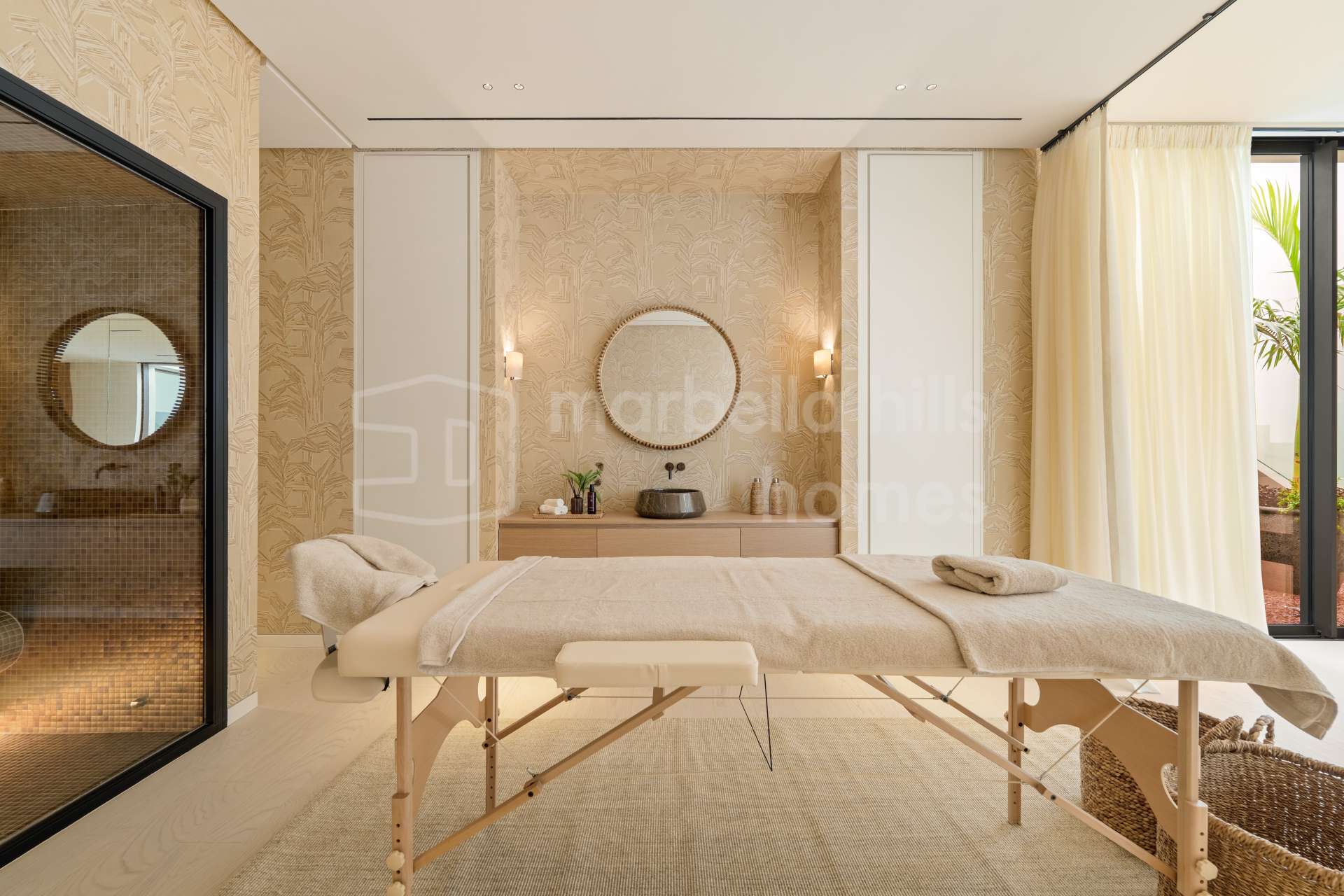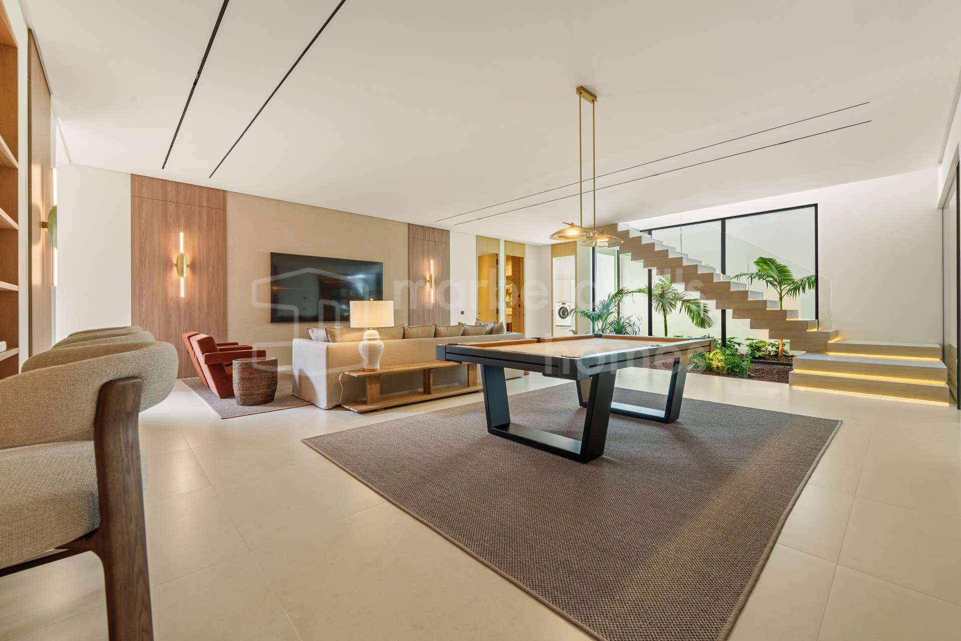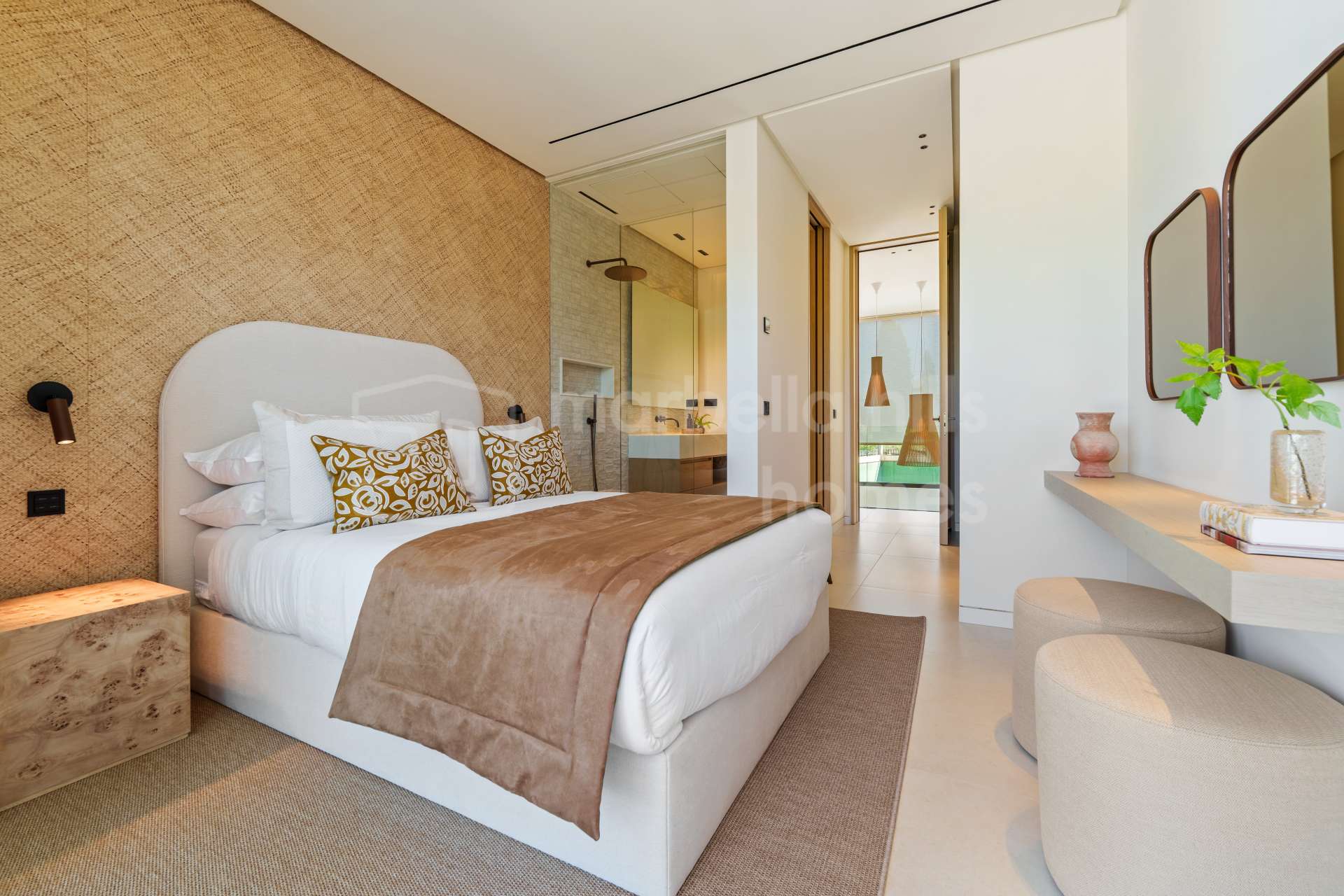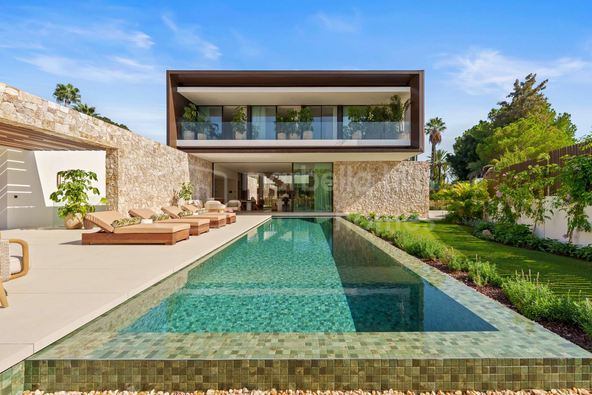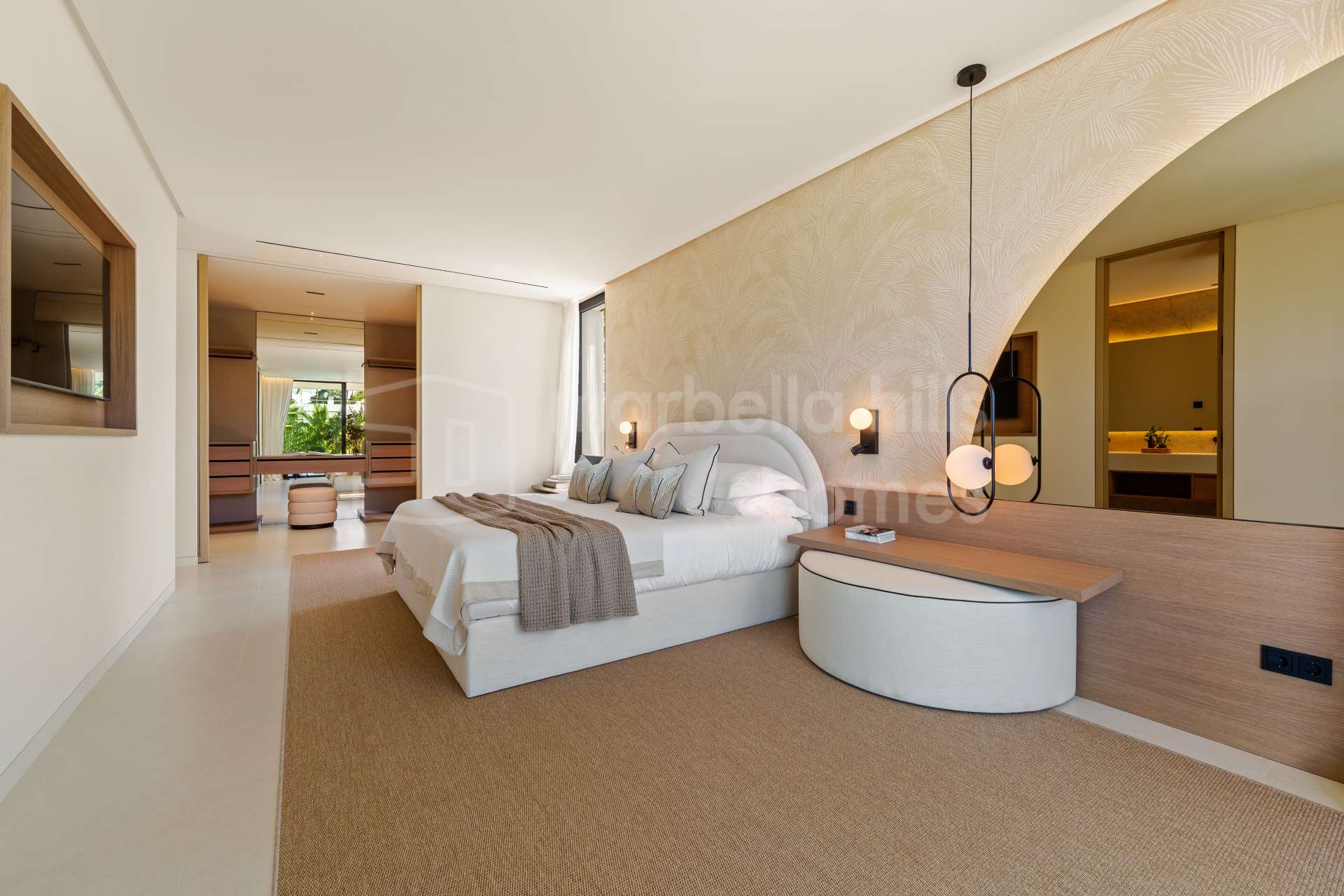 Im Außenbereich umrahmen sorgfältig gestaltete Gärten den privaten Pool, ergänzt durch verschiedene Lounge- und Essbereiche sowie eine Außenküche – perfekt, um das mediterrane Klima Marbellas das ganze Jahr über zu genießen.