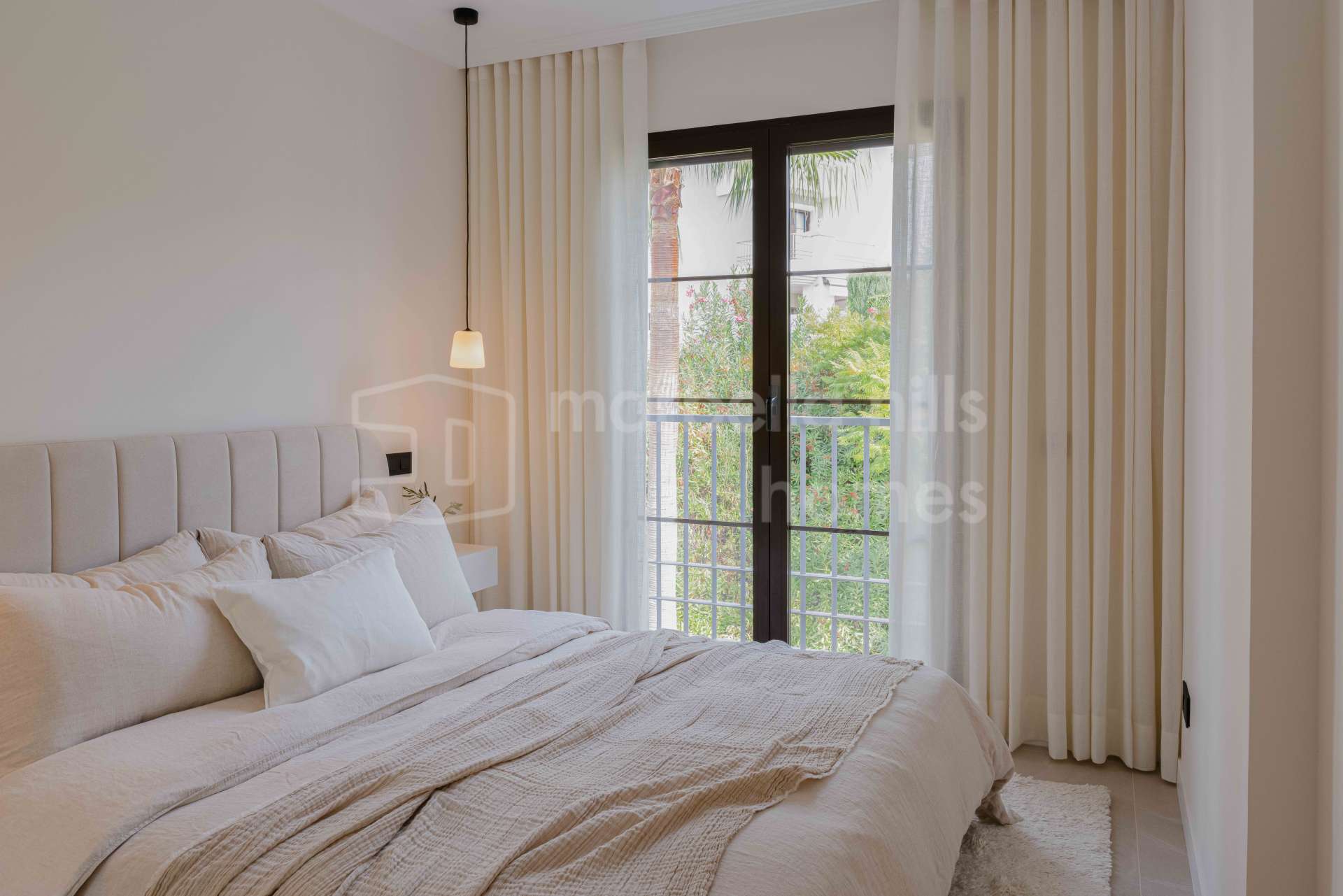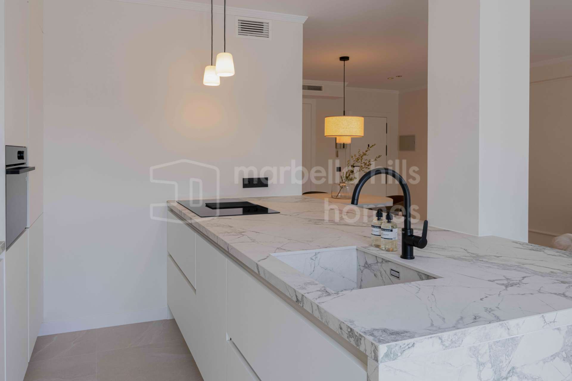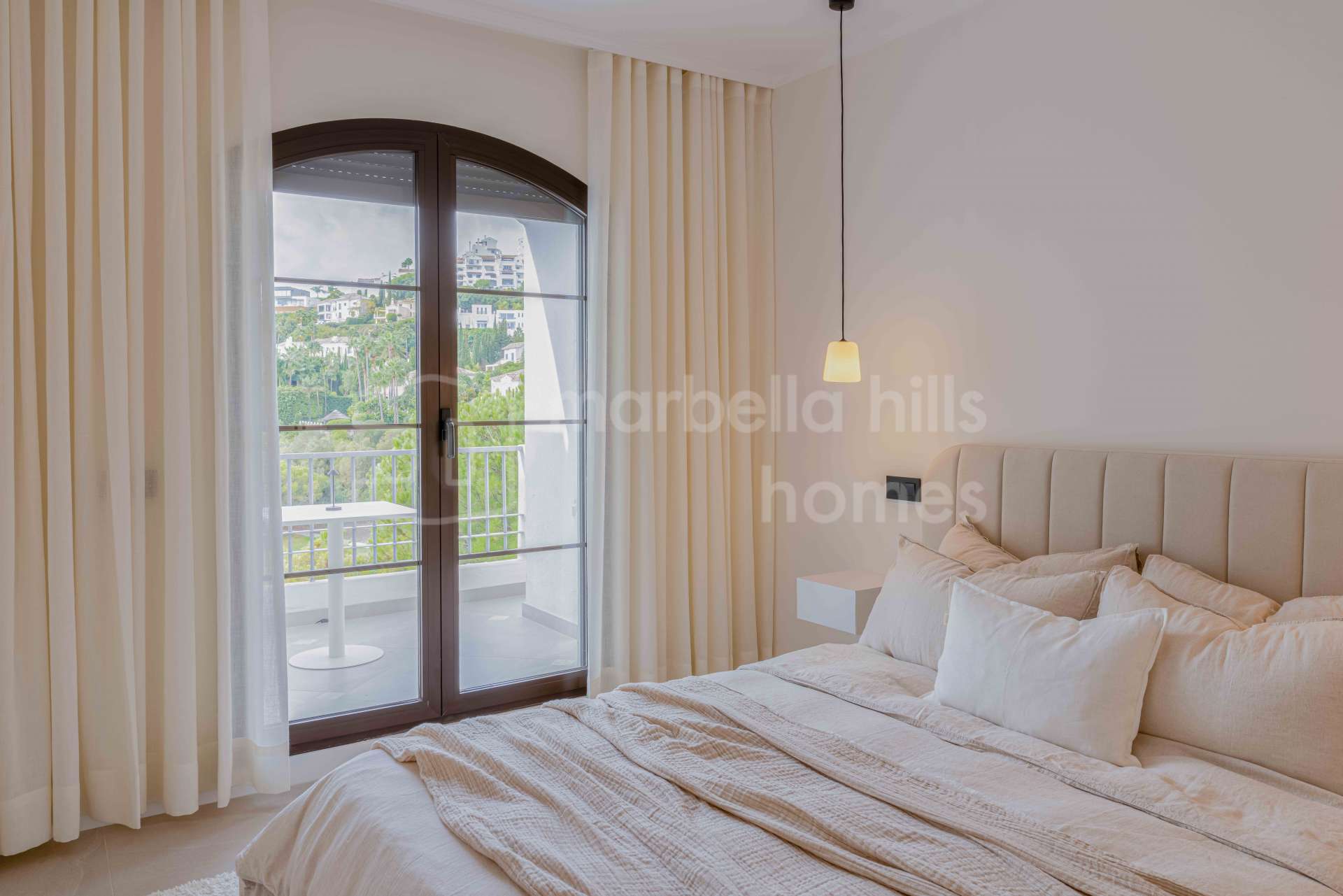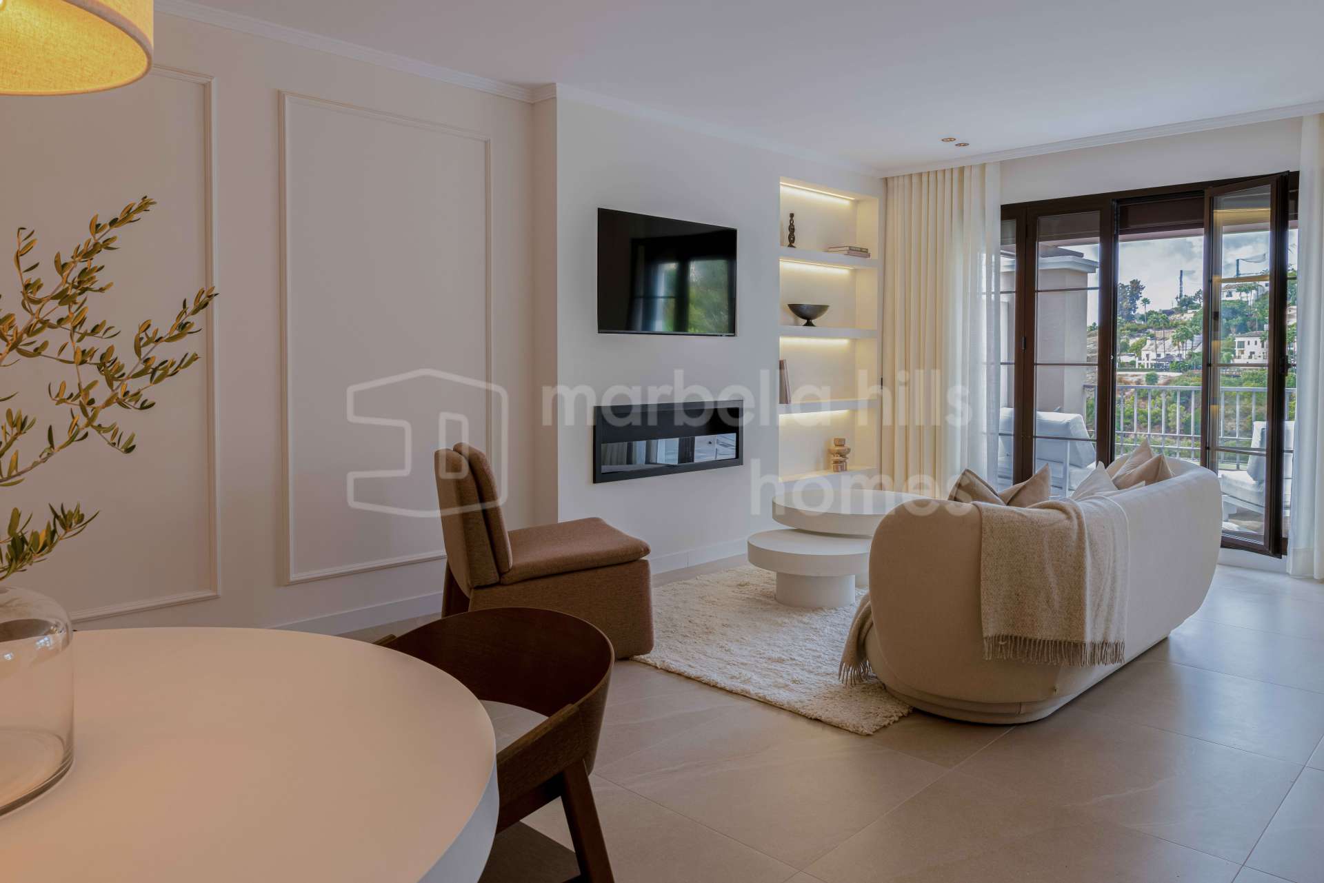 Entdecken Sie dieses beeindruckende Eck-Penthouse in der begehrten Wohnanlage La Torre im Los Arqueros Golf & Country Club, das vollständig renoviert wurde und durch elegantes, zeitgenössisches Design sowie hochwertige Handwerkskunst besticht. Jedes Detail dieser Immobilie vereint Stil, Komfort und Raffinesse und schafft ein Zuhause, das den modernen mediterranen Lebensstil perfekt verkörpert.