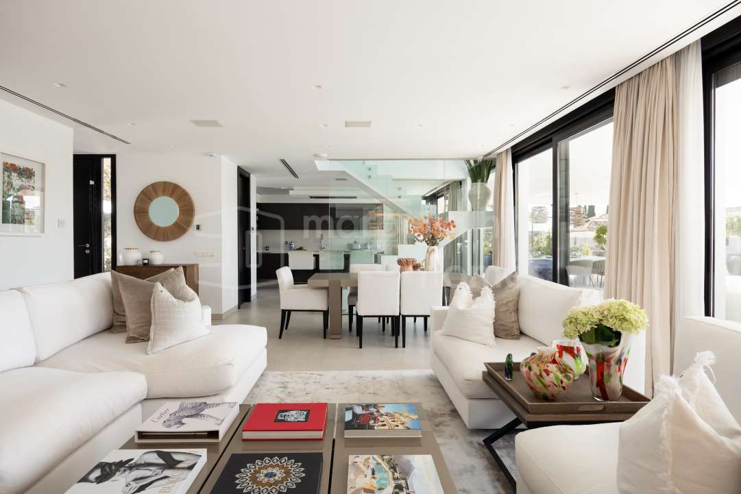 Ein eleganter zeitgenössischer Rückzugsort im prestigeträchtigen Golf Valley von Marbella, wo modernes Design, Panorama-Terrassen und der lebendige Lifestyle von Puerto Banús nur wenige Minuten entfernt sind.