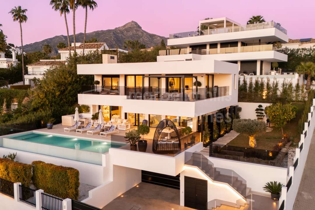 Diese außergewöhnliche Luxusvilla in Nueva Andalucía Marbella befindet sich in einer der begehrtesten Wohnlagen der Costa del Sol. Gelegen im exklusiven Viertel Nueva Andalucía, das international als das berühmte Golf Valley von Marbella bekannt ist, genießt die Immobilie eine privilegierte Lage umgeben von renommierten Golfplätzen und nur wenige Minuten vom ikonischen Yachthafen Puerto Banús sowie den Stränden von Marbella entfernt.