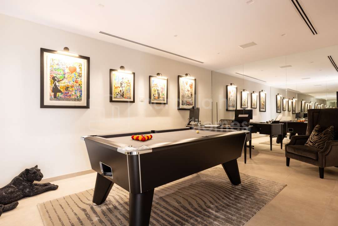 Das Untergeschoss der Villa ist dem Freizeit- und Wellnessbereich gewidmet und bietet ein privates Kino- und Entertainmentzimmer sowie ein vollständig ausgestattetes Fitnessstudio.