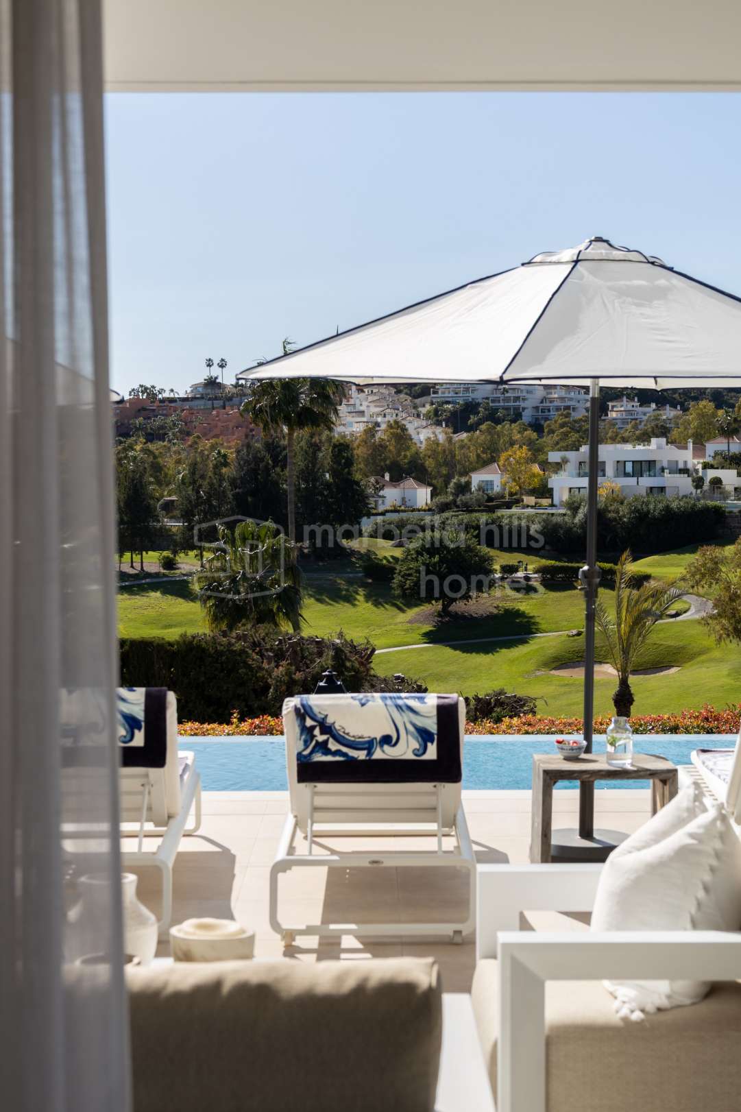 Verbringen Sie entspannte Nachmittage am Pool inmitten üppiger Gärten und genießen Sie elegante Abendessen auf der Dachterrasse, während sich der mediterrane Himmel über Marbella in goldene Farben verwandelt.