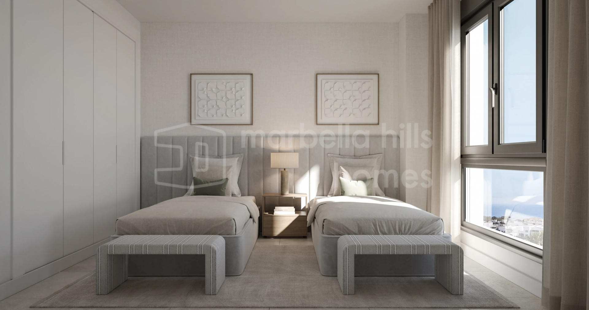 Die Anlage umfasst 50 moderne Apartments mit 2 und 3 Schlafzimmern, die darauf ausgelegt sind, maximale Helligkeit und Wohnkomfort zu bieten. Große Fensterfronten, offene Grundrisse und großzügige Terrassen sorgen für lichtdurchflutete Räume und einen freien Blick auf jeder Etage.
