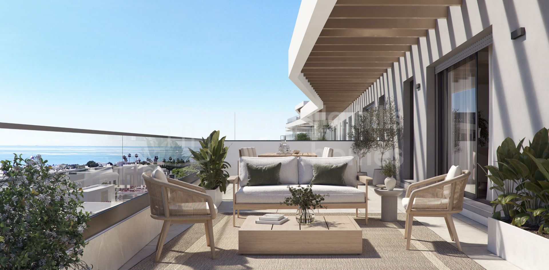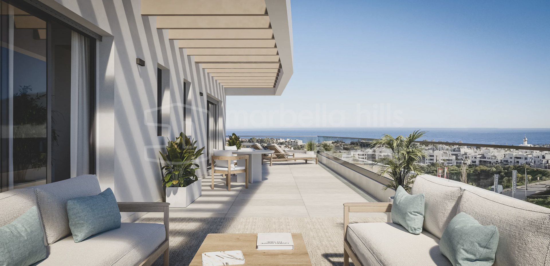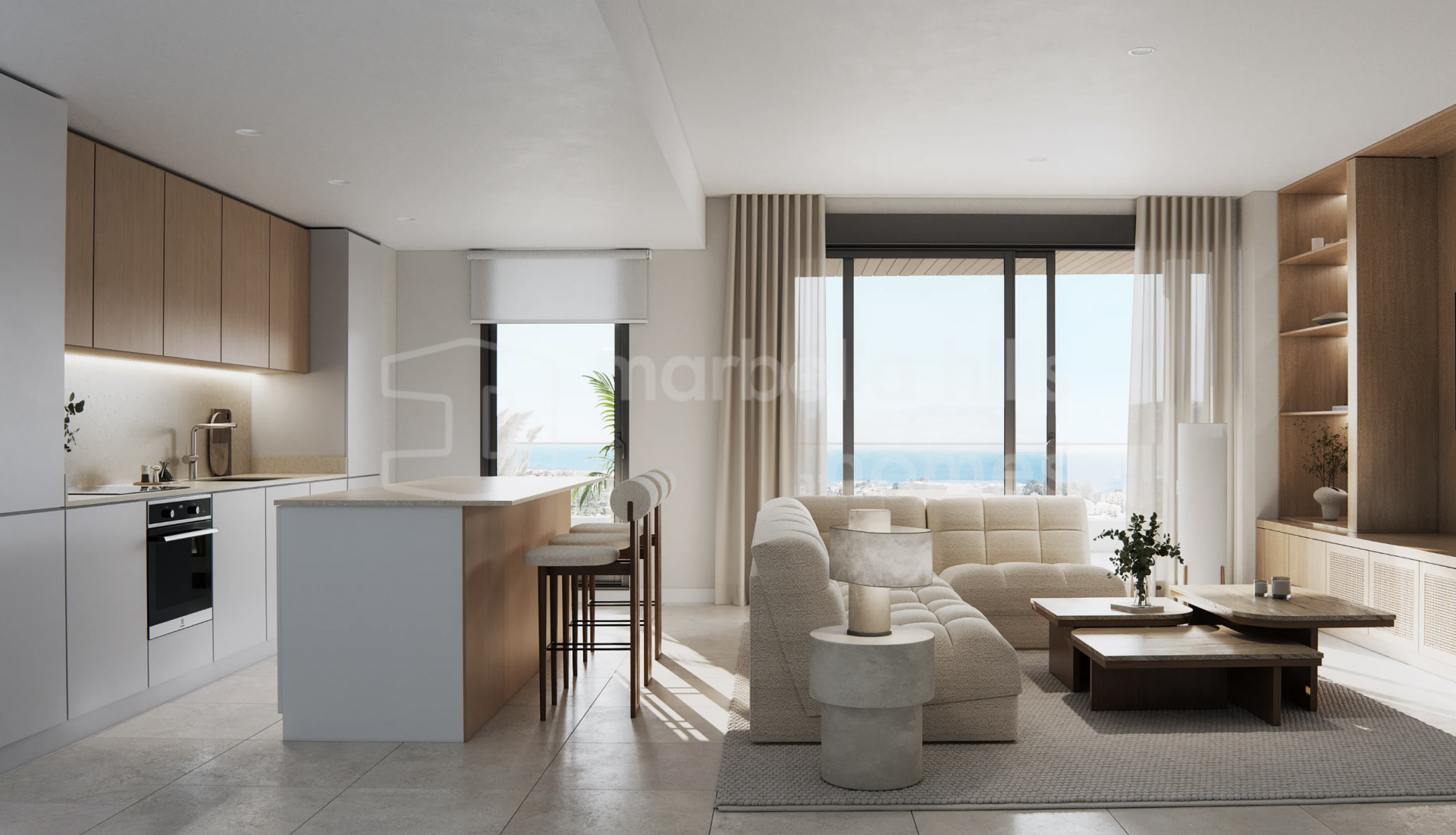 Die Innenräume sind hochwertig gestaltet und optimal auf eine harmonische Wohnatmosphäre abgestimmt. Jeder Wohnbereich verbindet Innen- und Außenräume auf natürliche Weise, was das mediterrane Lebensgefühl perfekt widerspiegelt.