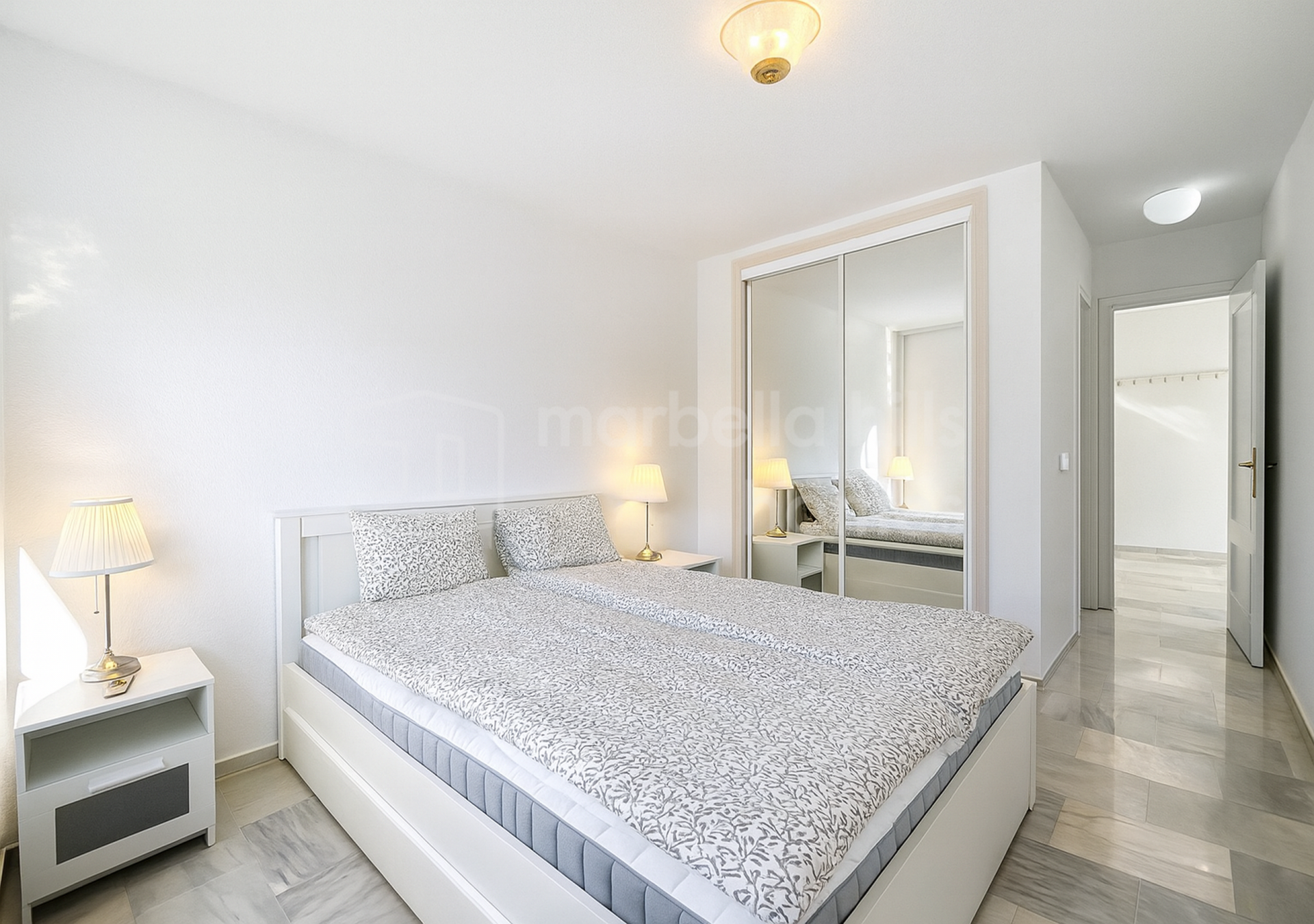 Die Lage ist verkehrsgünstig und gut angebunden: Der Flughafen Málaga ist etwa 25 Minuten entfernt, Fuengirola rund 10 Minuten, La Cala de Mijas etwa 12 Minuten und Marbella ungefähr 25 Minuten. Dank der renovierten Ausstattung, der privilegierten Golf-Frontlage und der Nähe zur Küste stellt dieses Apartment eine attraktive Option im etablierten Wohngebiet von Mijas Golf dar.