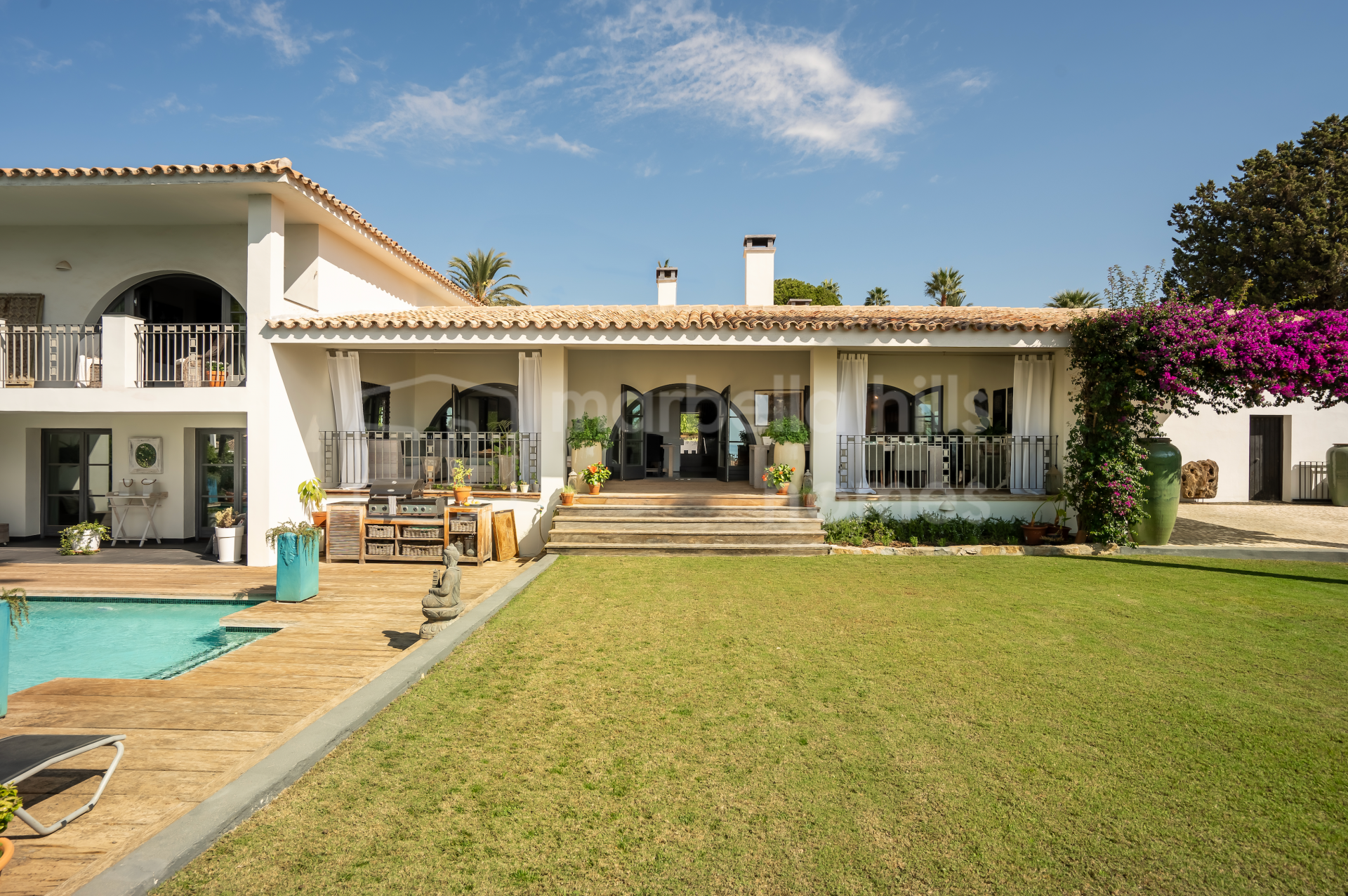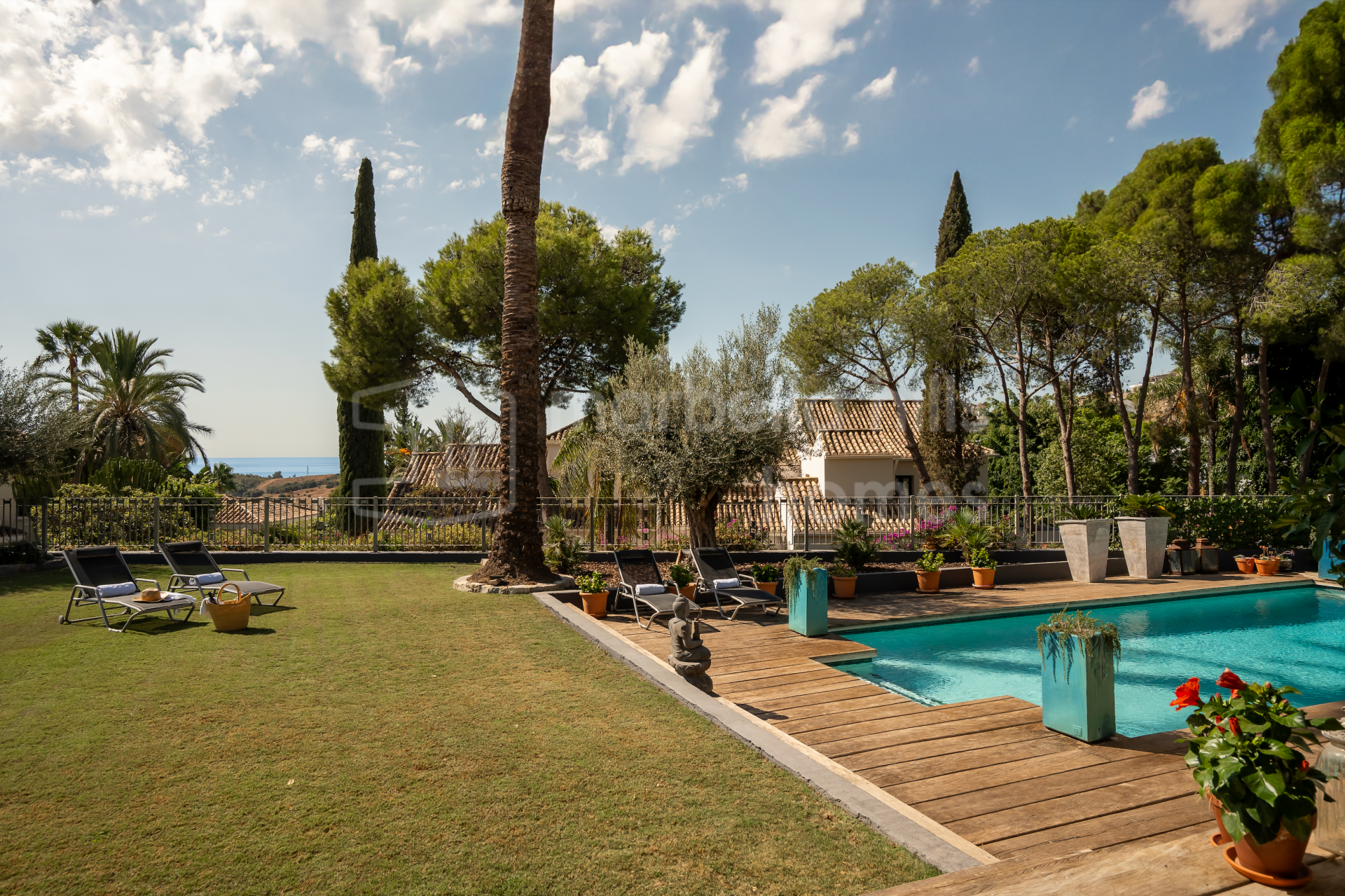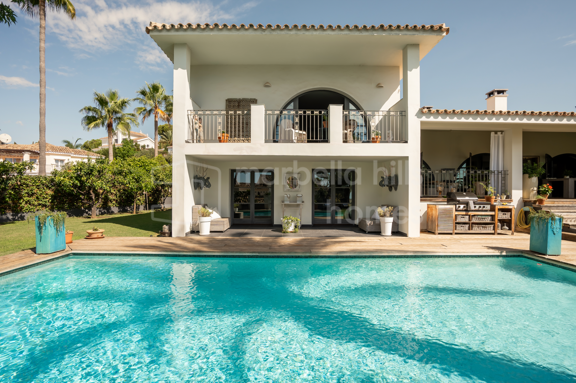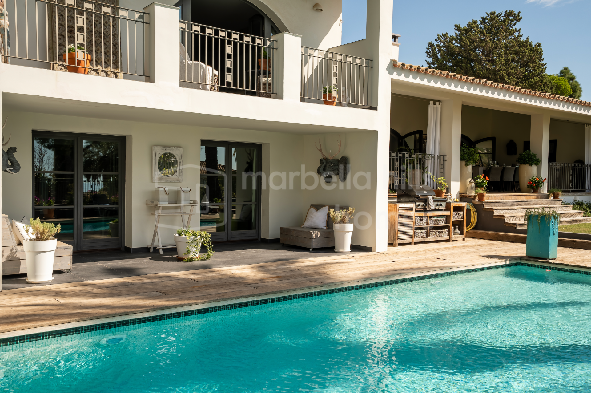 Das Anwesen steht auf einem 1.600 m² großen Grundstück und verfügt über eine bebaute Gesamtfläche von 595 m², davon 443 m² Wohnfläche und 152 m² Terrassen. Die Villa wurde 2006 renoviert und überzeugt durch hochwertige Materialien, eine durchdachte Raumaufteilung und eine sehr gepflegte Ausführung.