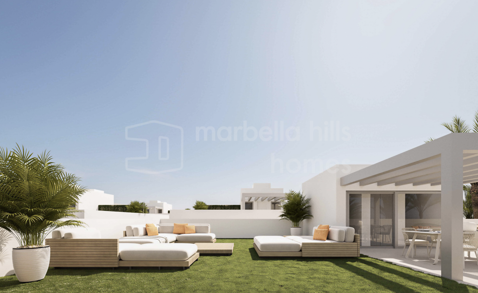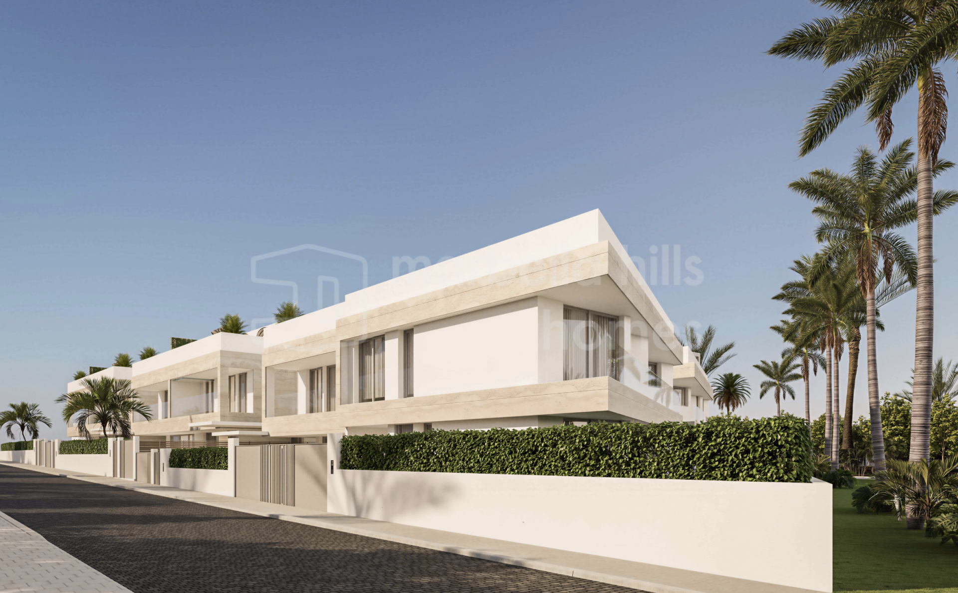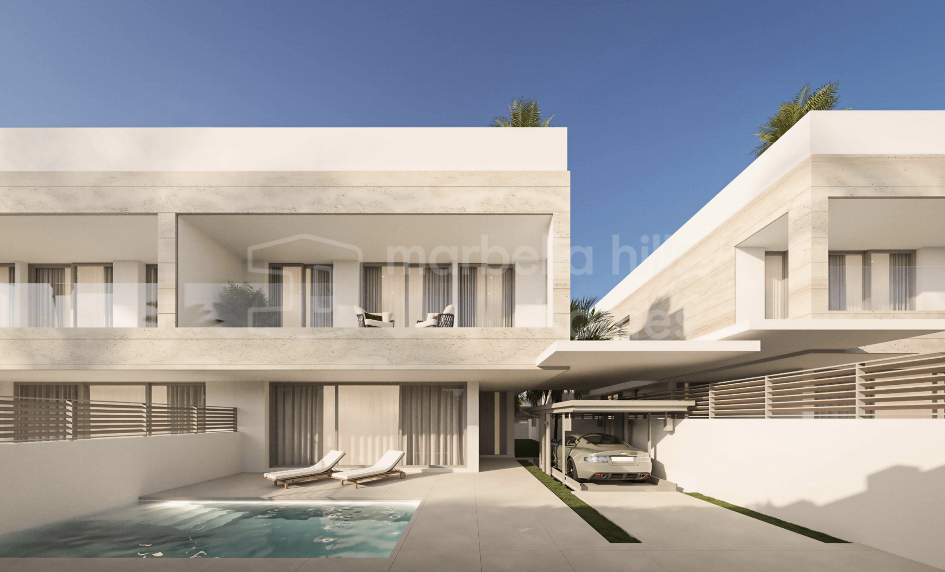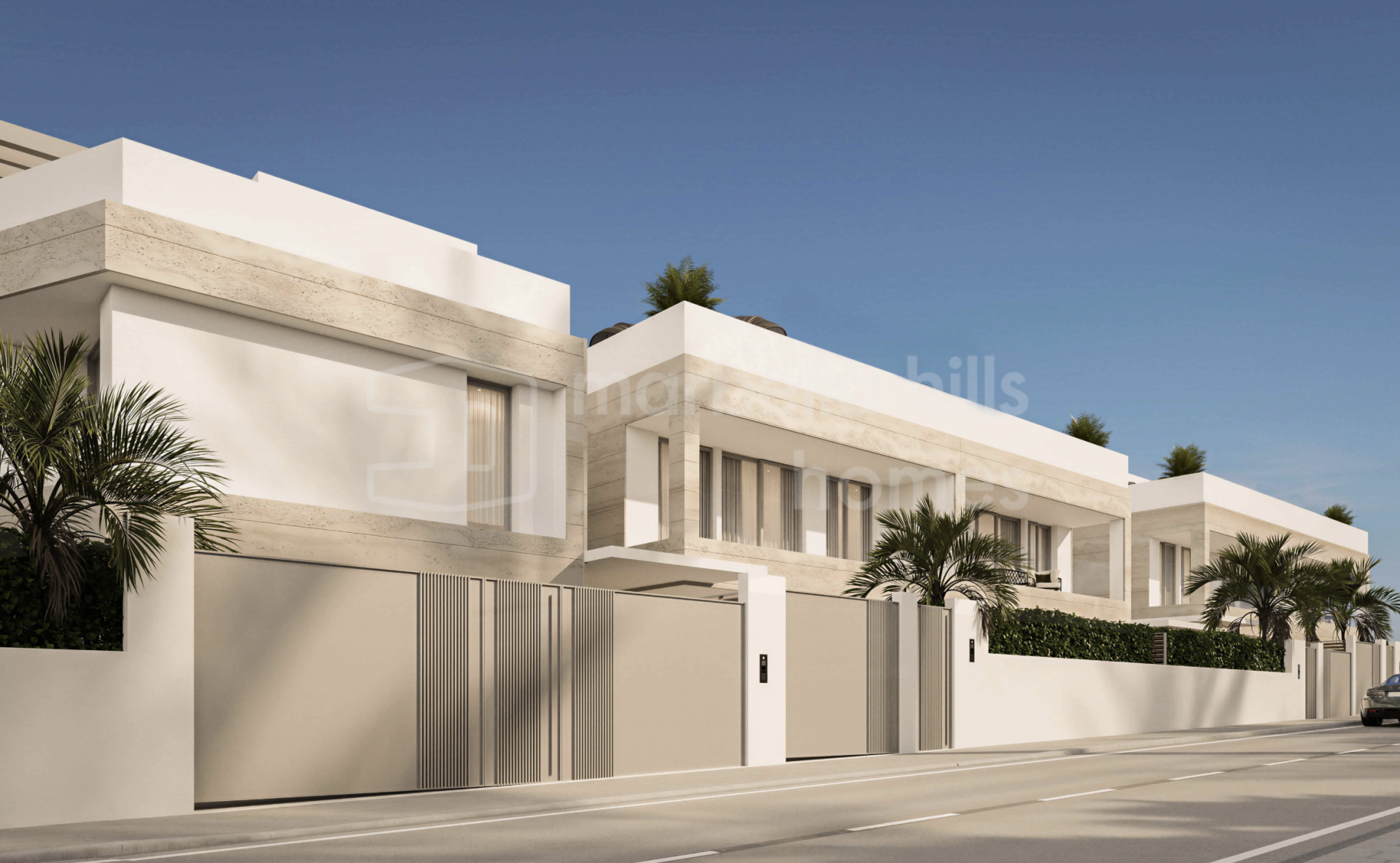 Der Außenbereich bildet einen zentralen Bestandteil des Wohnkonzepts und umfasst private Swimmingpools, großzügige Terrassen sowie Solariums, die das ganze Jahr über zum Entspannen und Genießen des Klimas der Costa del Sol einladen. Tiefgaragenstellplätze für zwei Fahrzeuge bieten zusätzlichen Komfort und Sicherheit, während die Grundstücke ein hohes Maß an Privatsphäre gewährleisten.