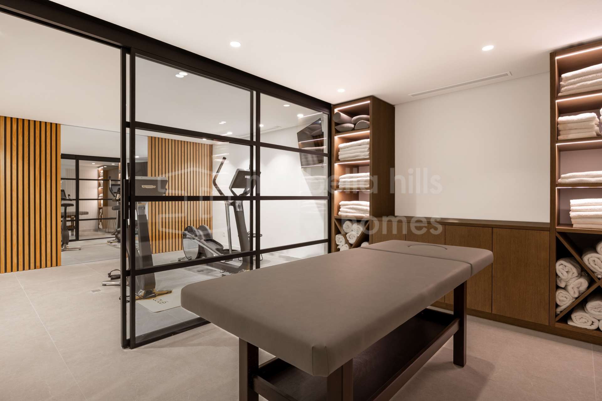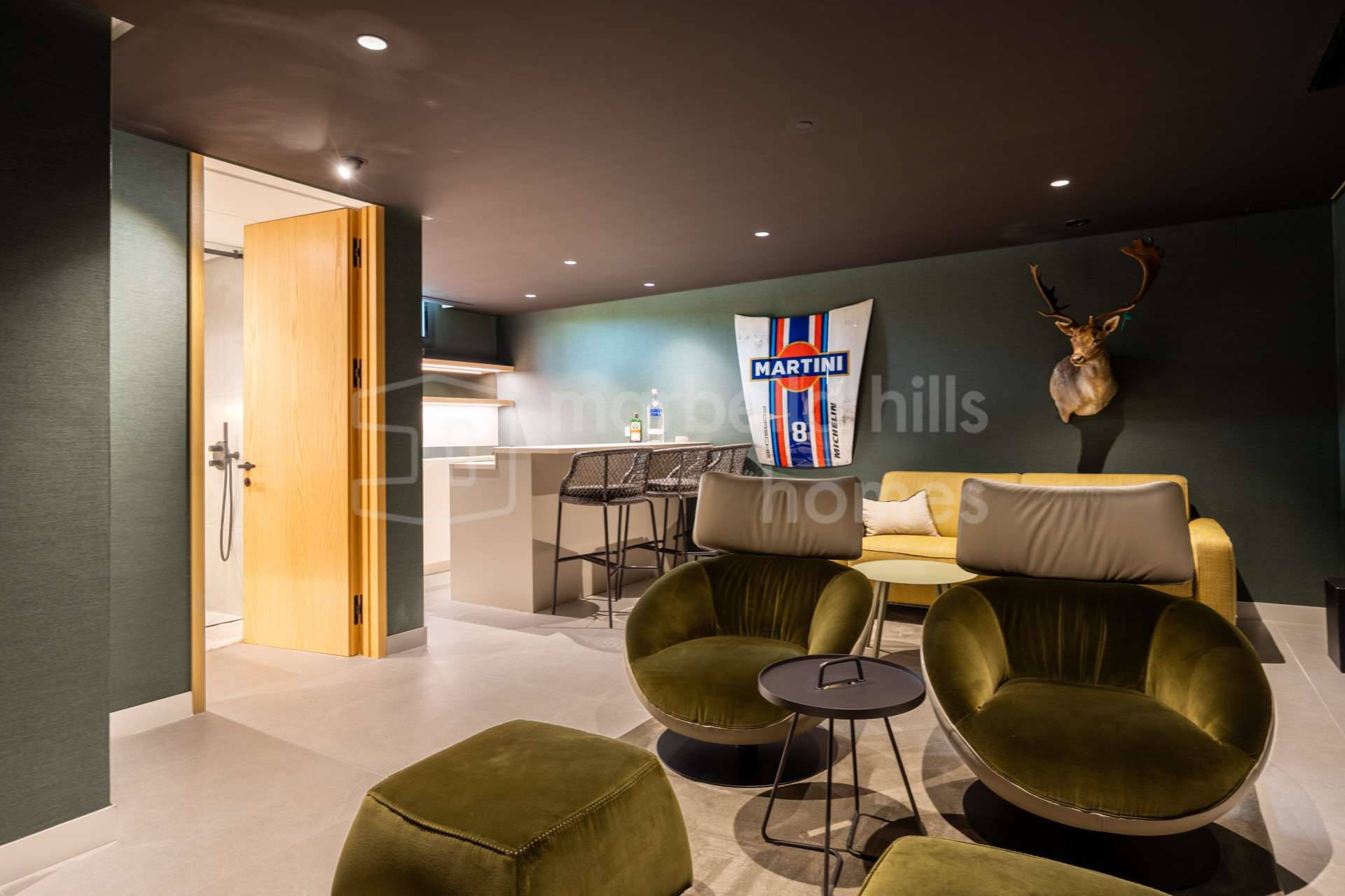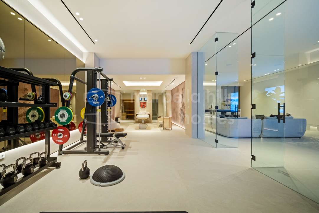 Als privater Wellness- und Entertainmentbereich konzipiert, umfasst das Untergeschoss ein vollständig ausgestattetes Fitnessstudio, einen maßgeschneiderten Massageraum sowie einen vielseitig nutzbaren Bar- und Freizeitbereich, der sich perfekt für Entspannung und gesellige Zusammenkünfte eignet. Maßgefertigte Details und hochwertige Ausstattungen ziehen sich durch das gesamte Haus und spiegeln einen klaren Fokus auf funktionalen Luxus wider.