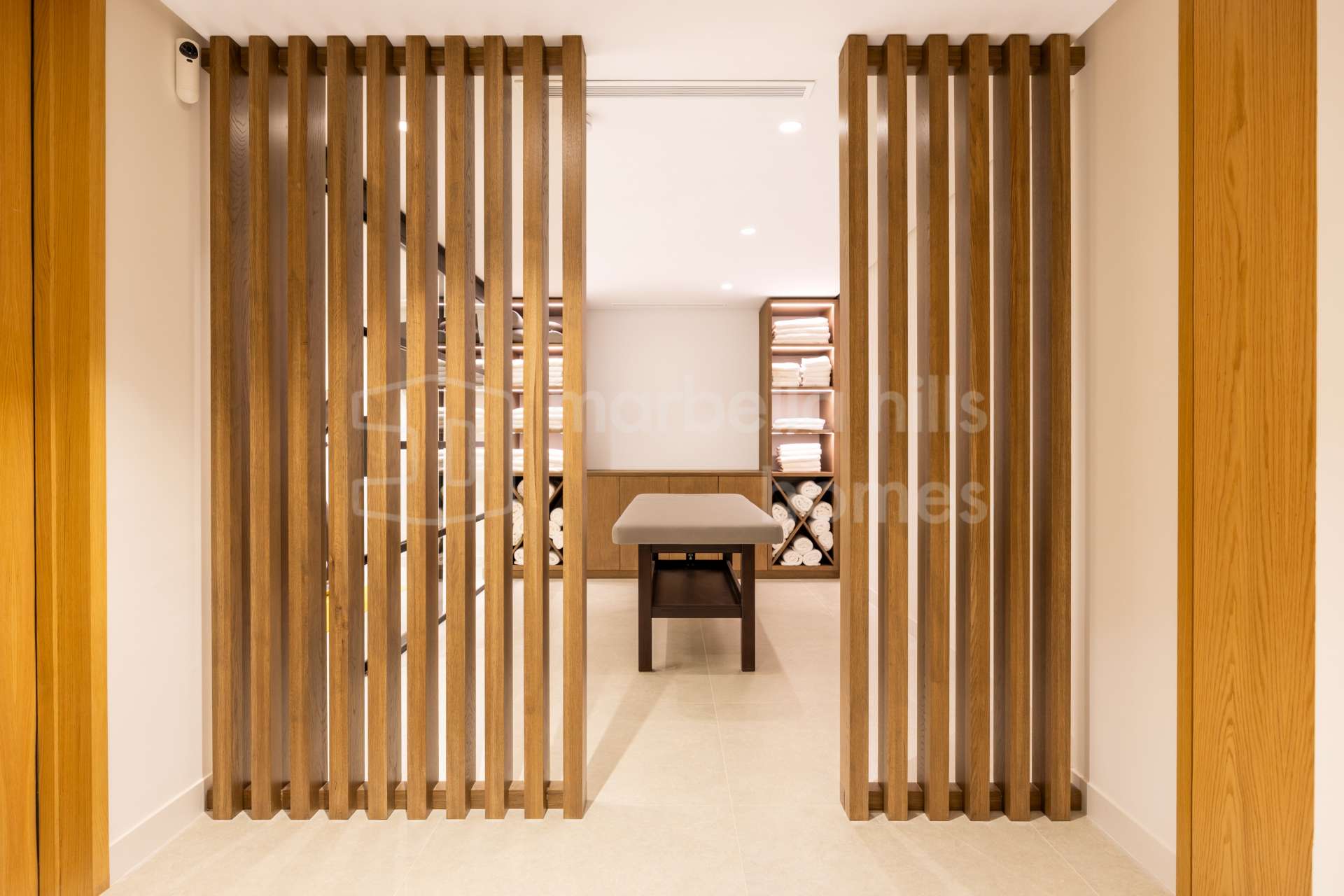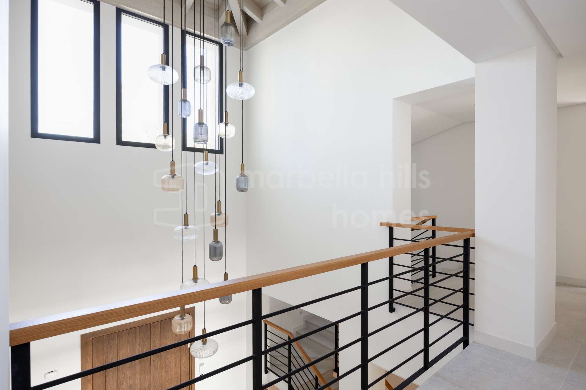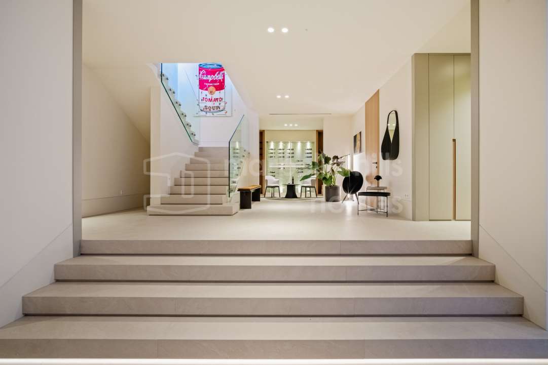 Zur weiteren Ausstattung gehören eine Designerküche von Mobalco mit Gaggenau-Geräten, hochwertige Tischlerarbeiten sowie Cortizo-Aluminiumfenster, elektrische Jalousien und Insektenschutz in der gesamten Villa, italienische Natuzzi-Sofas, Dedon-Gartenmöbel, LG-Fernseher in allen Räumen, ein Wasserenthärtungssystem sowie eine Verisure-Alarmanlage. Zudem verfügt die Immobilie über eine integrierte Garage für zwei Fahrzeuge, zusätzliche Stellplätze und eine Ladestation für Elektroautos.