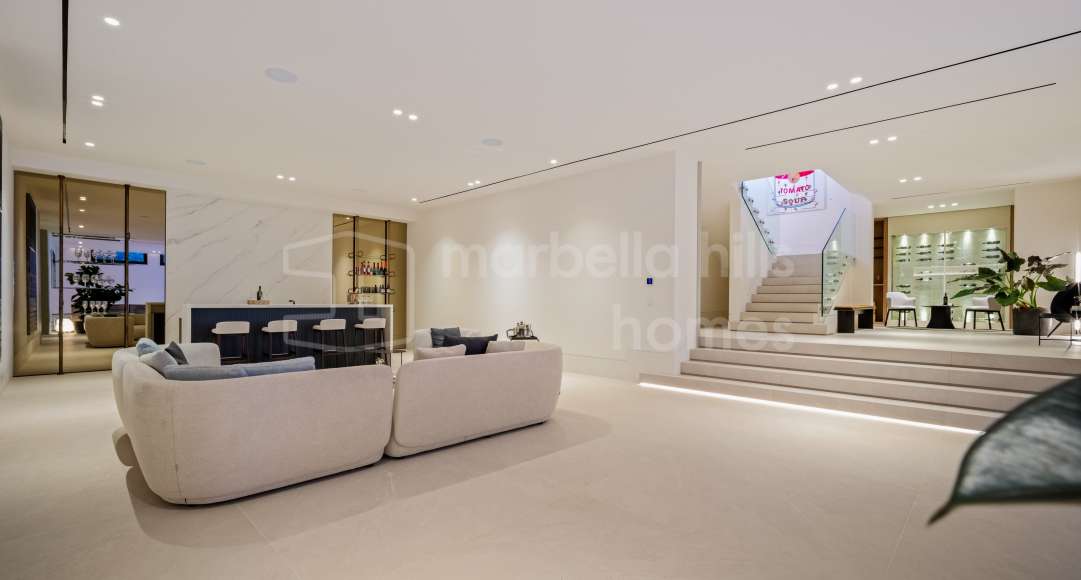 In der renommierten, rund um die Uhr gesicherten Wohnanlage Los Flamingos in Benahavís gelegen, nur wenige Minuten vom bekannten Anantara Villa Padierna Palace entfernt, verkörpert diese außergewöhnliche, nach Süden ausgerichtete Villa den Inbegriff zeitgenössischen mediterranen Luxus. Die Immobilie wurde kürzlich nach einer umfassenden High-End-Renovierung fertiggestellt und vereint auf elegante Weise traditionelle andalusische Architektur mit modernster Technik und erstklassiger Bauqualität.