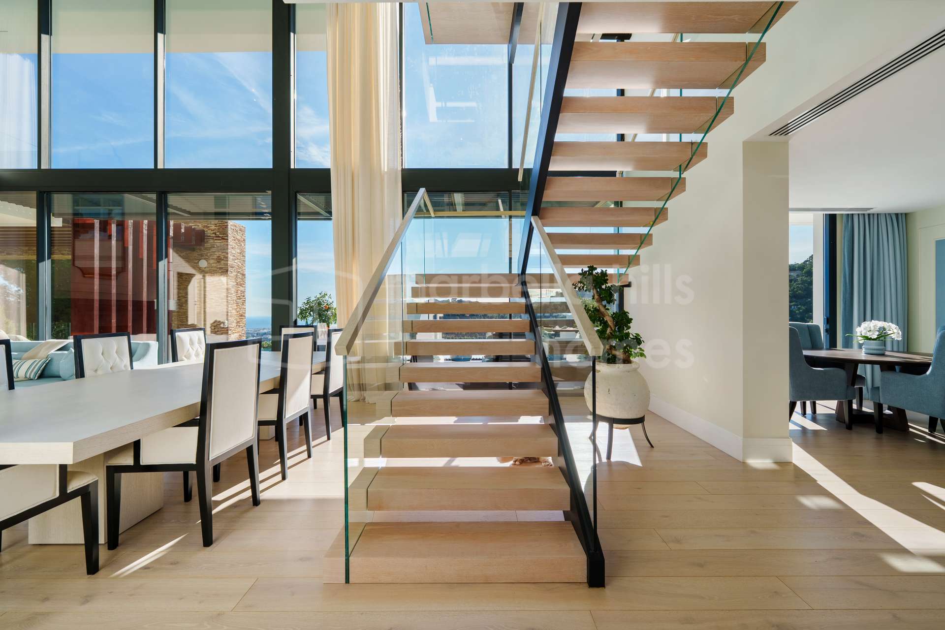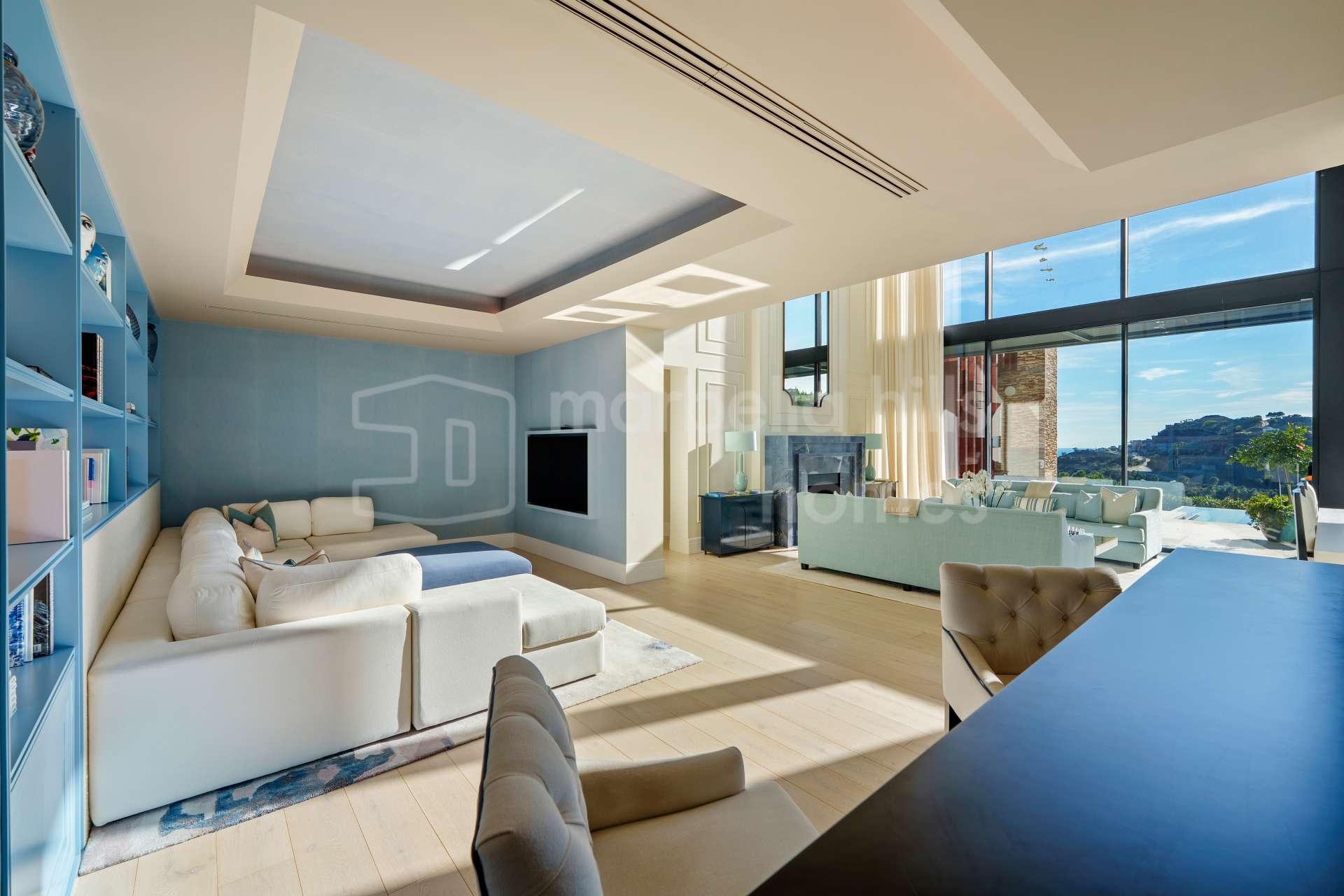 Mit 598 m² bebauter Fläche und 453 m² Terrassen wurde diese moderne Villa so konzipiert, dass sie Licht, Weite und Privatsphäre optimal vereint. Bodentiefe Fenster, doppelte Raumhöhen und großzügige, offen gestaltete Wohnbereiche schaffen eine helle, elegante Atmosphäre und ermöglichen einen nahtlosen Übergang zwischen Innen- und Außenbereich.
