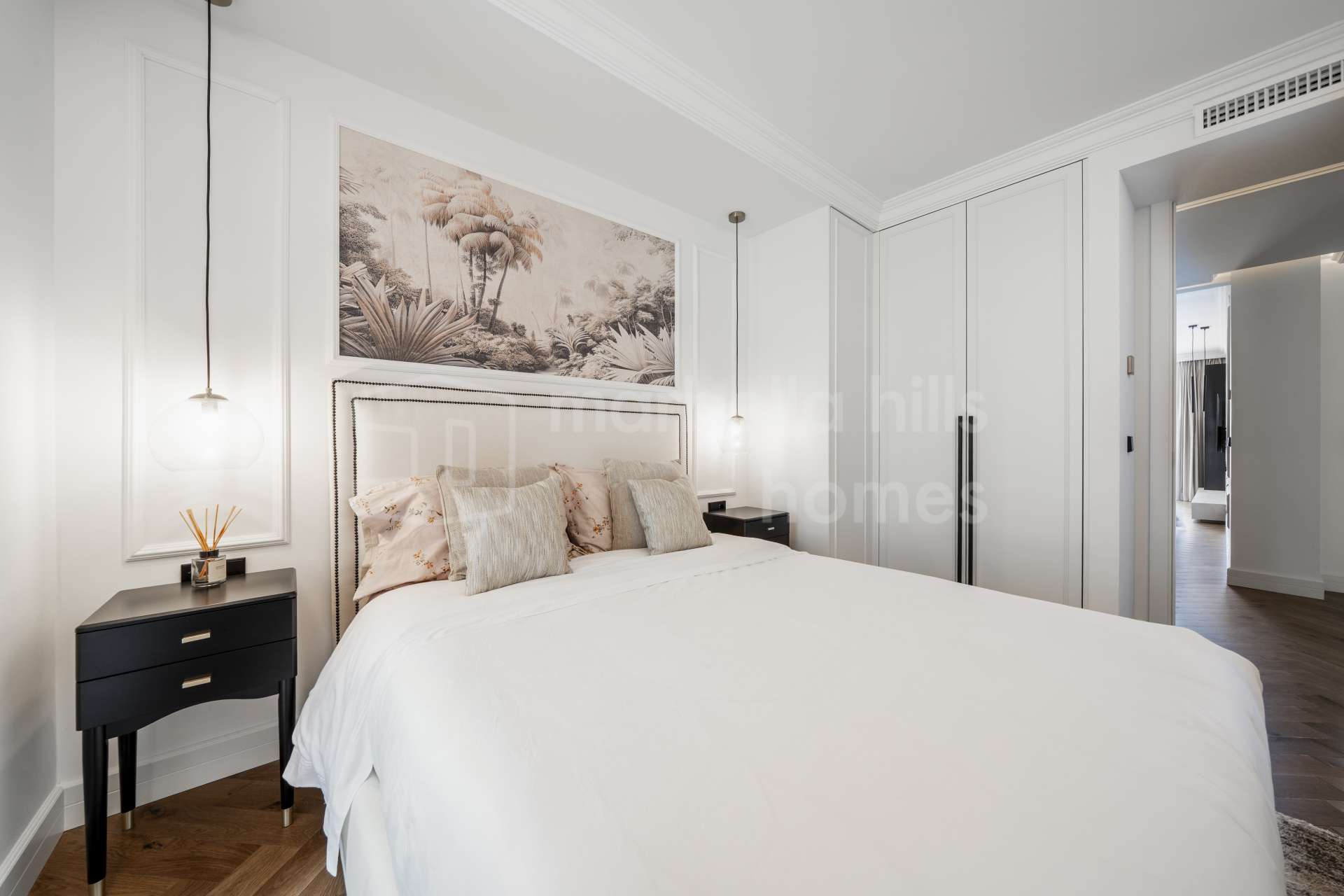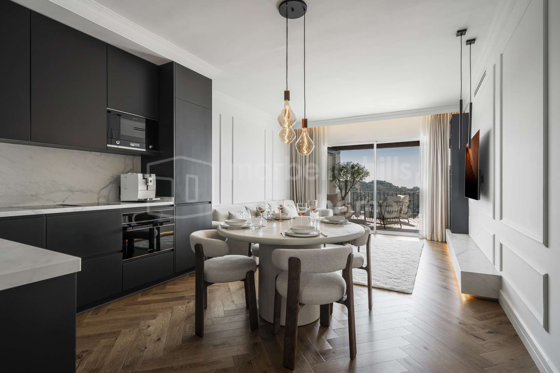 Durchdachte Designmerkmale und edle Oberflächen schaffen eine stimmige, elegante Atmosphäre in der gesamten Wohnung. Zur Ausstattung gehören Einbauschränke, Holzböden, ein Hauswirtschaftsraum sowie eine großzügige private Terrasse mit freiem Panoramablick.