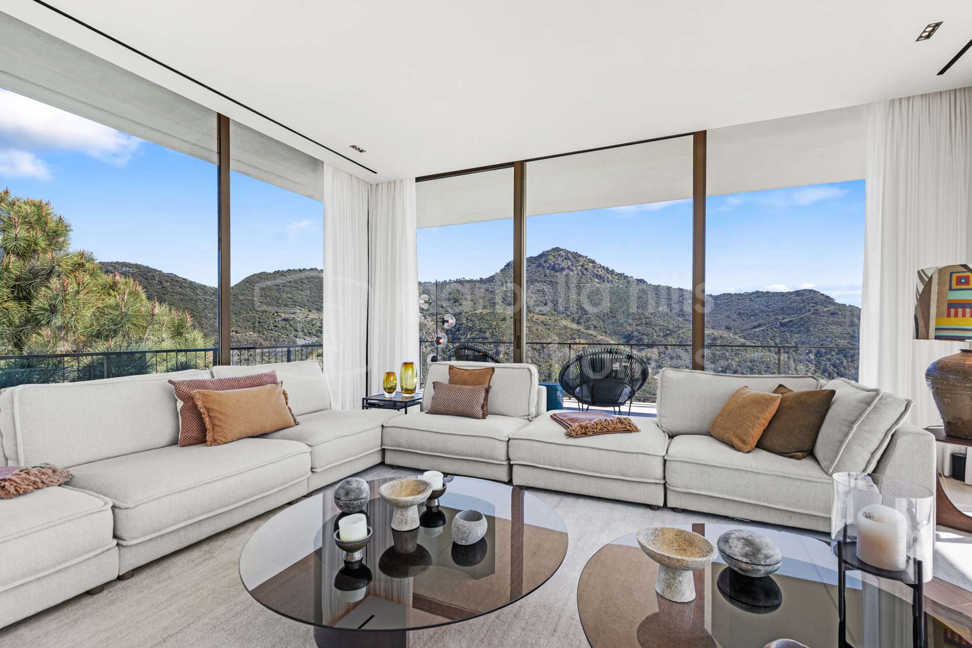 Küche komplett ausgestattet, Haustiere erlaubt, Offener Kamin, Internet - Glasfaserkabel, Sonnenkollektoren, Gästezimmer, Abstellraum, Fitness, Alarm, Doppelverglasung, Esszimmer, Hanglage, 24Std Sicherheitsdienst, Gästetoilette, Private Terrasse, Küche ausgestattet, Wohnzimmer, Meerblick, Landschaftlicher Ausblick, Bergsicht, Fußbodenheizung im gesamten Objekt, Hausautomation, Internet - Wi-Fi, Überdachte Terrasse, Einbauschränke, Geschlossene Wohnanlage, Klimaanlage, Blick auf Garten, Panoramablick , Nähe Golfplatz, Offene Terrasse, Offene Küche, Möbel nach Wahl, Hervorragender Zustand.