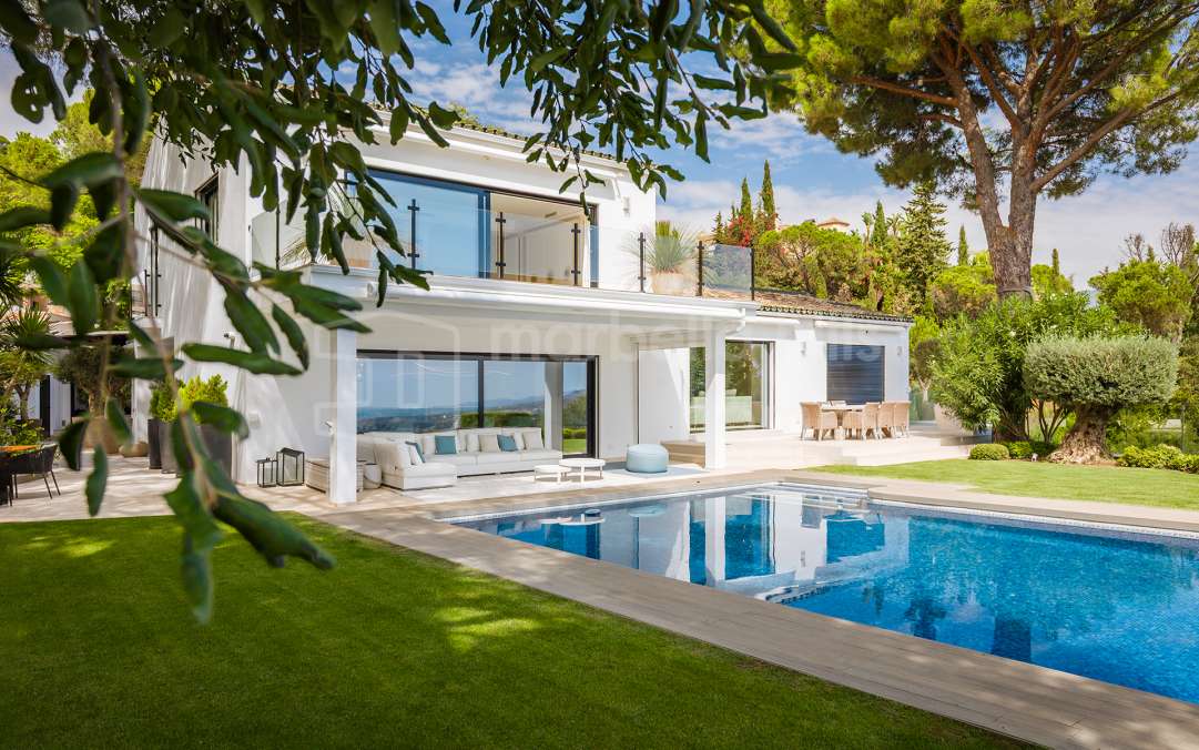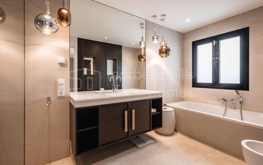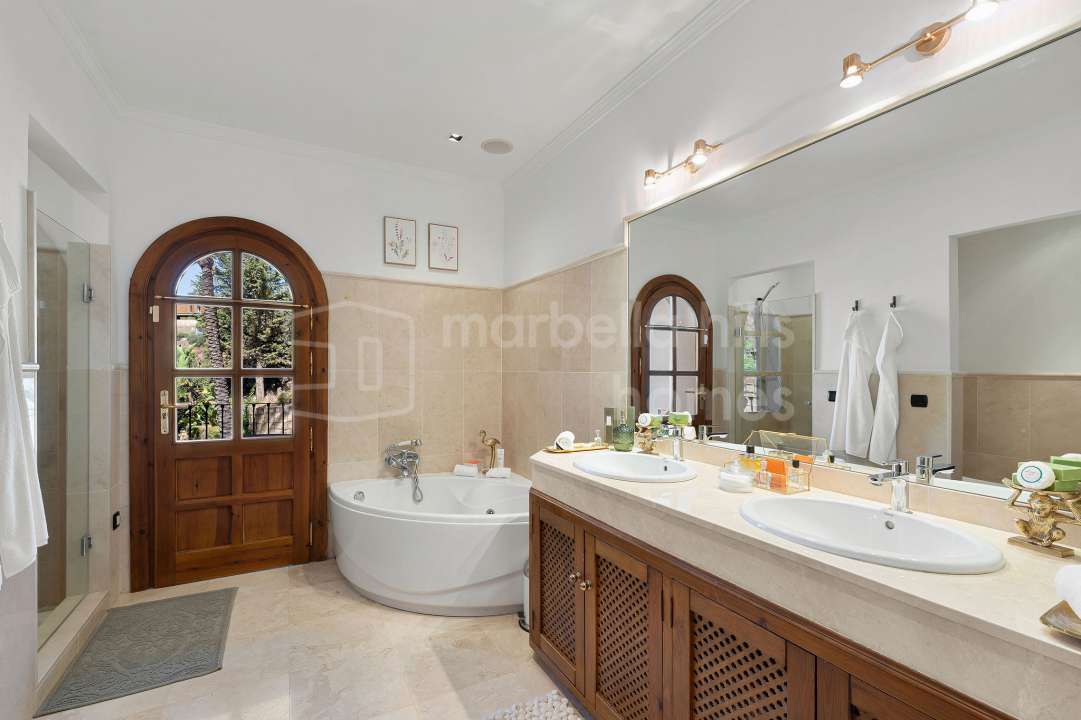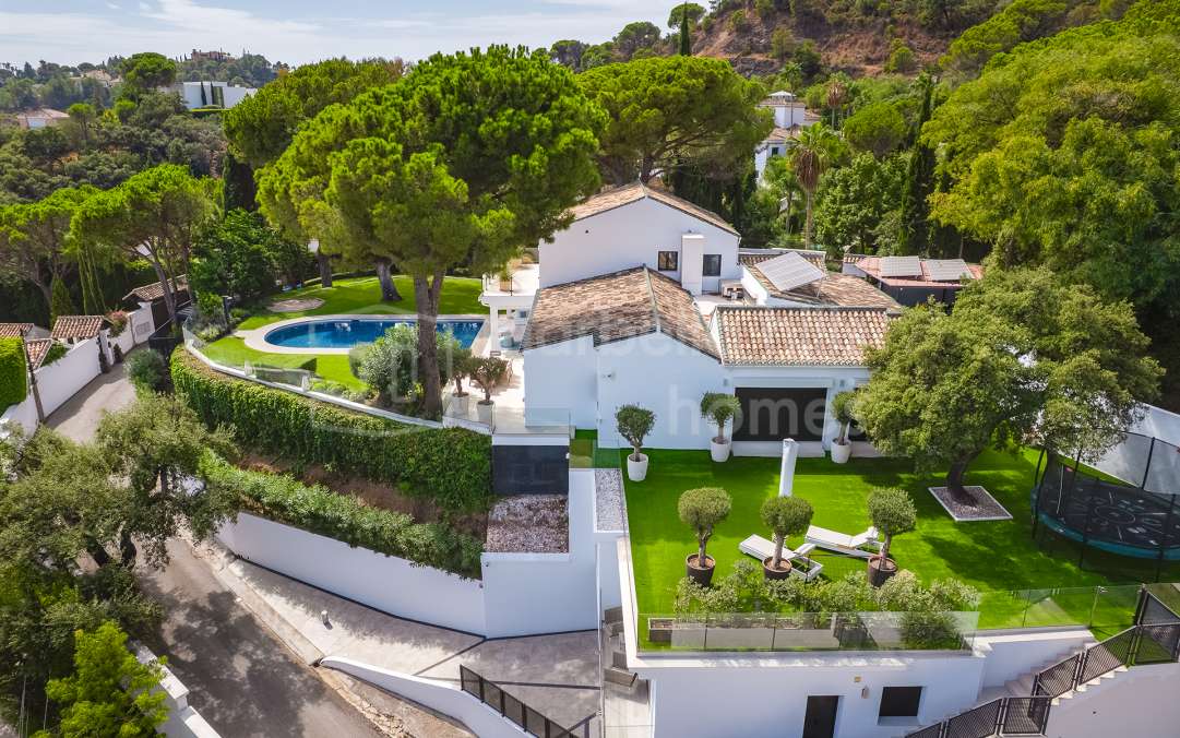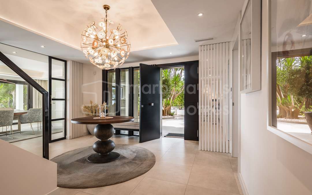 Im begehrten Sierra Blanca, kann Ihnen Marbella Hills Homes dieses atemberaubende Anwesen anbieten, eine der besten Liegenschaften nicht nur in Sierra Blanca, sondern von der ganze Küste ist. Wunderschön symmetrisch und zeitlos elegant strahlt die Villa vom Mittelpunkt der Lounge aus und schafft es, imposant zu sein und gleichzeitig ein entspanntes Gefühl von Zuhause zu bewahren.
