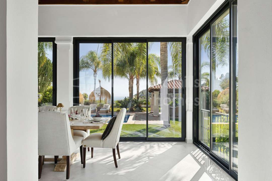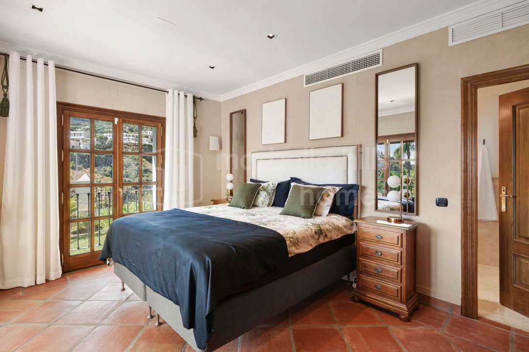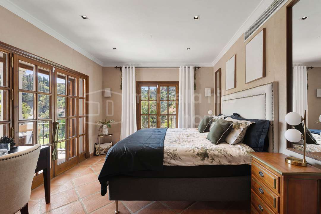Diese nach Süden ausgerichtete Villa mit sieben Schlafzimmern beeindruckt mit doppelter Deckenhöhe und einer herrlichen Aussicht auf die umliegenden Berge, die eine atemberaubende Kulisse für das Anwesen bieten, mit Blick auf die Küste bis nach Gibraltar und Afrika. Es gibt einen Außen- und einen Innenpool, so dass Sie bei jeder Temperatur ein Bad nehmen können, sowie die Möglichkeit, ein privates Kino und ein Fitnessstudio hinzuzufügen.