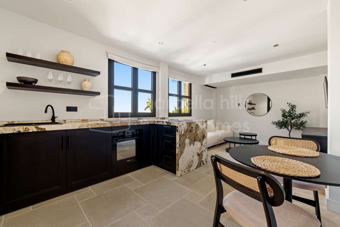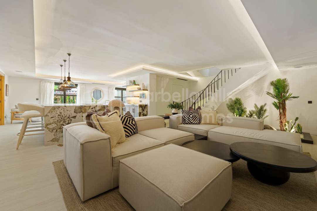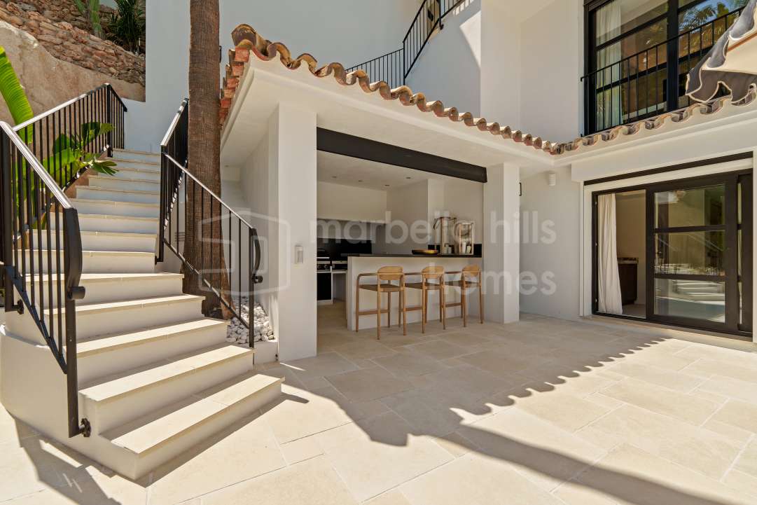 A great, recently renovated villa with a perfect fusion between contemporary design and Andalusian style. Located in the sought after residential area of La Cerquilla. South facing with views to La Concha. Private and quiet. Nearby all amenities and the golf clubs of Las Brisas and Los Naranjos.