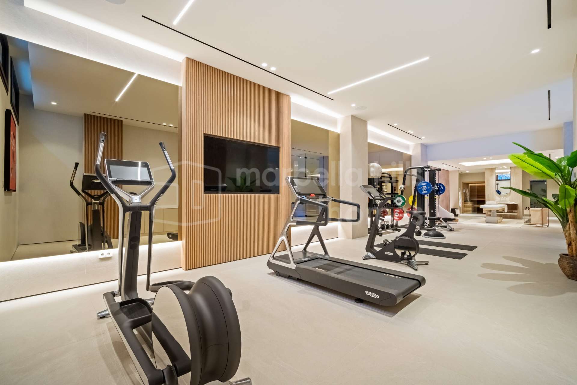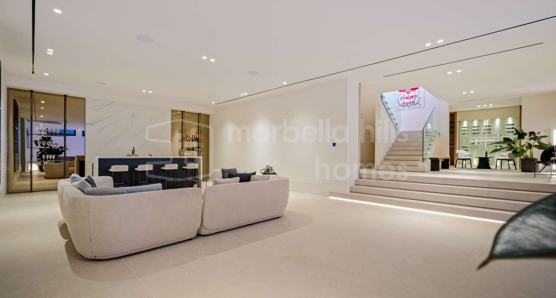 With options including five or six bedrooms, intelligently distributed across three levels, spanning approximately 850 square meters of impressive living spaces. The main level showcases an open-plan living area, seamlessly flowing onto expansive terraces and a pool, inviting residents to embrace the outdoor lifestyle that Marbella offers. Moving to the upper level reveals generous master suites and family quarters, while the basement boasts a range of superbly designed amenities, blending aesthetics with practicality to create an extraordinary living experience.