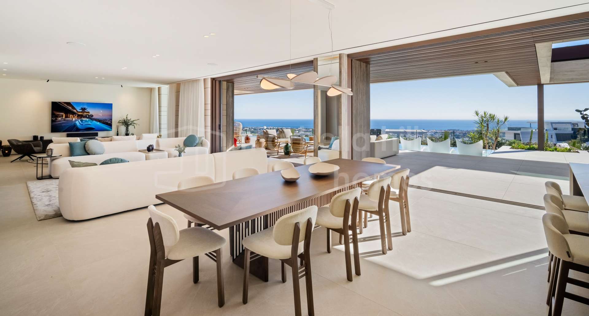 These exceptional homes, featuring striking architecture and meticulously designed interiors, will be nestled within a secure gated complex, positioned at the highest point of the urbanisation. Surrounded by tranquility and embraced by nature, the villas offer unparalleled panoramic views of the bay of Marbella and the Mediterranean Sea, while being conveniently located just a ten-minute drive from Puerto Banus.