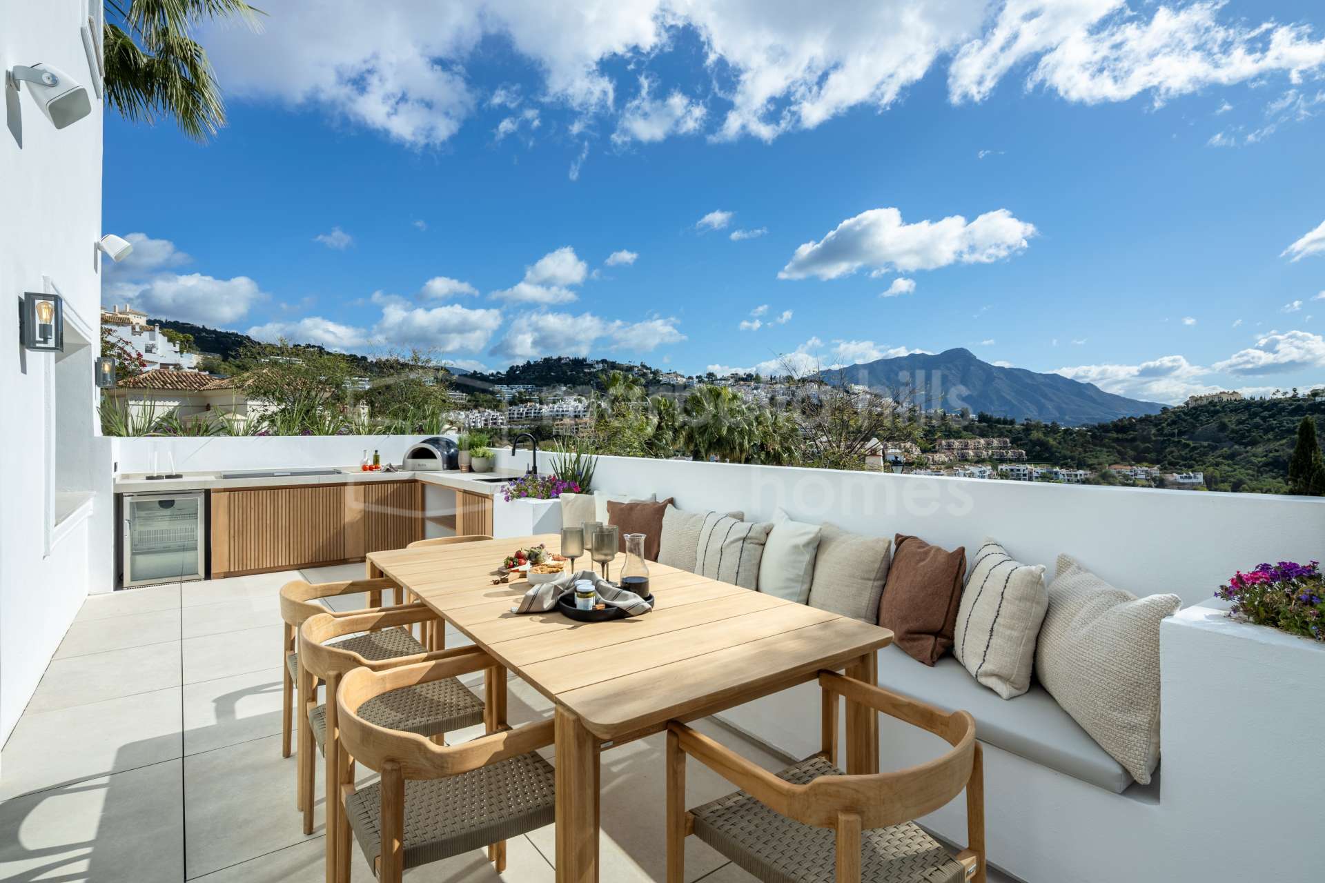 Step outside to enjoy landscaped gardens with multiple relaxation and entertainment areas: a heated 50 m² private pool, an al fresco dining area with barbecue, sunbathing space, and even a private outdoor gym. Whether you’re hosting or simply unwinding, the outdoor spaces invite you to embrace the Costa del Sol lifestyle all year round.