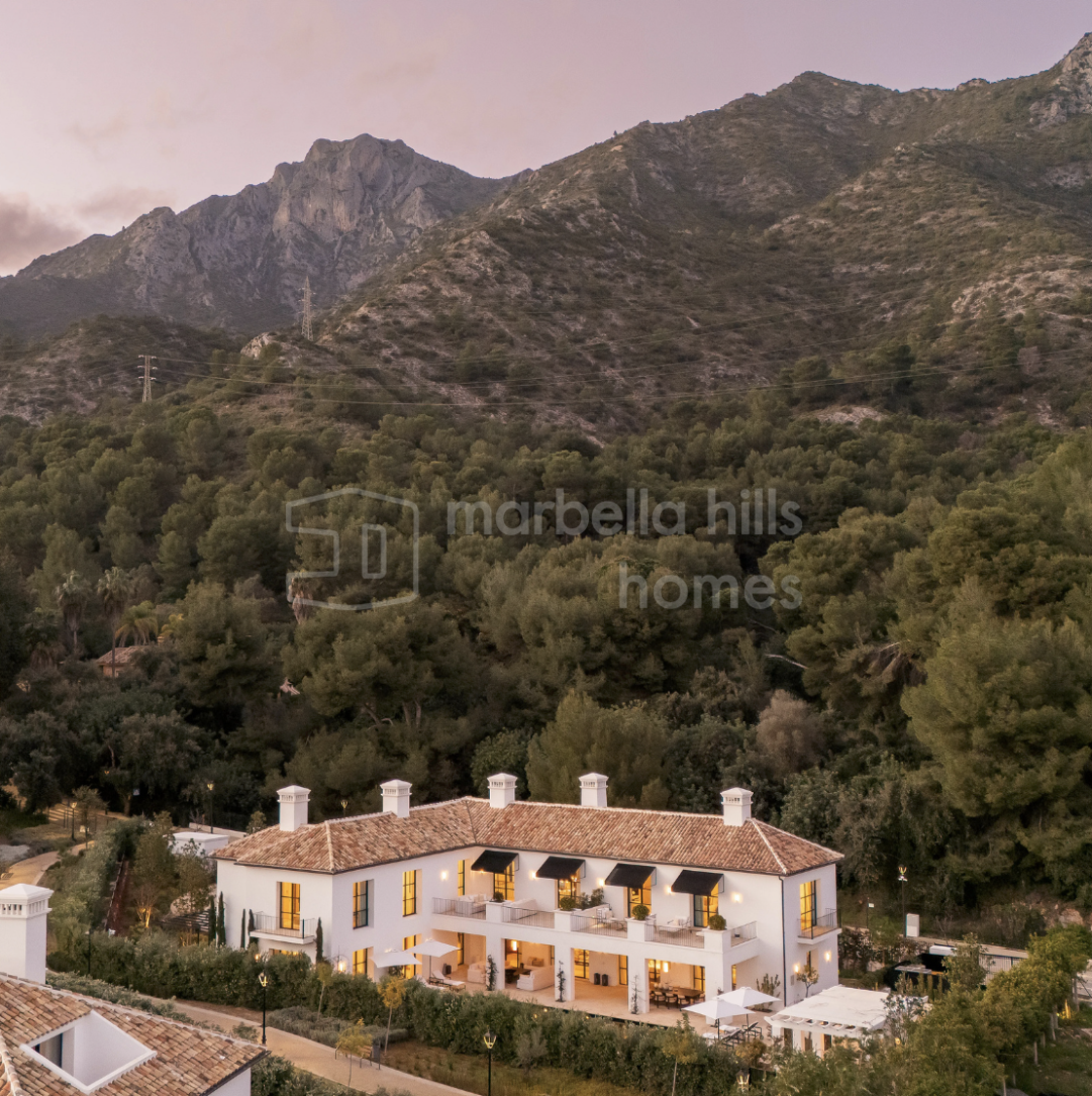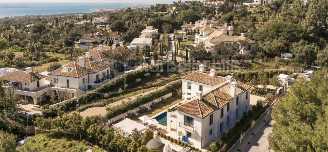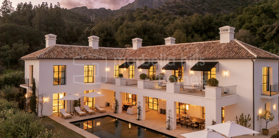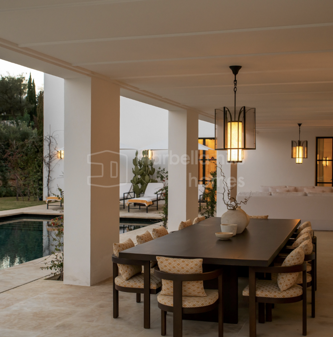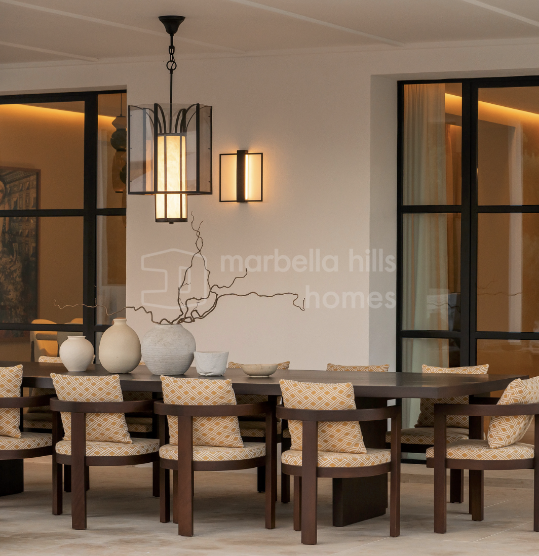 Built on a flat 2,370 m² plot, the property boasts 712 m² of stylish interior living space and 628 m² of terraces, all surrounded by beautifully landscaped gardens and panoramic views of La Concha mountain. The design, by leading local teams Sandon, GC Studio, and AMES Arquitectos, balances sharp contemporary lines with warm natural materials and timeless Mediterranean charm.