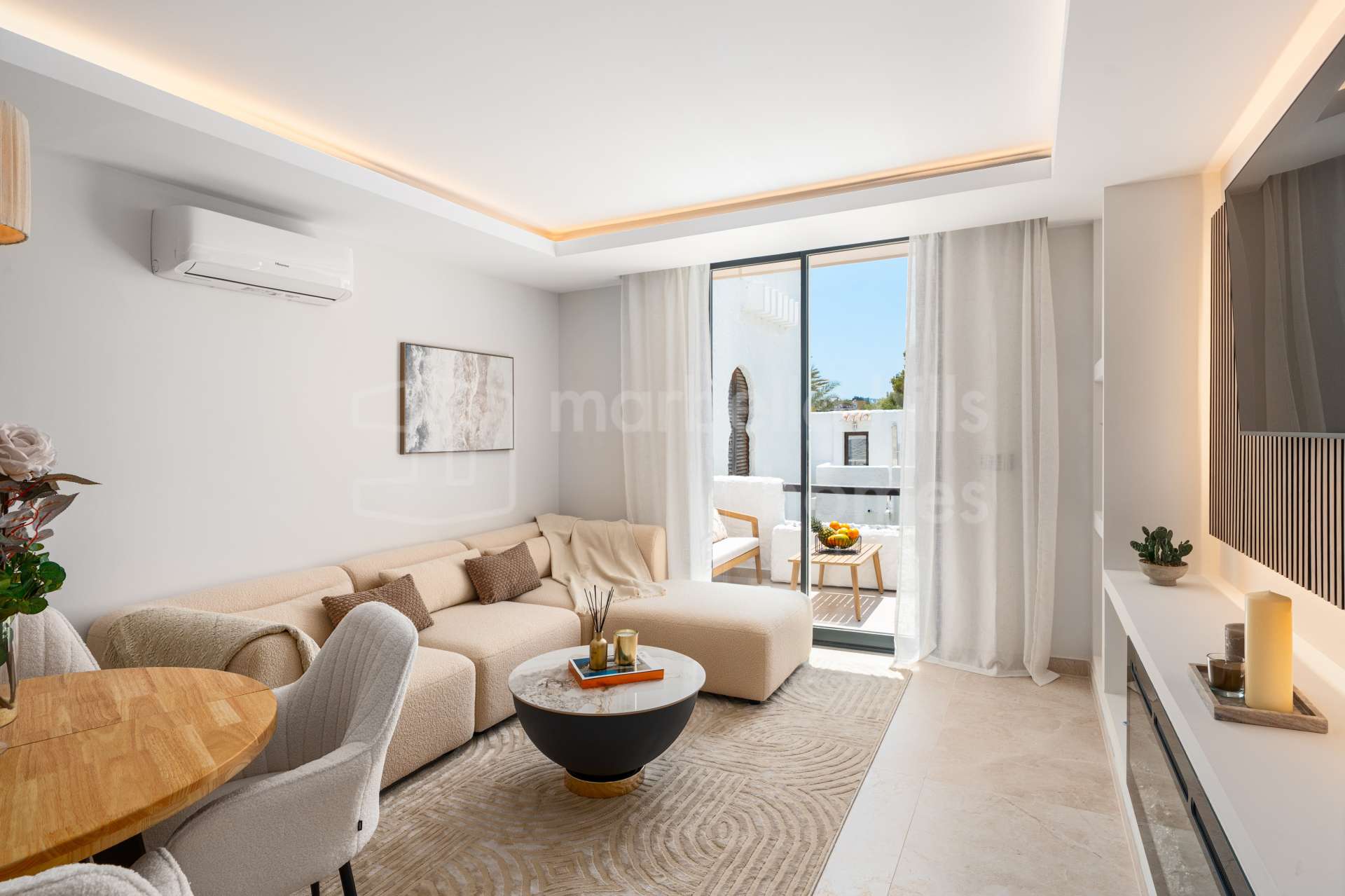 - 3 bedrooms, 2 bathrooms – 172 m² built, 68 m² terraces – Duplex layout with modern renovation (2025) – Fully equipped Siemens kitchen – Communal pool and landscaped gardens – Walking distance to Puerto Banús and beaches – Close to golf courses, international schools, and amenities – IBI: €714/year | Community fees: €236/month | Garbage: €92/year
