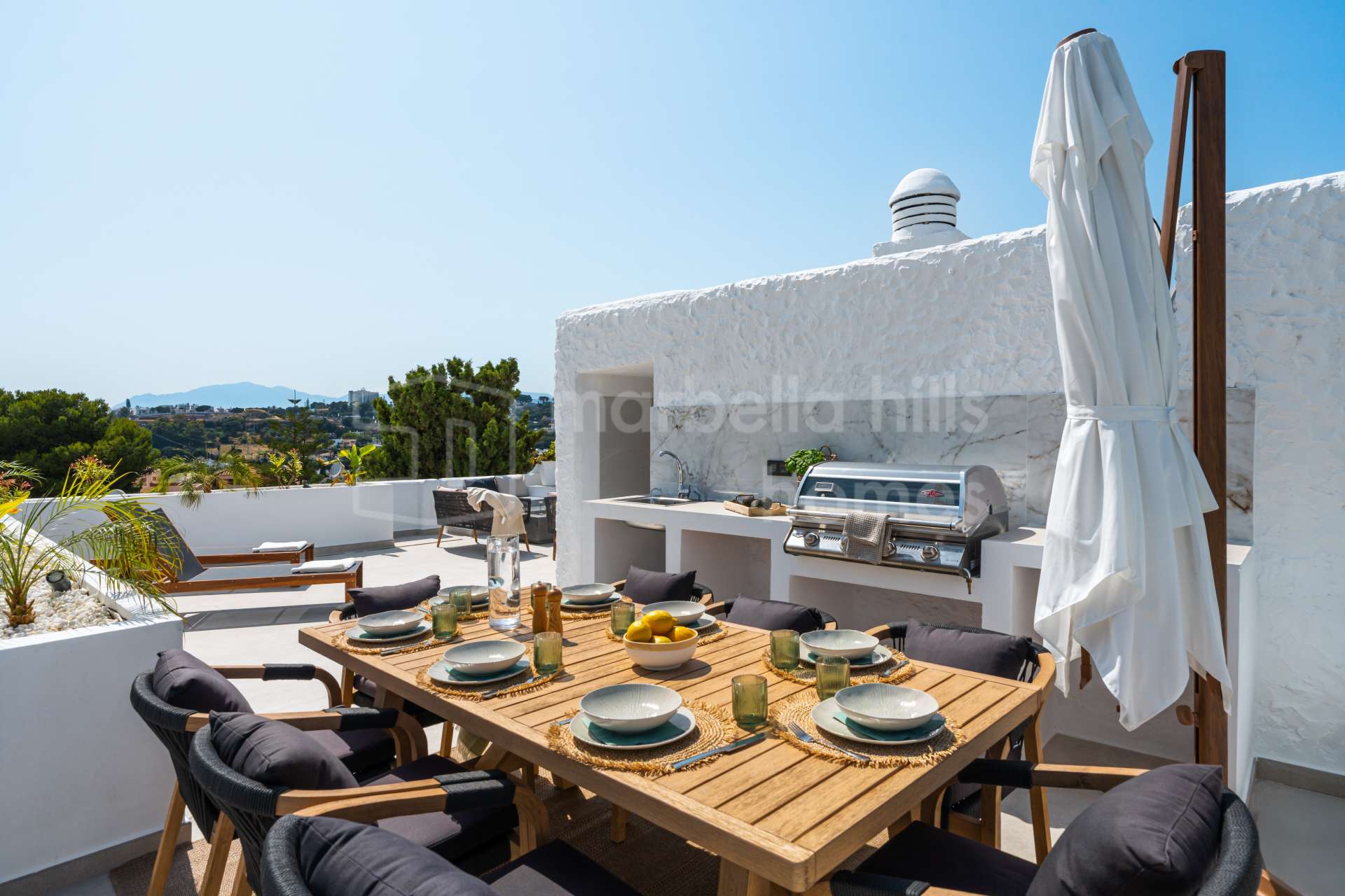 This newly renovated duplex penthouse offers a refined blend of modern design, comfort, and a prime location in Atalaya de Río Verde, one of Nueva Andalucía’s most sought-after residential areas. Set over two spacious levels, the property features 172 m² of built area, three bright bedrooms, and two contemporary bathrooms, making it ideal as a permanent residence, holiday home, or investment property.