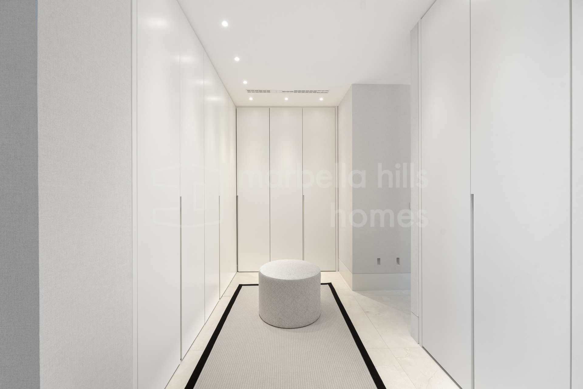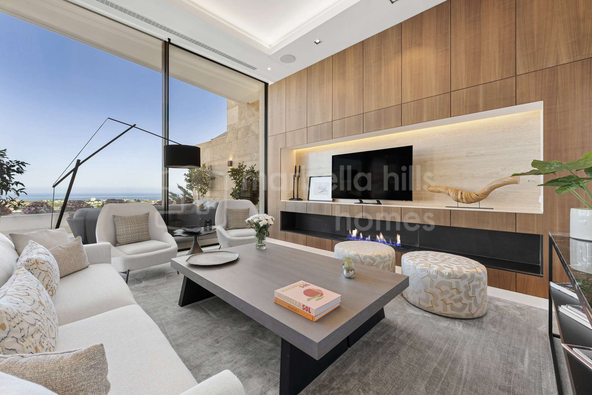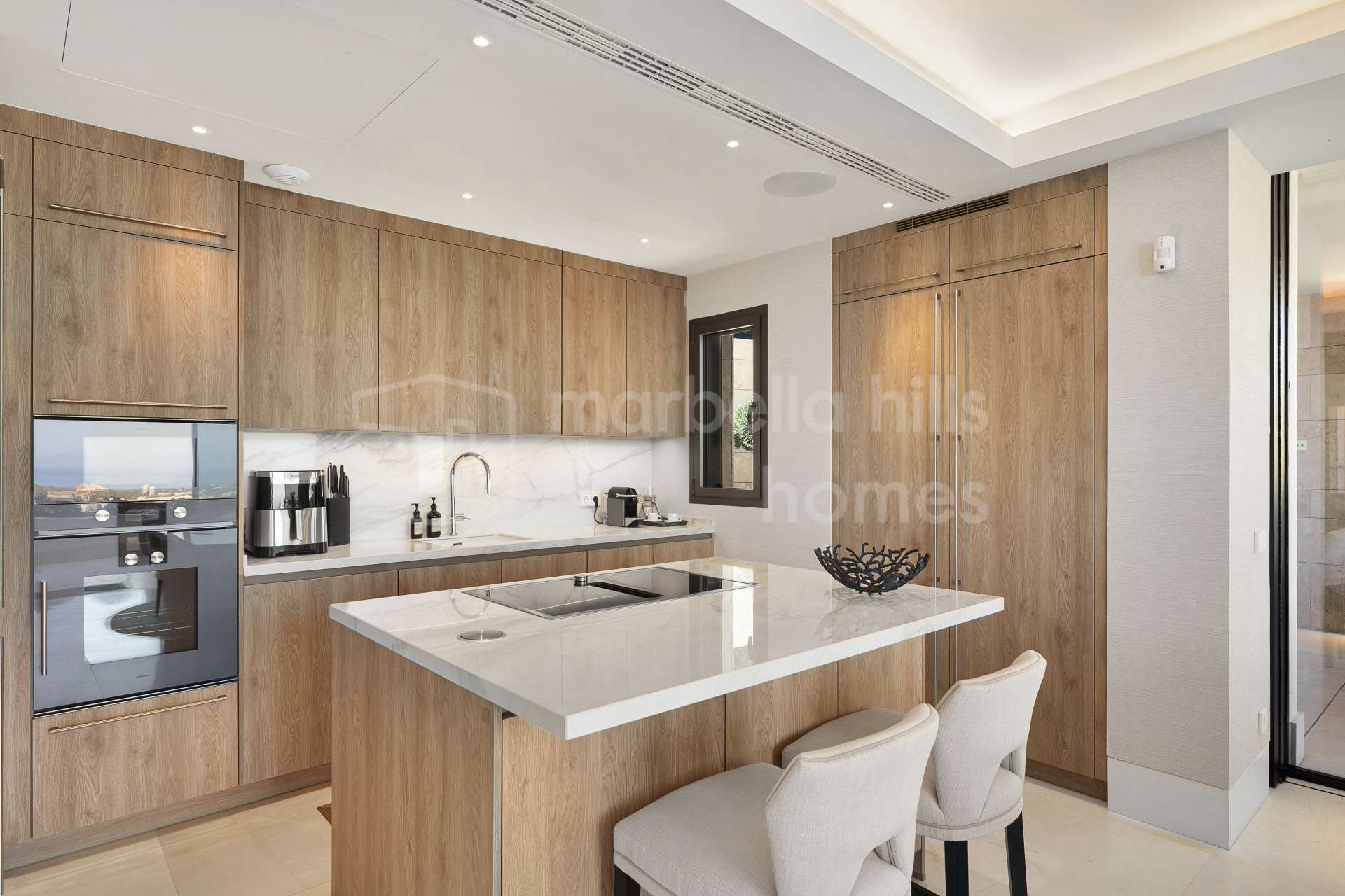 Set within an intimate gated community of just seven residences, privacy and serenity are woven into every corner. Inside, the open-plan layout is anchored by a designer kitchen fitted with Gaggenau and Miele appliances, flowing seamlessly into a bright and spacious living area. Floor-to-ceiling sliding windows vanish to reveal an expansive L-shaped terrace, where al fresco dining, a summer kitchen, and a lounge area invite year-round enjoyment under the Andalusian sun.