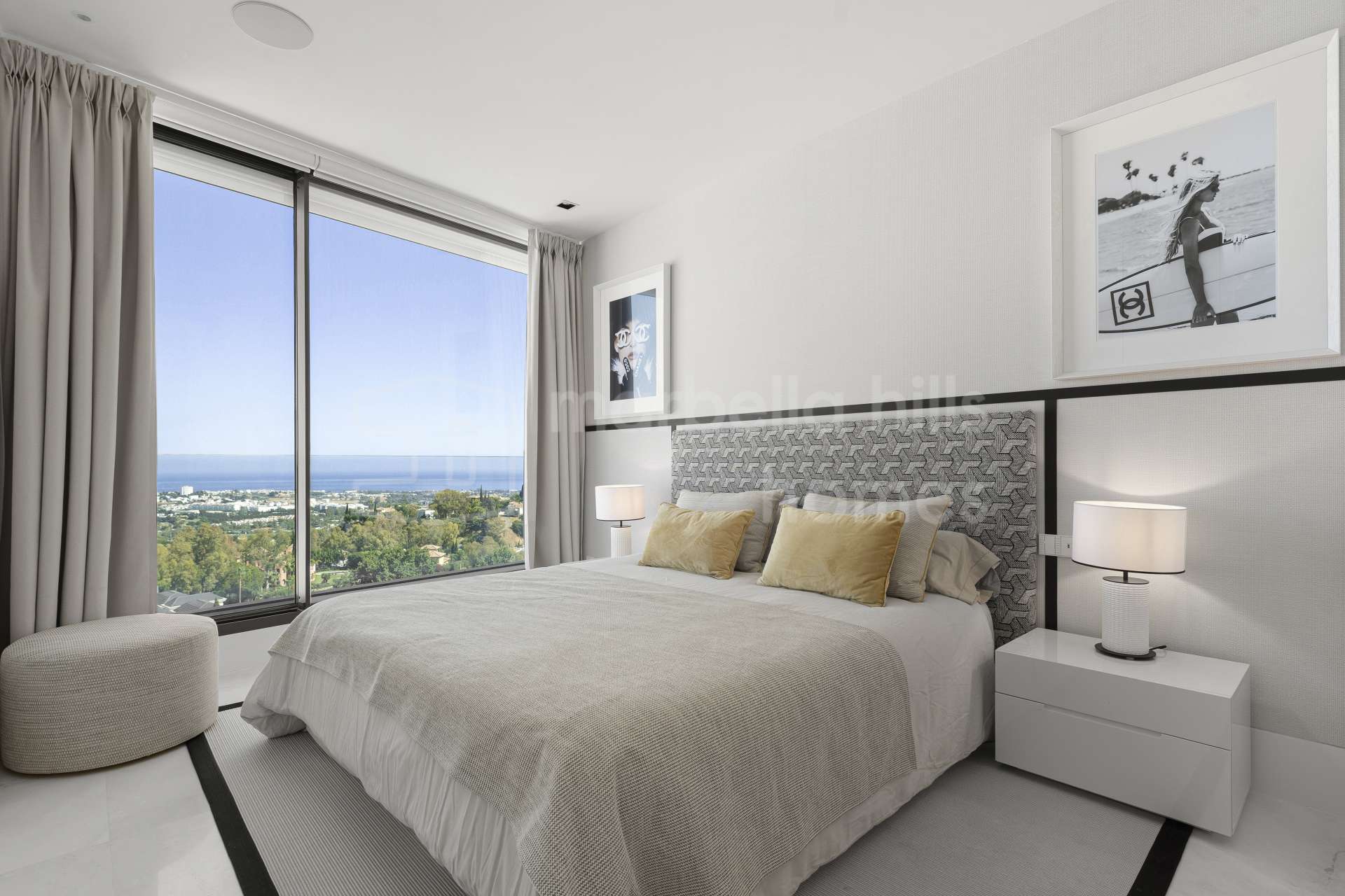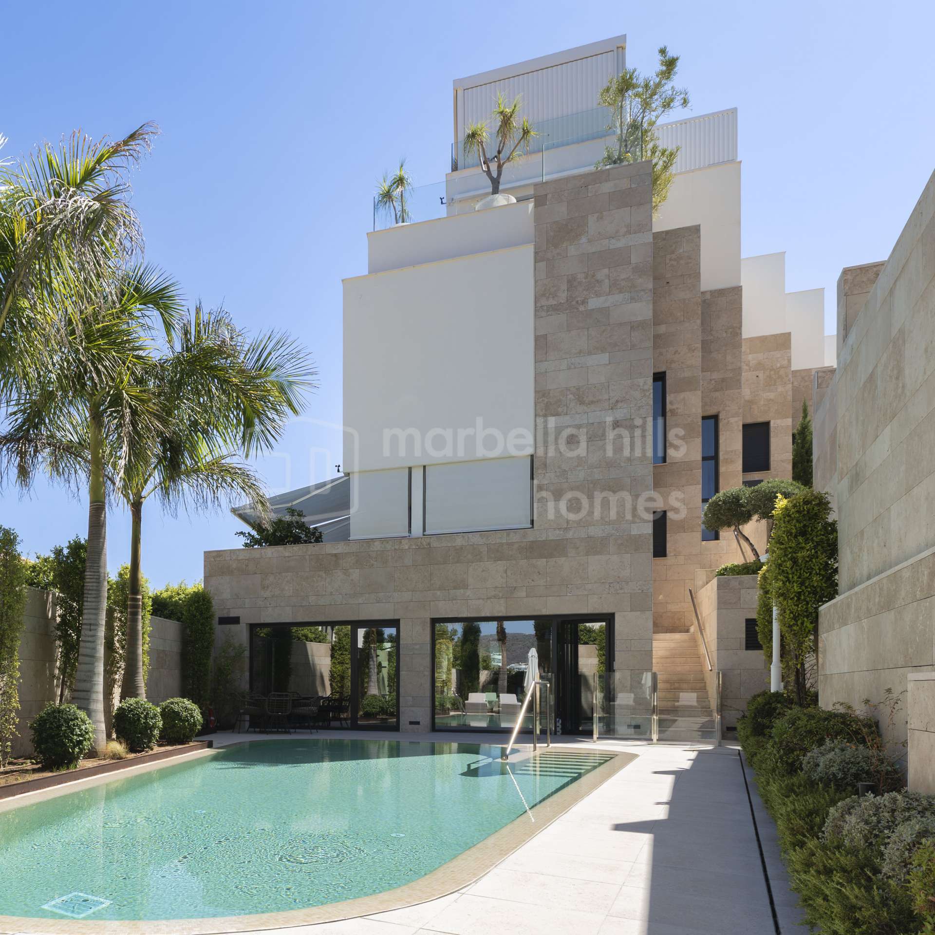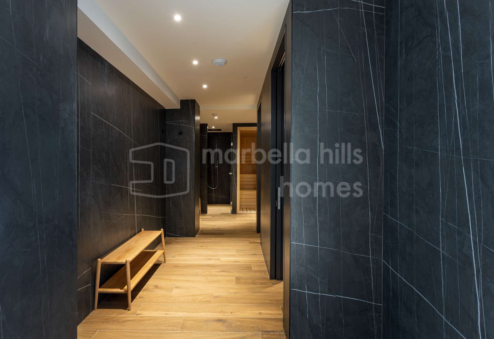 Set within an intimate gated community of just seven residences, privacy and serenity are woven into every corner. Inside, the open-plan layout is anchored by a designer kitchen fitted with Gaggenau and Miele appliances, flowing seamlessly into a bright and spacious living area. Floor-to-ceiling sliding windows vanish to reveal an expansive L-shaped terrace, where al fresco dining, a summer kitchen, and a lounge area invite year-round enjoyment under the Andalusian sun.