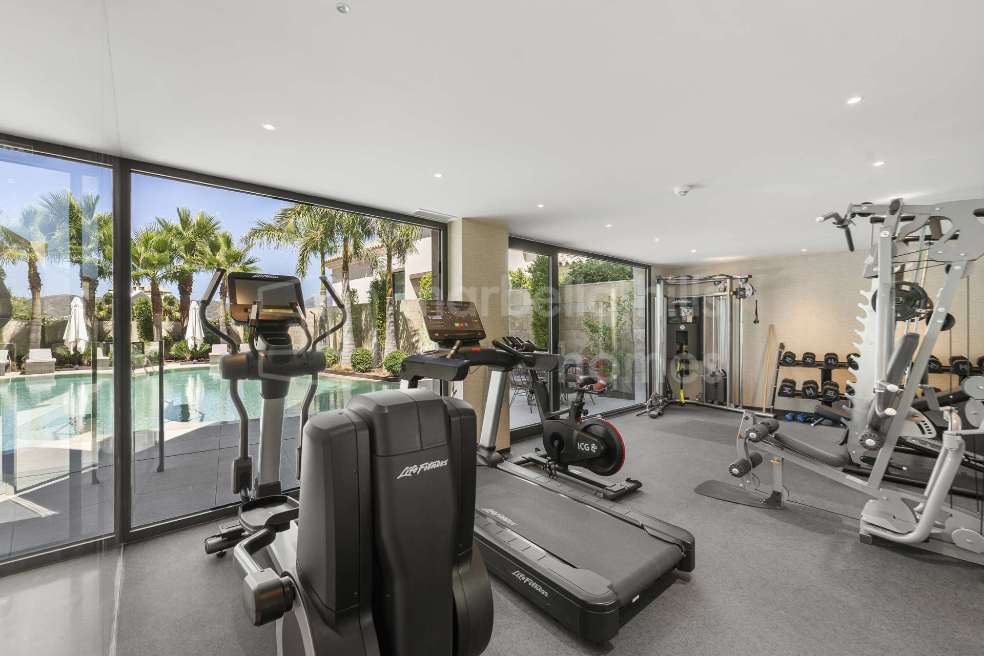 Fully fitted kitchen, Close to shops, Close to schools, Pets allowed, Internet - Fibre optic, Marble floors, Guest room, Storage room, Gym, Double glazing, Dining room, Guest toilet, Private terrace, Kitchen equipped, Living room, Amenities near, Sea view, Smart home system, Dolby Stereo Surround system, Internet - Wi-Fi, Covered terrace, Fitted wardrobes, Gated community, Air conditioning, Lift, Garden view, Panoramic view, Close to golf, Uncovered terrace, Open plan kitchen, Optional furniture, SPA, Excellent condition.