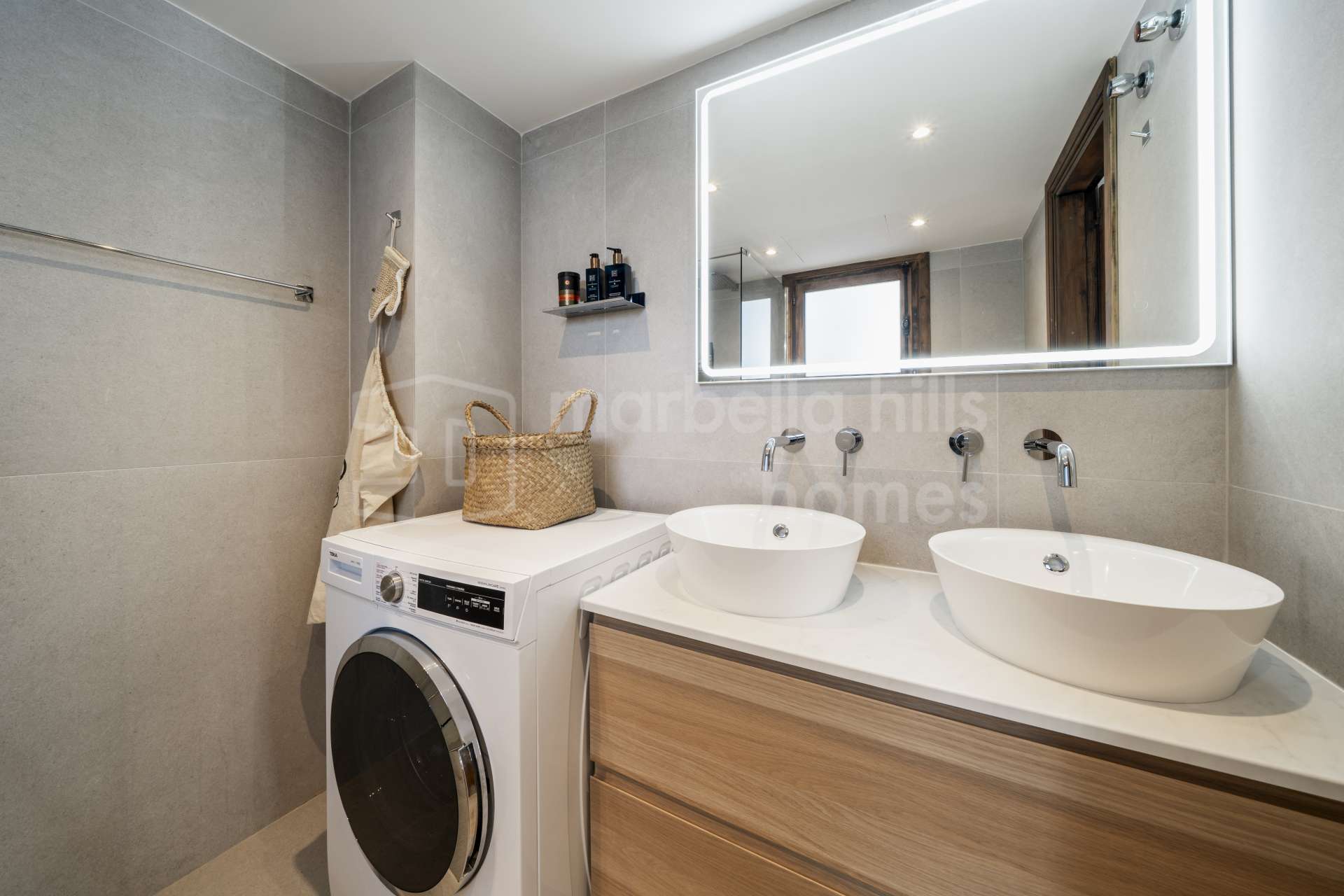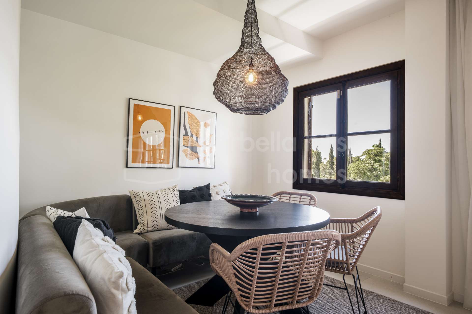 Located in the heart of Marbella’s prestigious Golf Valley, this beautifully renovated duplex apartment combines Andalusian charm with contemporary Nordic design. Set within the sought-after gated community of Los Pinos de Aloha, the property offers both tranquility and convenience, just minutes from Aloha Golf Club, Aloha Pueblo, Puerto Banús, Marbella’s Golden Mile, and the best beaches of the Costa del Sol.
