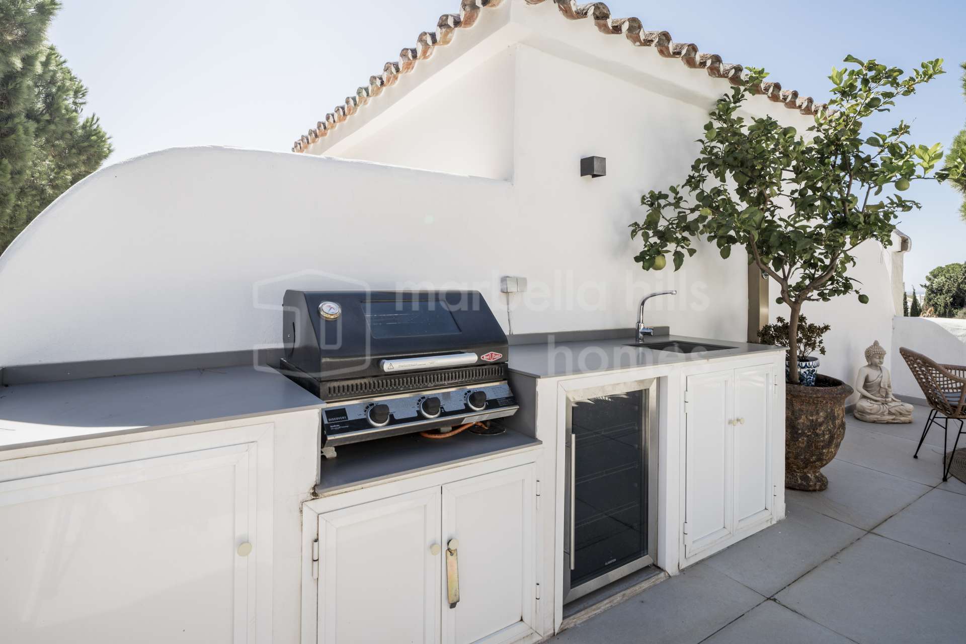 Designed for the Mediterranean lifestyle, the apartment’s rooftop terrace offers panoramic views of the sea and mountains. Complete with a private jacuzzi/plunge pool, chill-out lounge, and a fully equipped outdoor kitchen, it is perfect for entertaining or enjoying the Marbella sun in privacy.