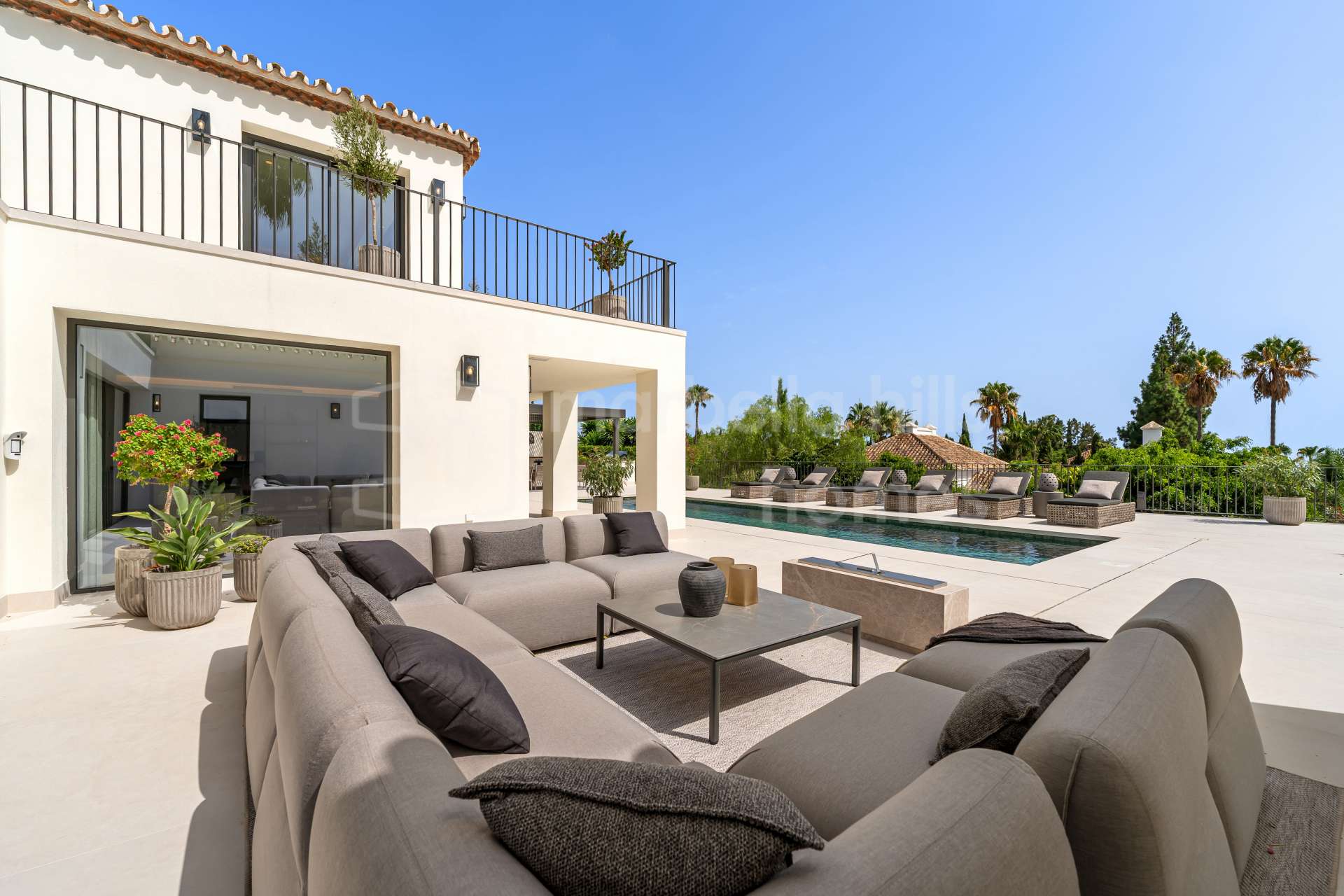 This fully renovated Andalusian-style villa is set on a 2,000 m² south-facing plot at the foot of La Concha, in one of the most prestigious residential areas of Marbella’s Golden Mile. Completely modernised in 2025, the property combines timeless architecture with contemporary luxury, offering open views of the Mediterranean Sea and seamless indoor-outdoor living.
