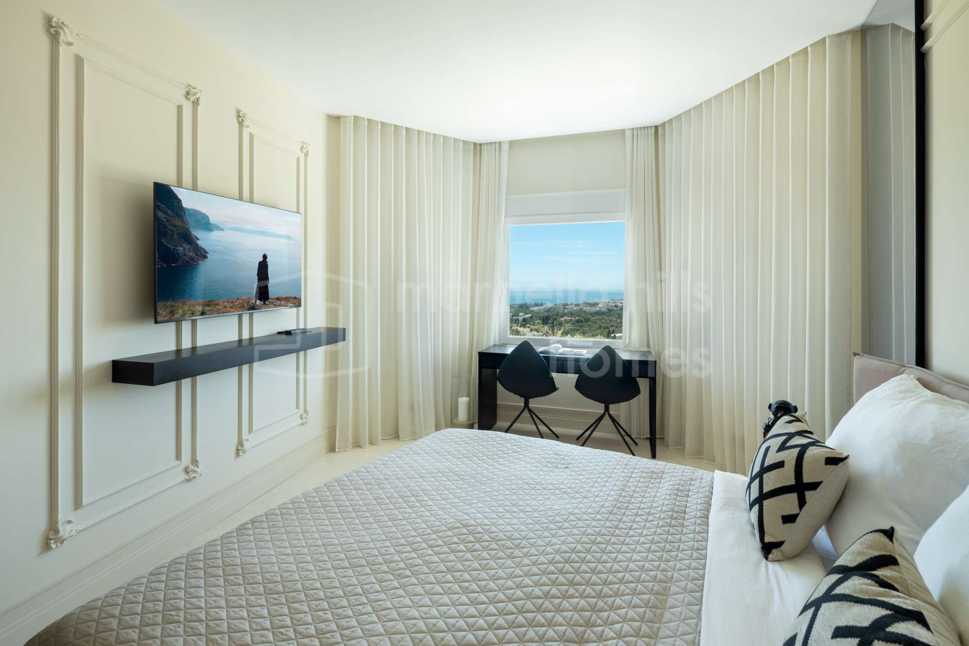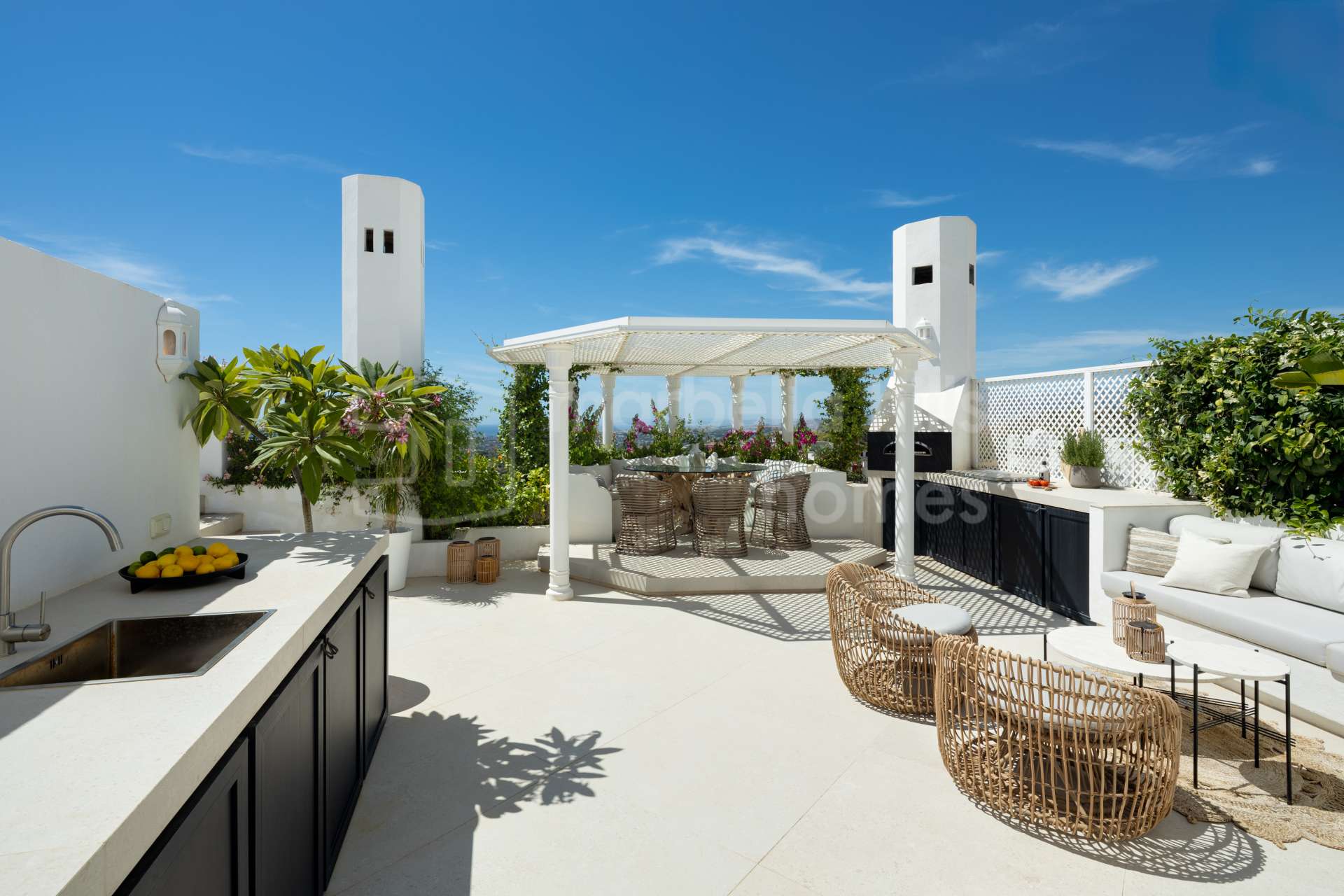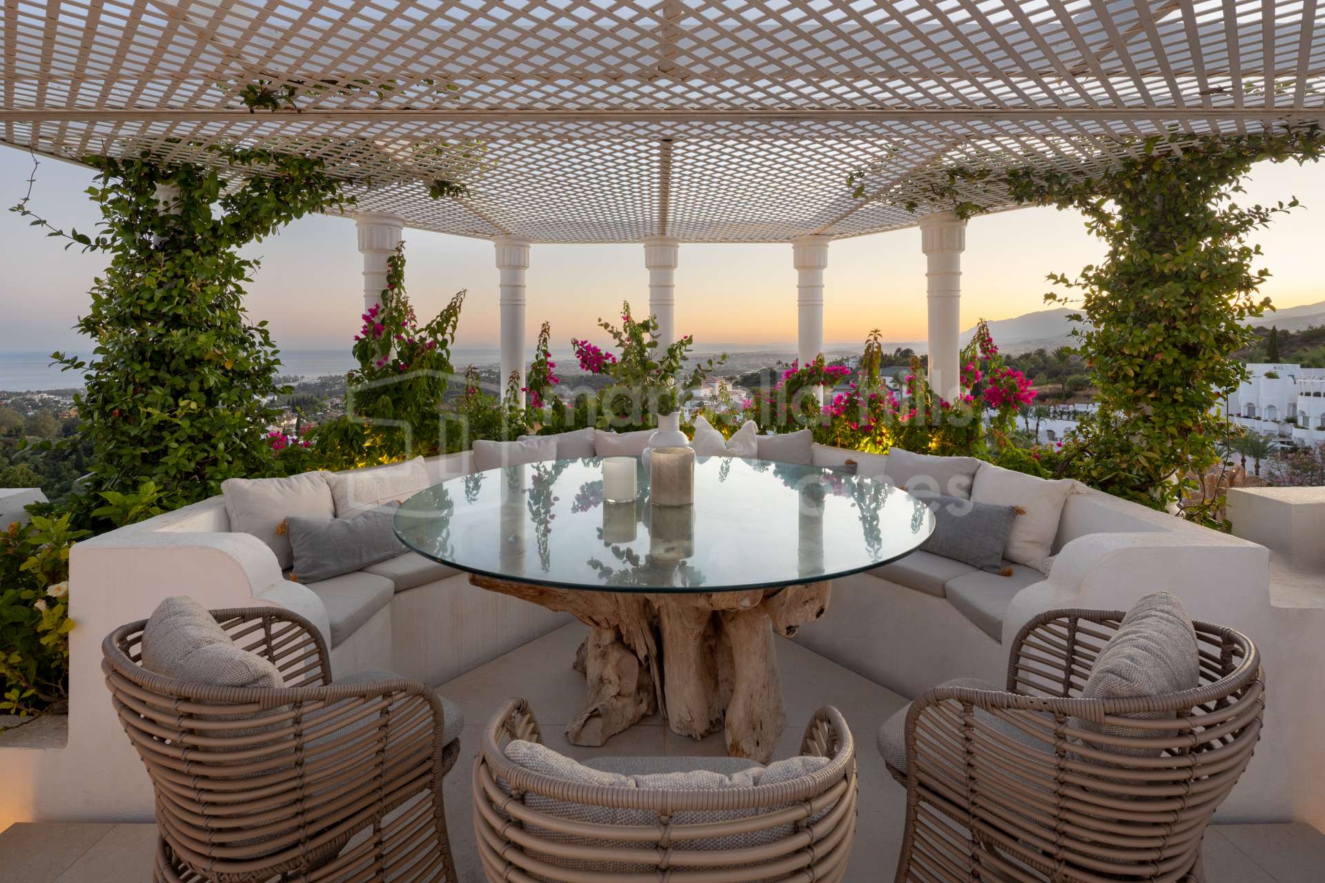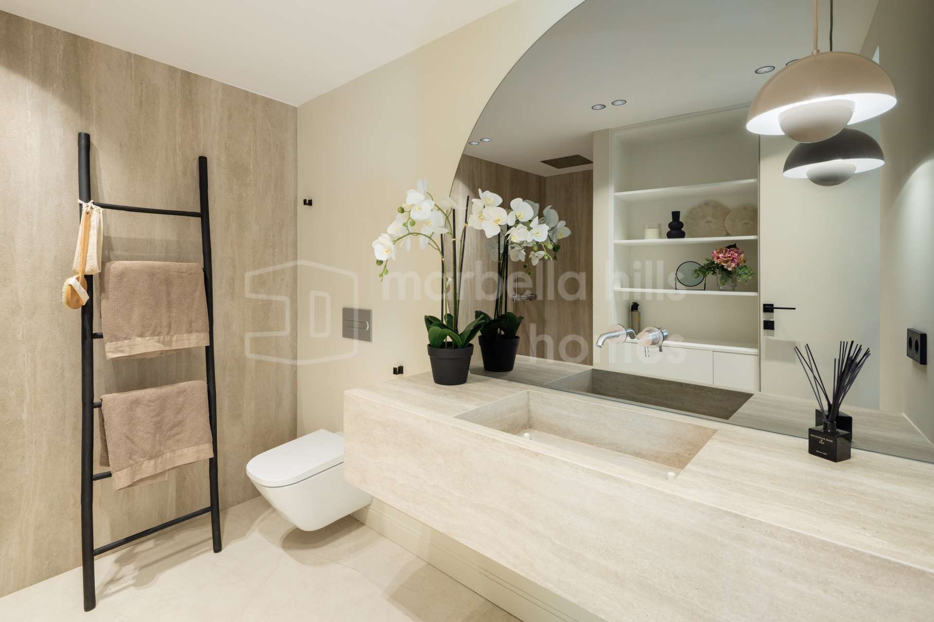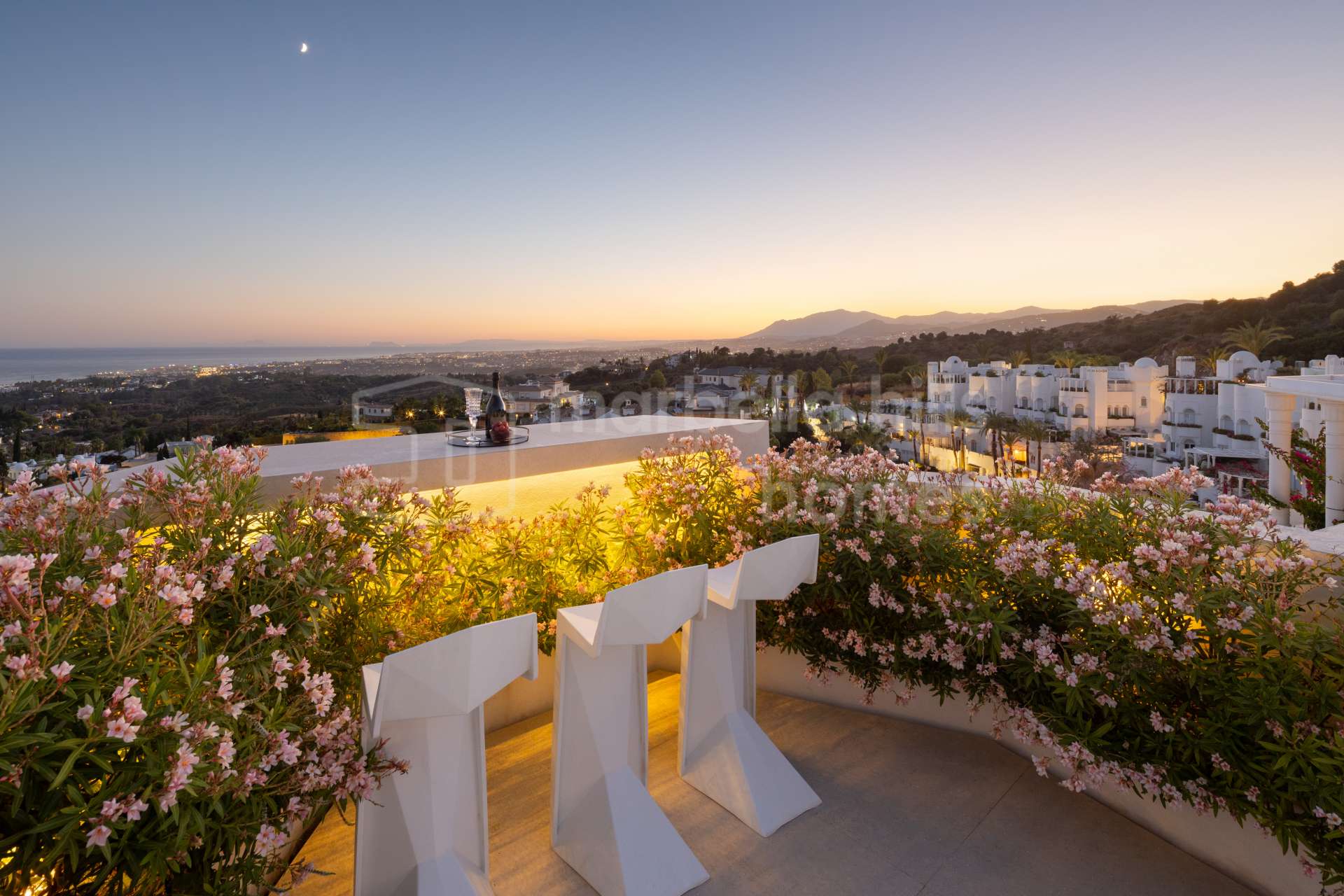 This luxury renovated penthouse for sale on the Marbella Golden Mile offers a rare opportunity to own a sophisticated Mediterranean residence in one of the most prestigious hillside locations above the coast. Positioned within the exclusive Marbella Hill Club area, the property enjoys panoramic sea views, privacy and a peaceful natural setting while remaining close to the Golden Mile’s finest amenities.